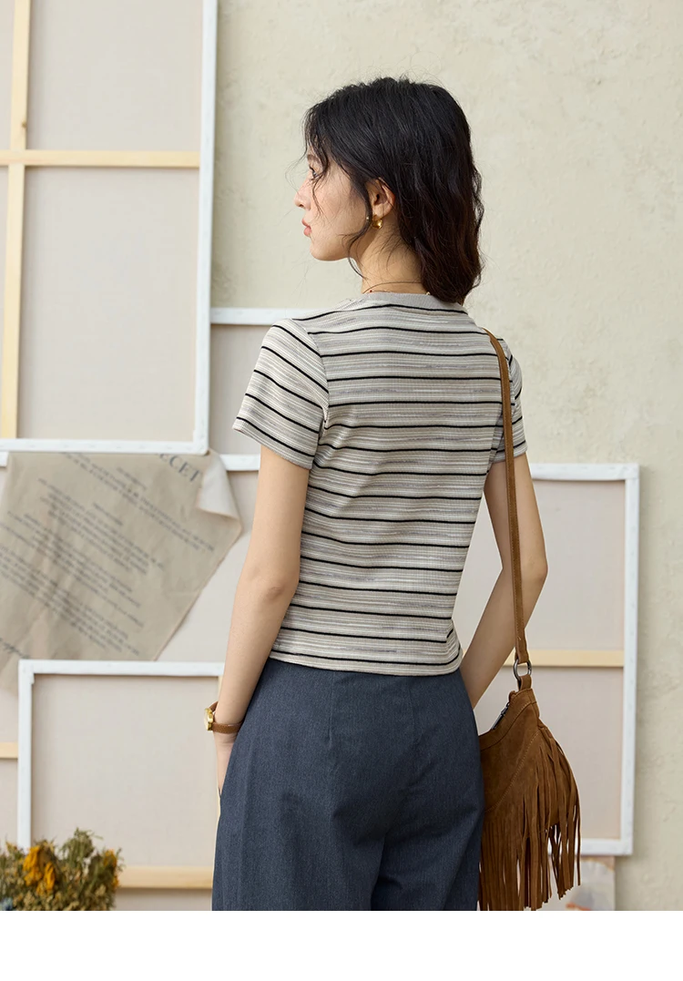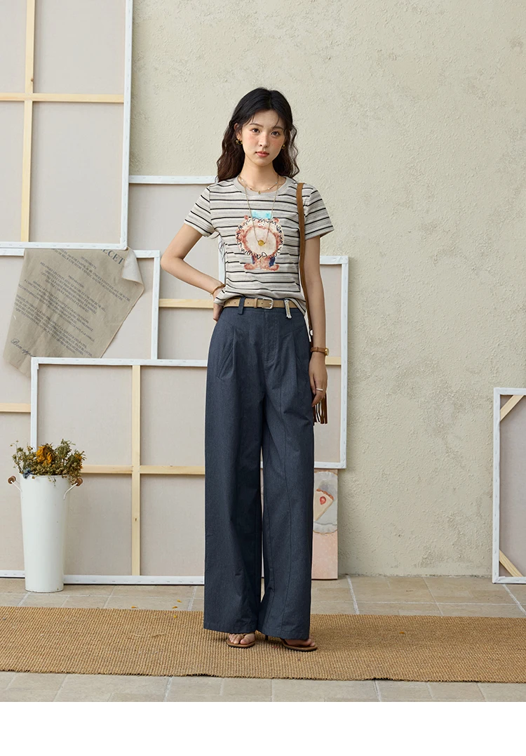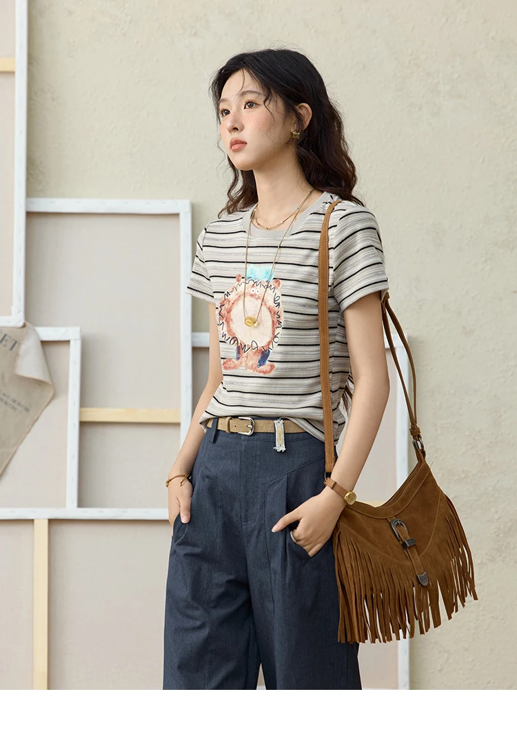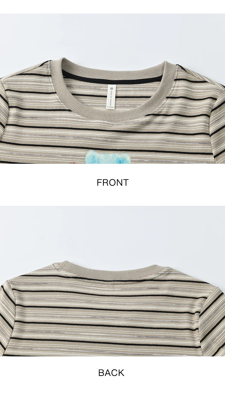 MISHOW Striped Cartoon Pufferfish Printed T-shirt for Women Summer 2025 Slim Shoulders Cotton Tees Short Sleeved Top MXE32T0538