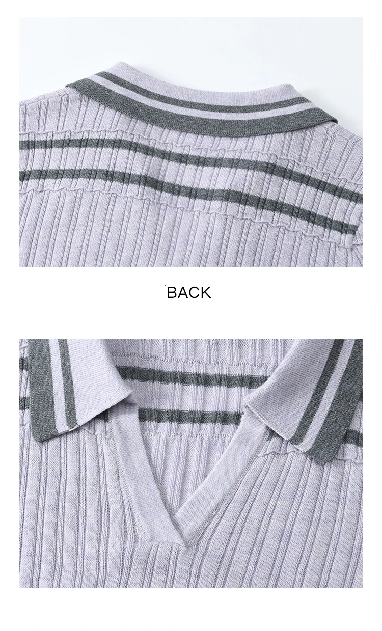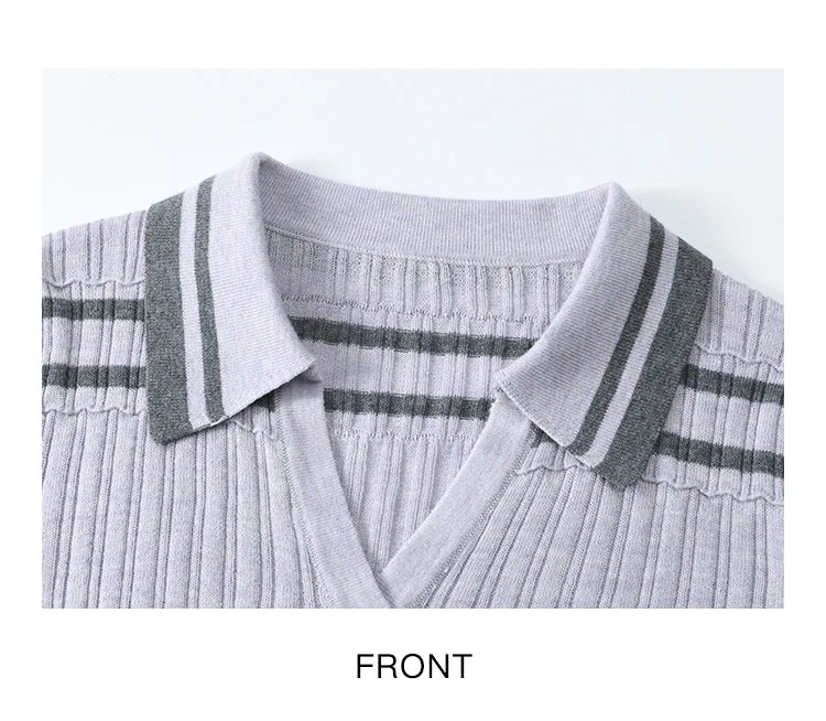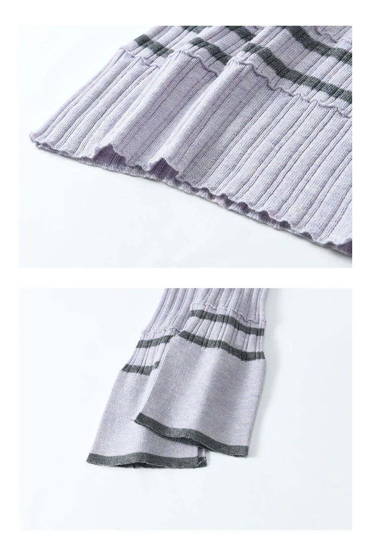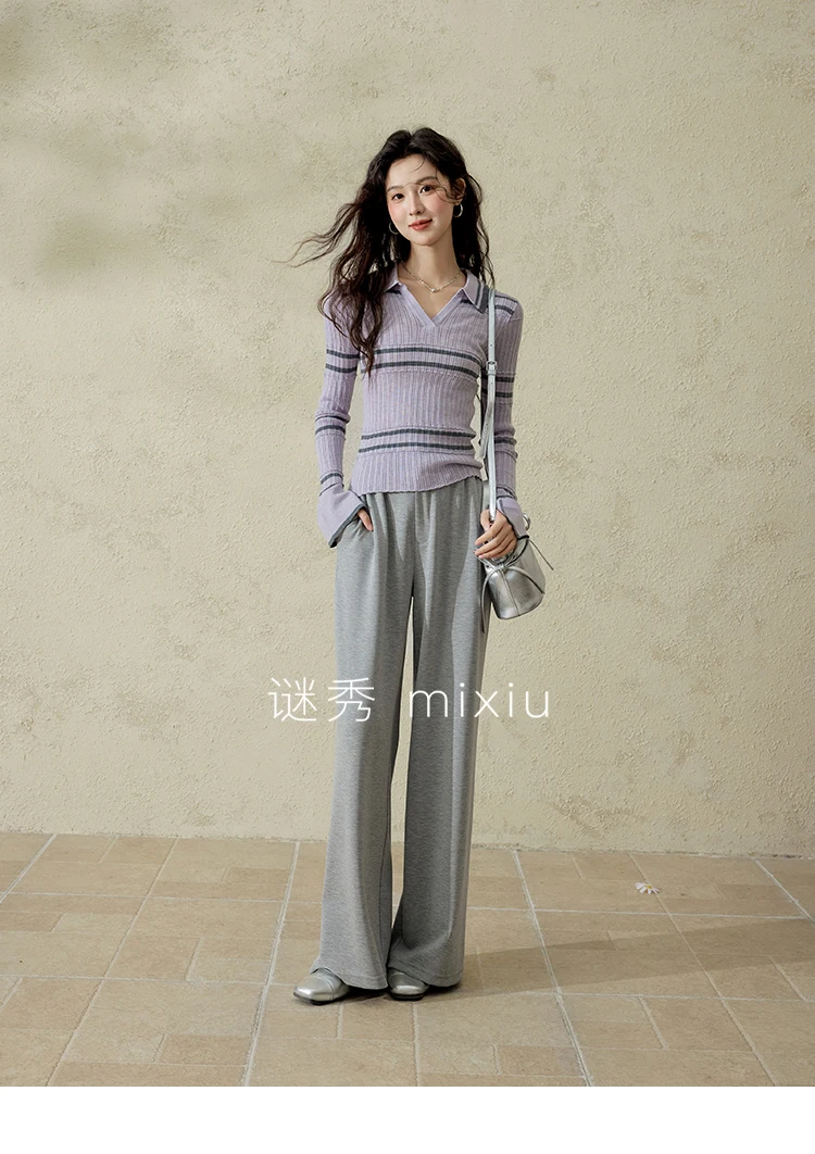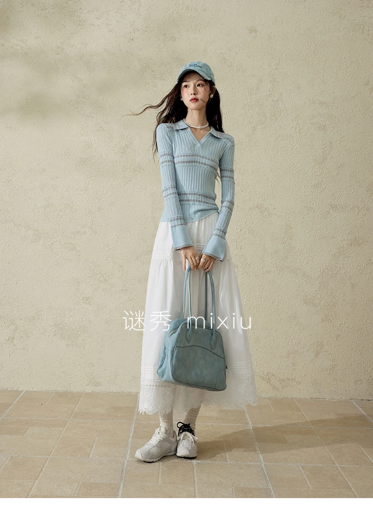 MISHOW Striped Knitted Tops for Women Spring 2025 Contrast Color Striped Slim V-neck Trumpet Sleeves Commuter Outfit MXE13Z1141