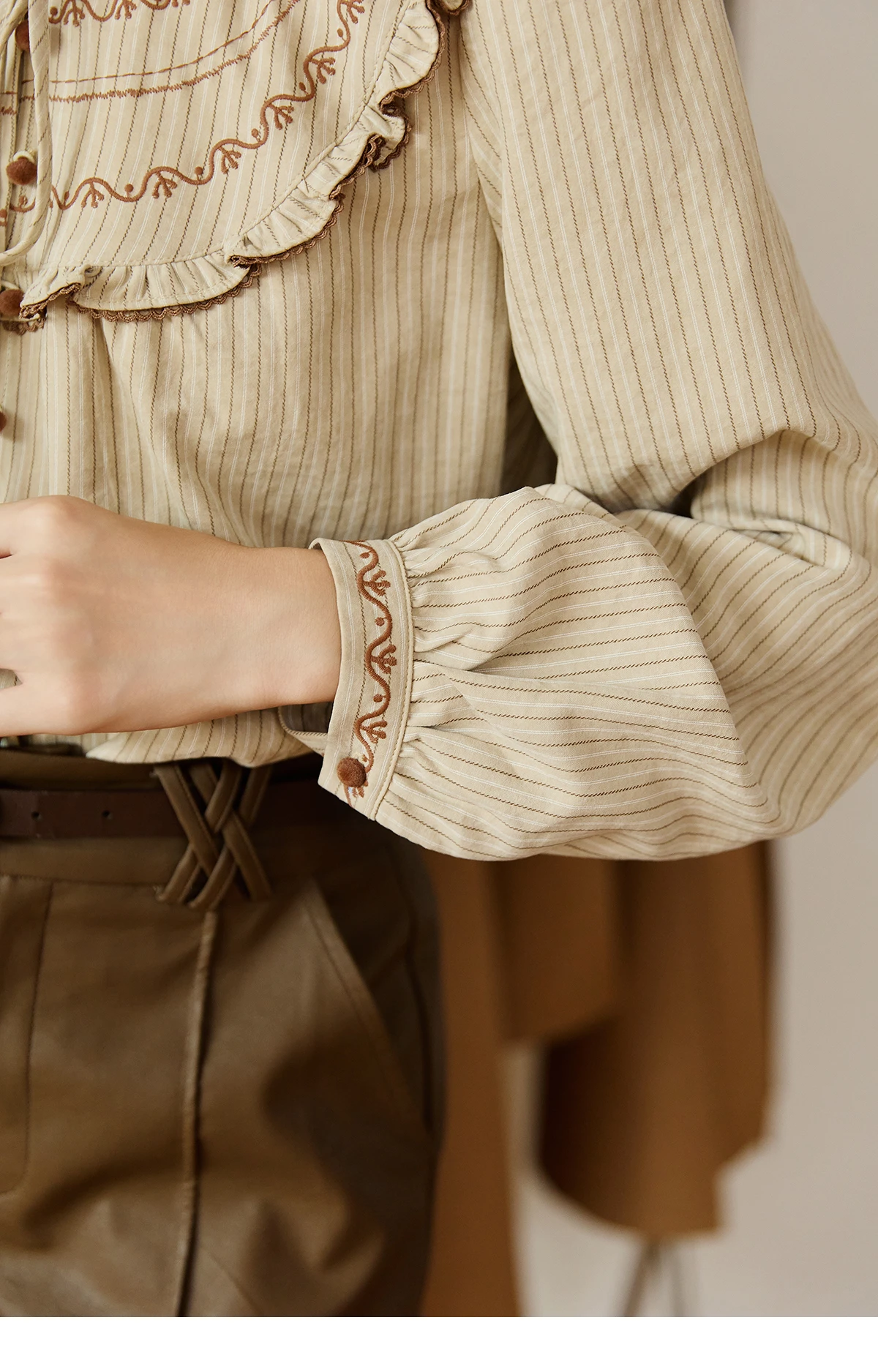 MISHOW Striped Shirt for Woman 2025 New Retro Wood Ear Edge Round Neck Embroidery Top Korean Popular Clothes Autumn MXE46X2492