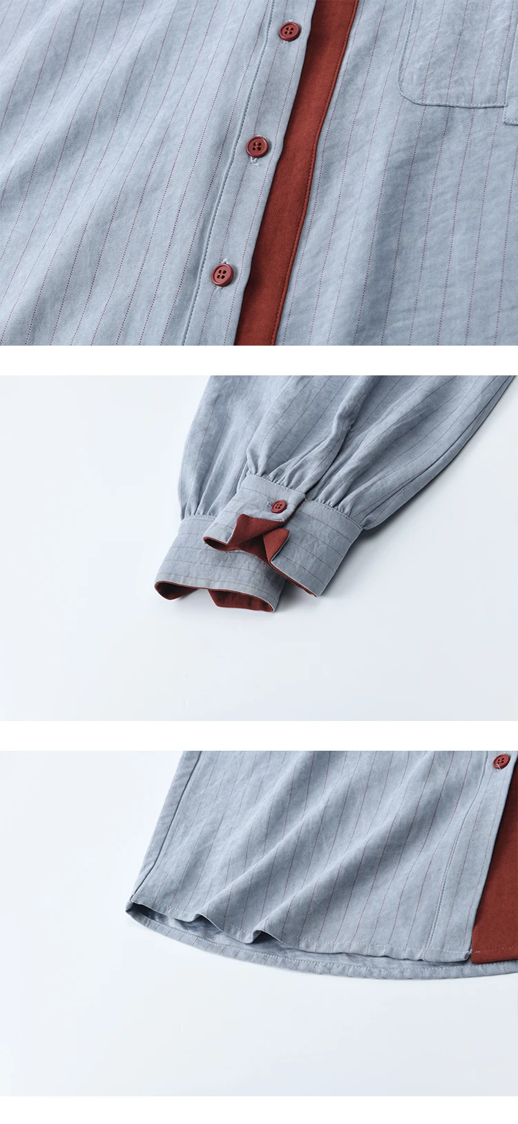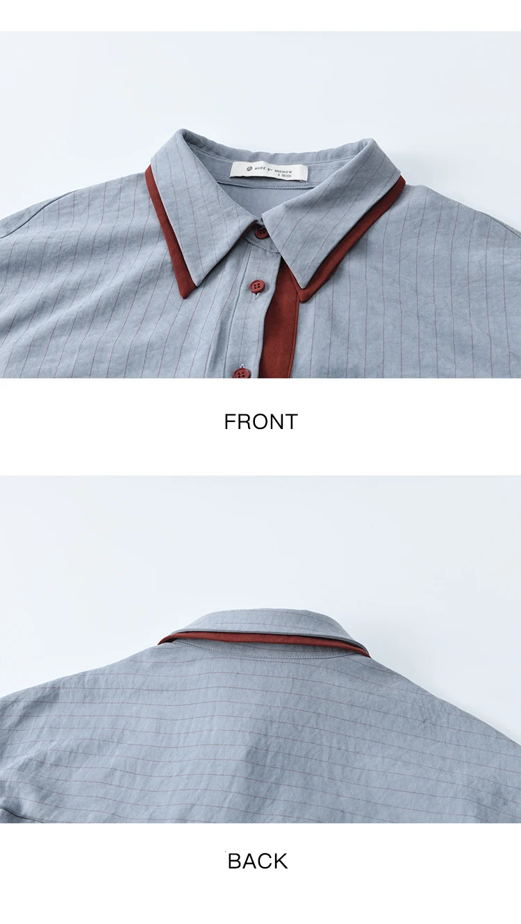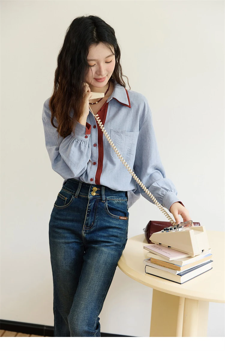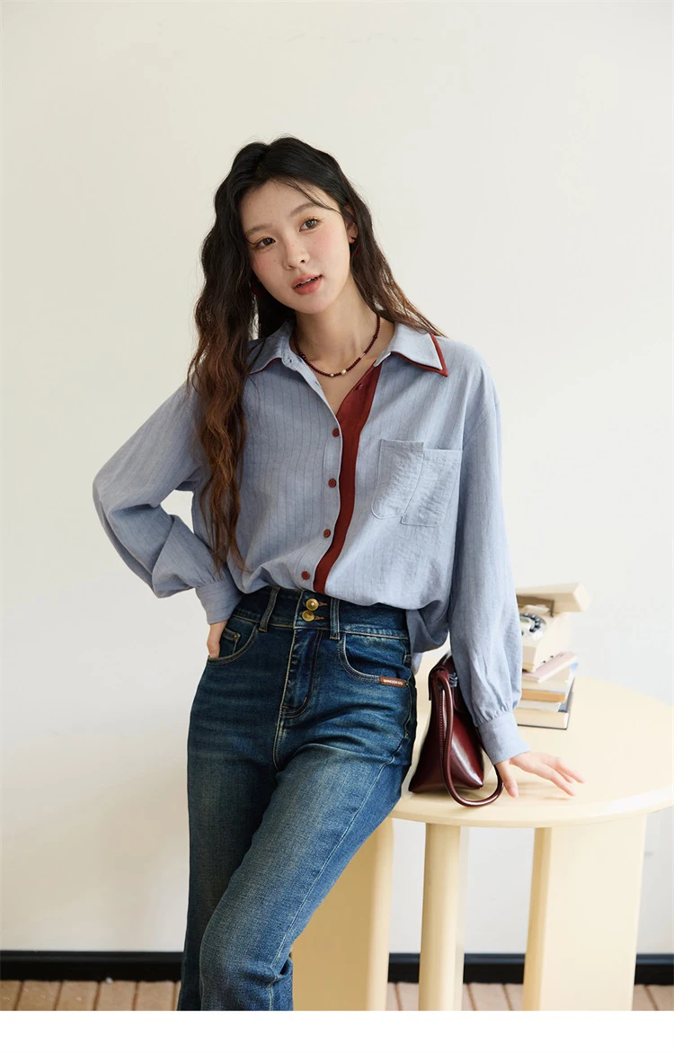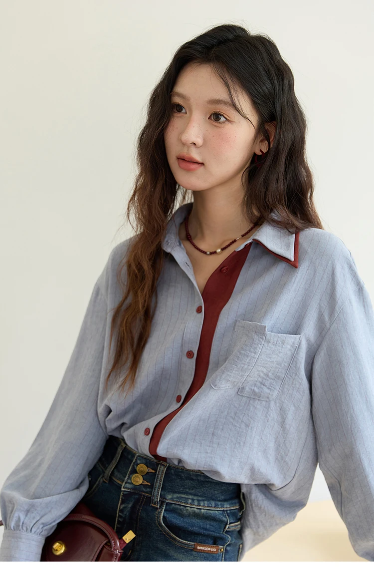 MISHOW Striped Shirt for Women Autumn 2025 Blue Red Splicing Contrasting Color Shirts Laple Loose Retro Commute Top MXE46C2405