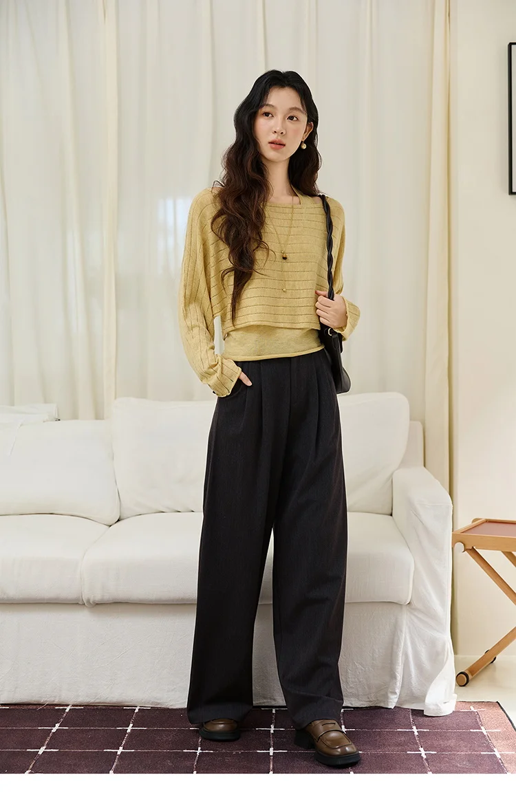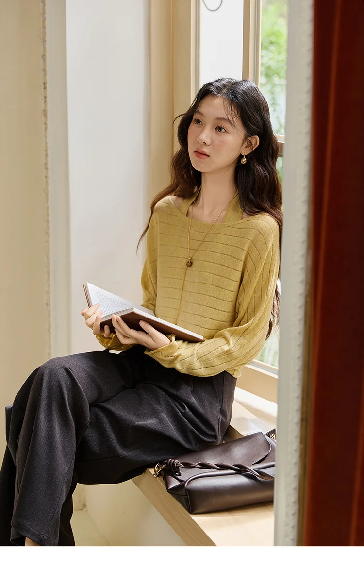MISHOW Striped Short Hanging Neck Top Two-piece Set 2025 Autumn Wool Blend Knitted Sweater Casual Fashion Top Sets MXE46T1399