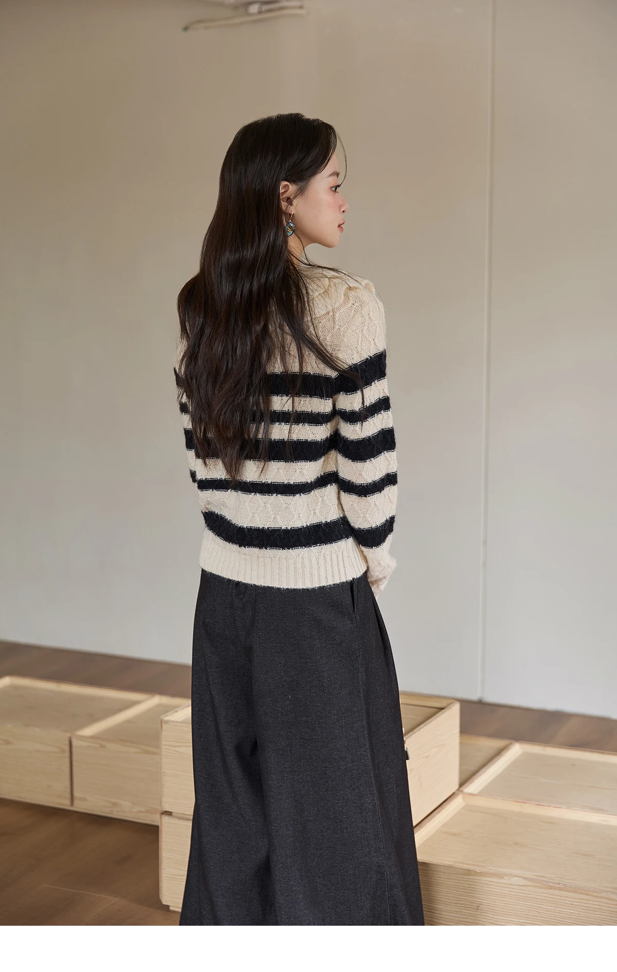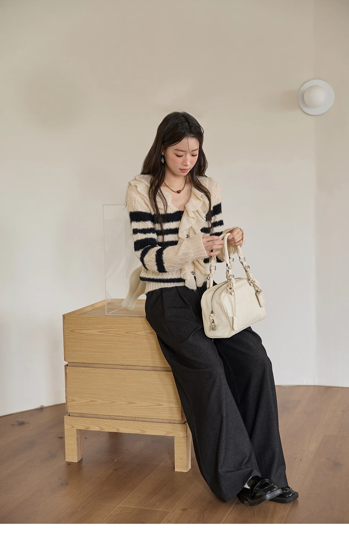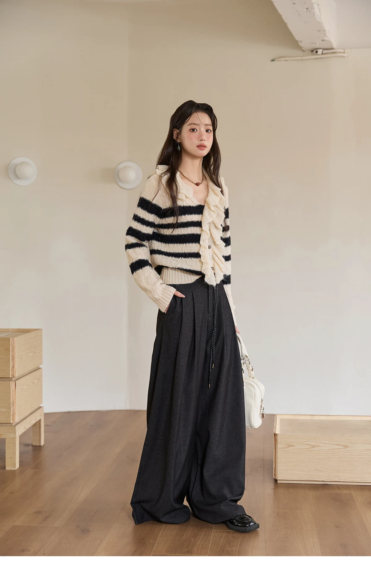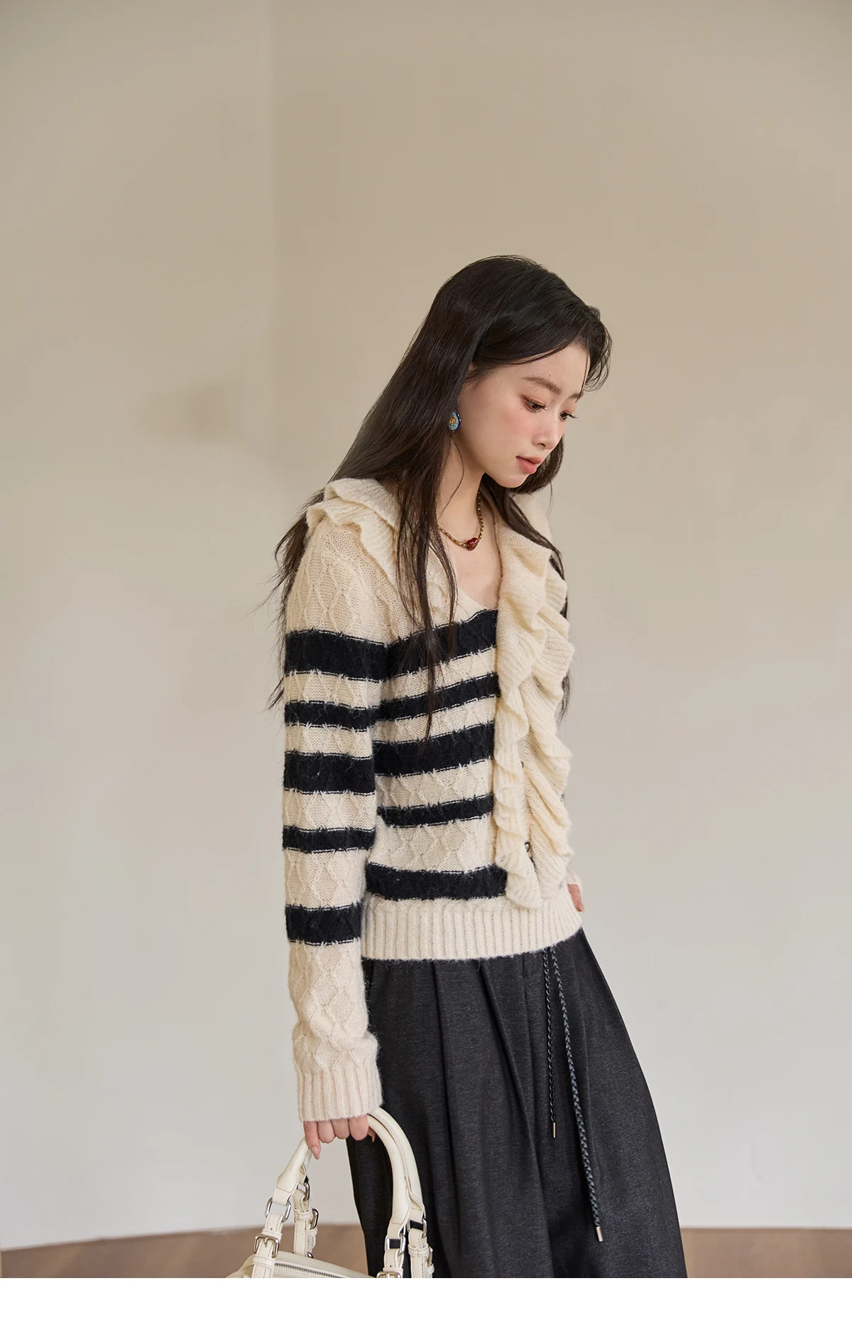 MISHOW Striped Sweater for Women 2025 Autumn New Asymmetrical Ruffled Diamond Shape Knitted Retro Women's Cardigan MXE51Z2633