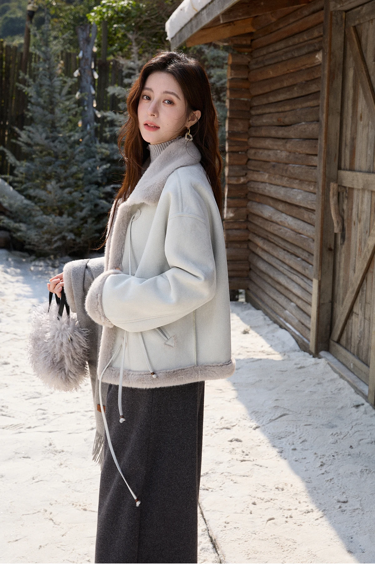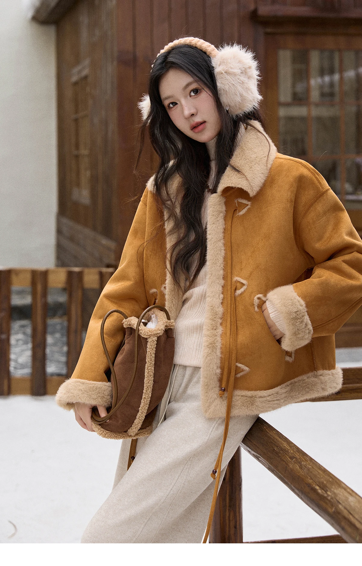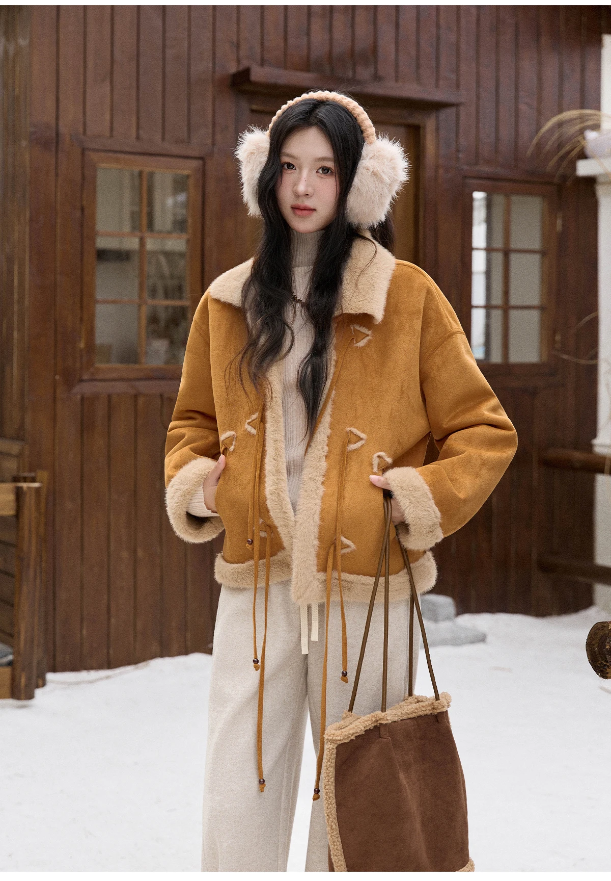 MISHOW Suede Imitation Mink Fur Coat Women Winter 2025 Retro Thick Plush Lace Up Coat Warm Lapel Jackets Office Lady MXE90W0921