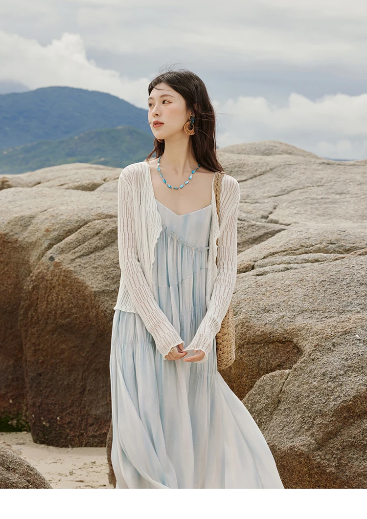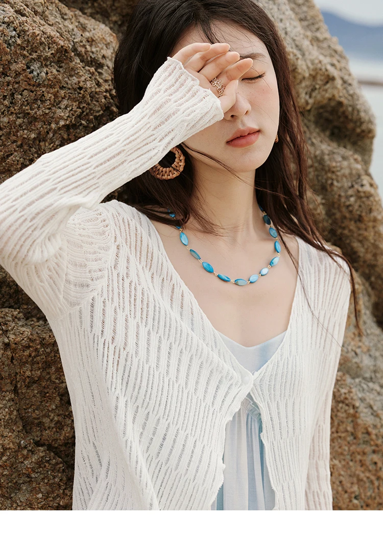 MISHOW Summer Casual Cardigan for Women 2025 New V-neck Long Sleeve Slim Knitted Cardigans Female Fashion White Tops MXE16Z1193