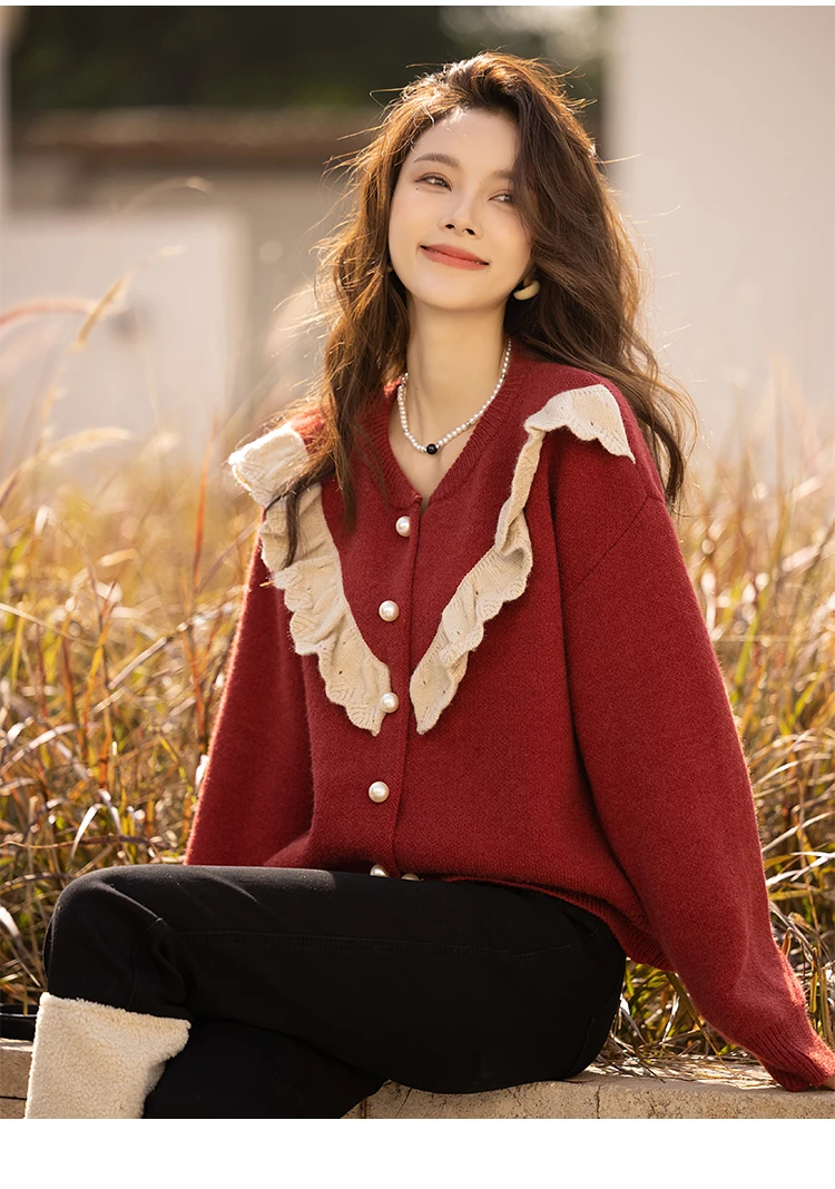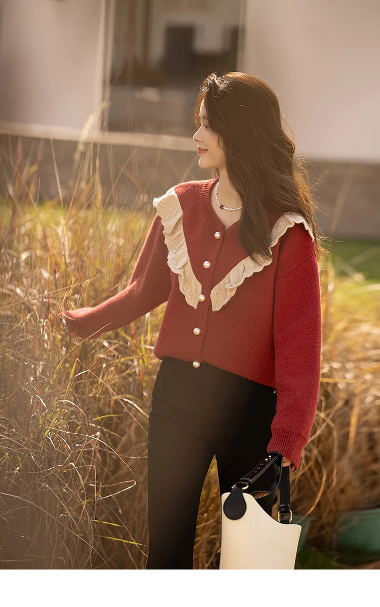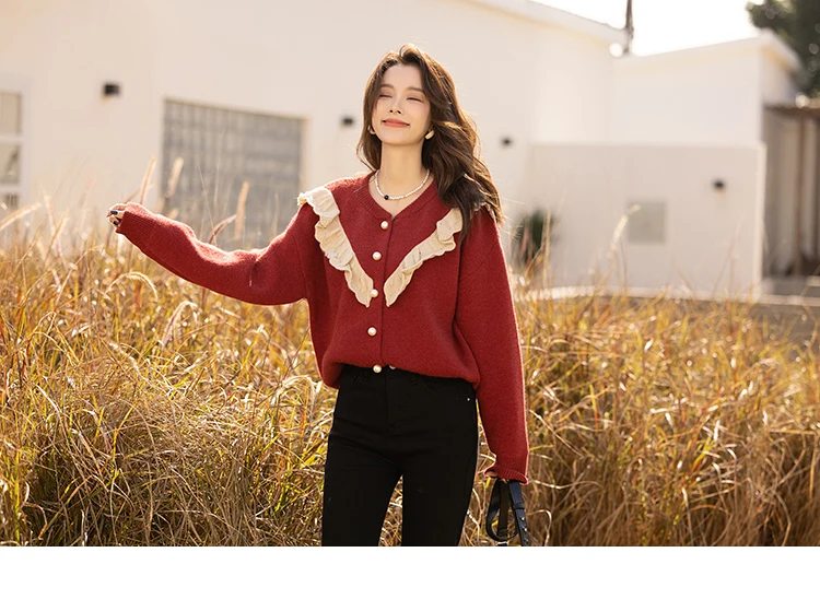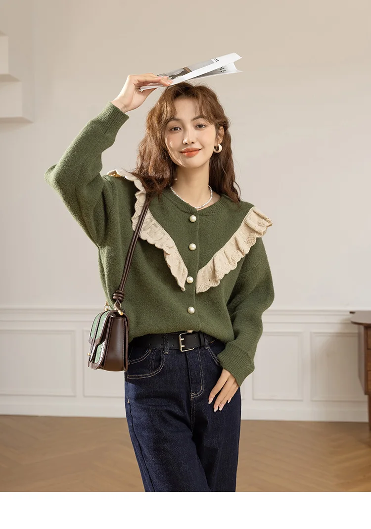 MISHOW Sweater Cardigan for Women Korean Fashion Ruffle Knitwears Autumn Winter Single Breasted Knitted Tops Jumpers MXB46Z1111