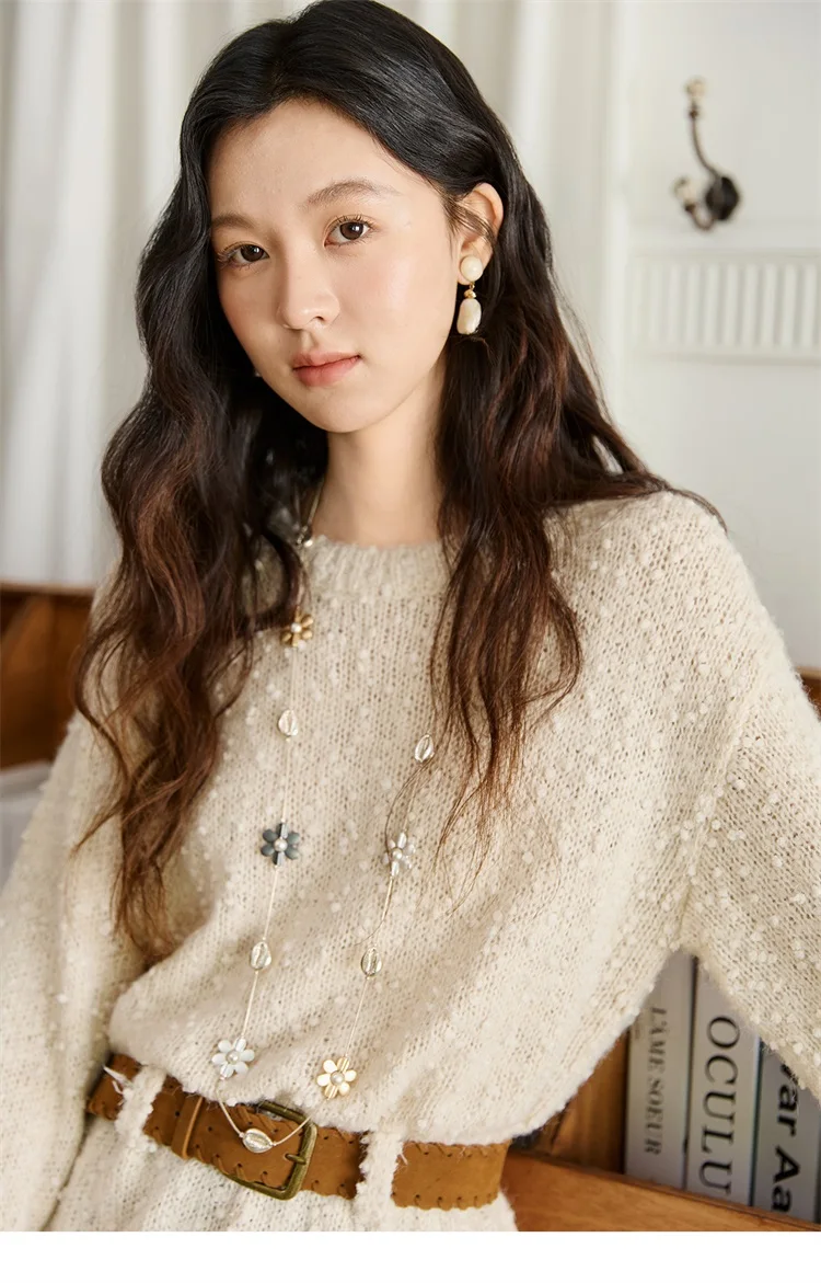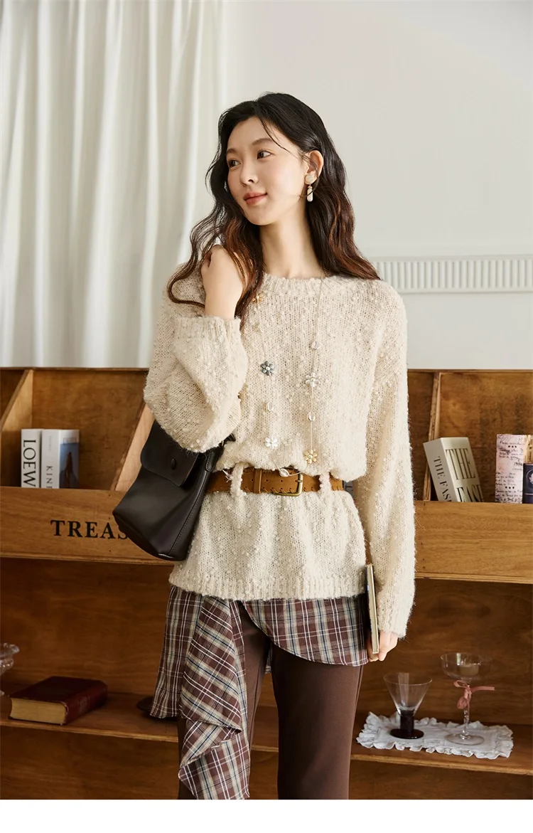 MISHOW Sweater Woman Wool 2025 Autumn New Belt Waist Design Drop Shoulder Sleeves Knit Top Commute Pullover Women MXE46Z2582