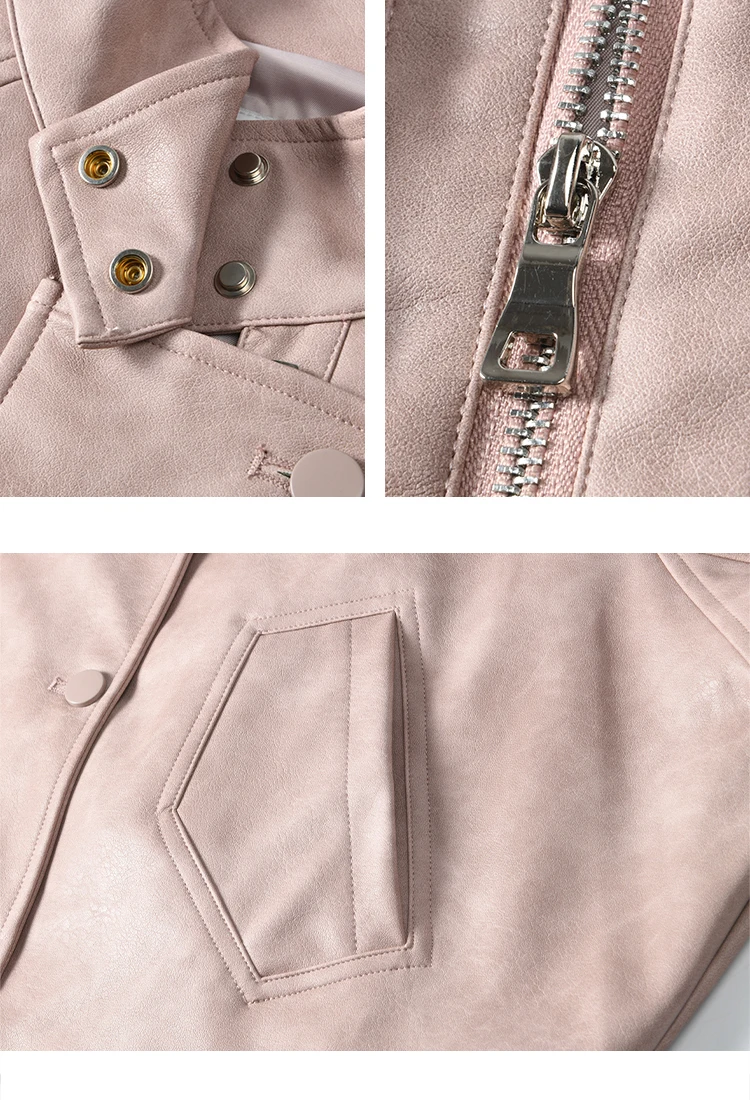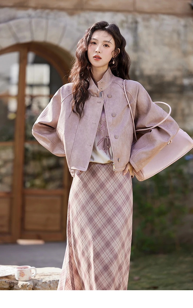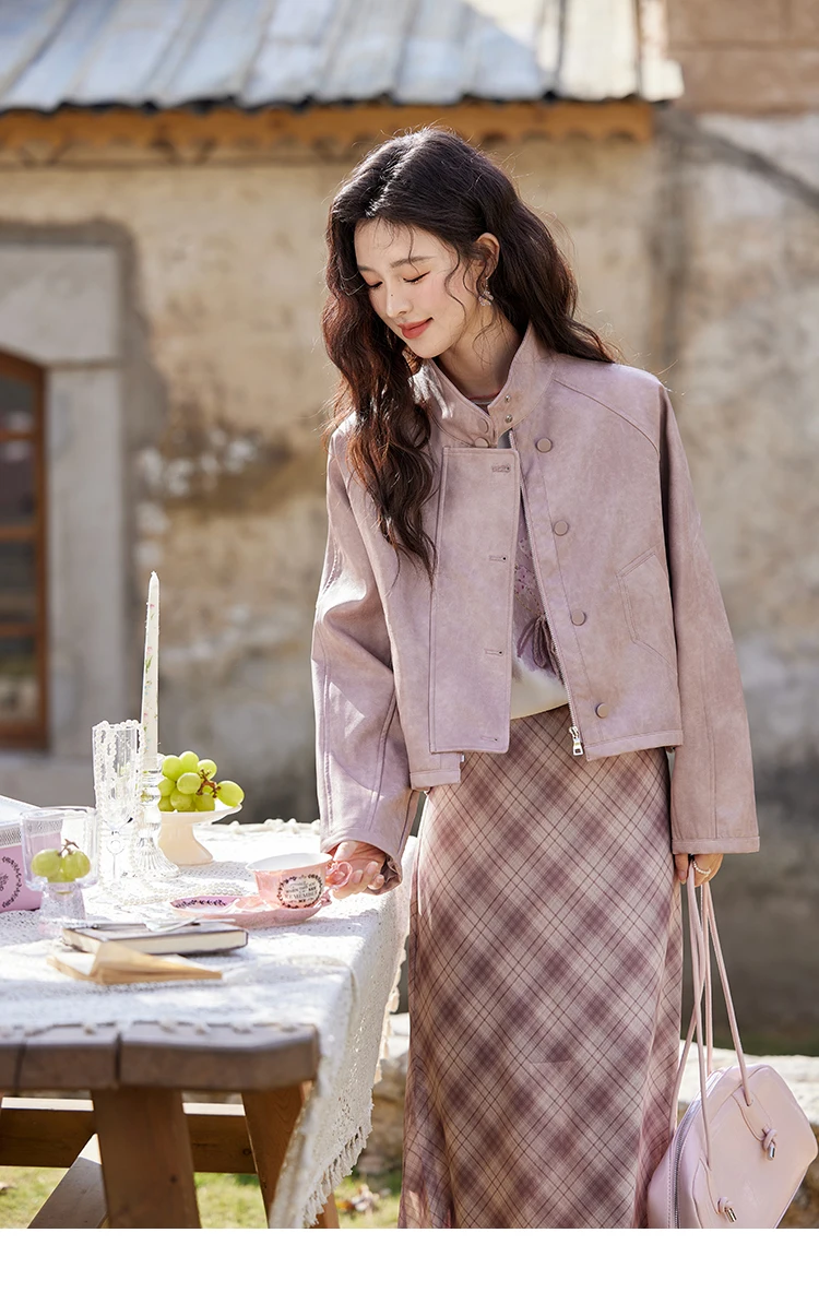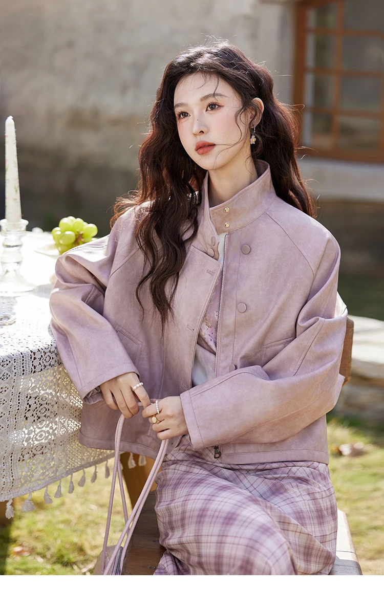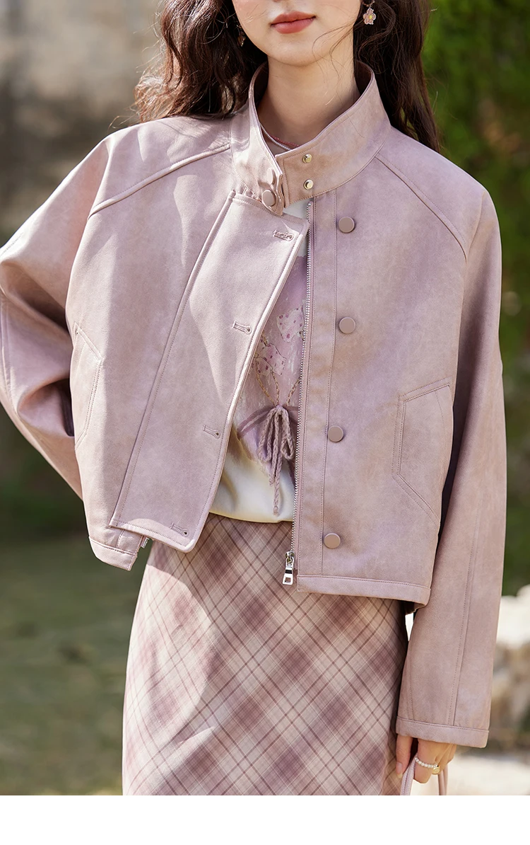 MISHOW Sweet Cool Blended Pink Purple Leather Coat Spring 2025 Stand Collar Motorcycle Style Jackets PU Leather Coats MXE13W0707