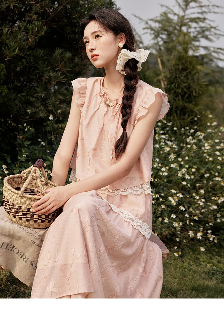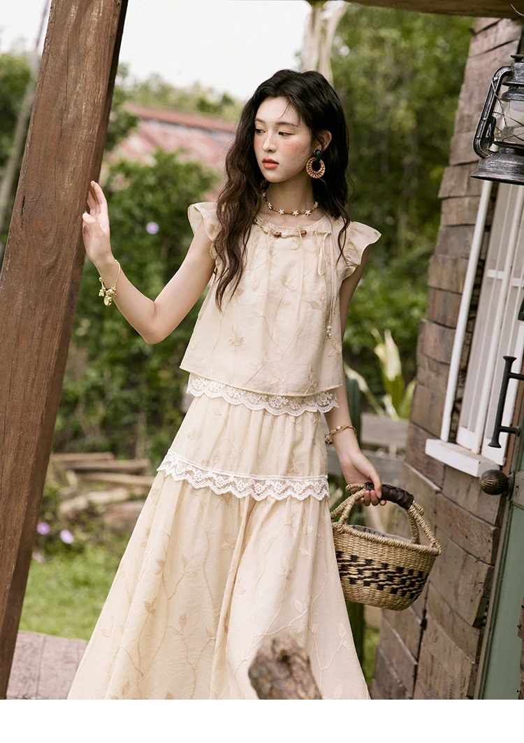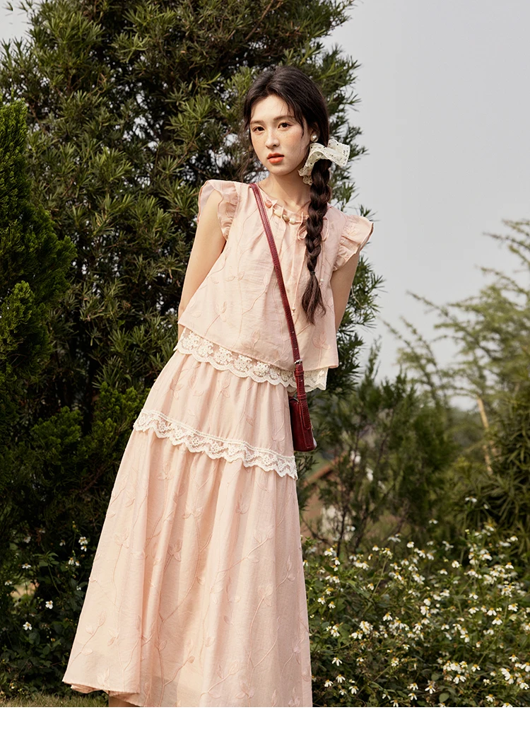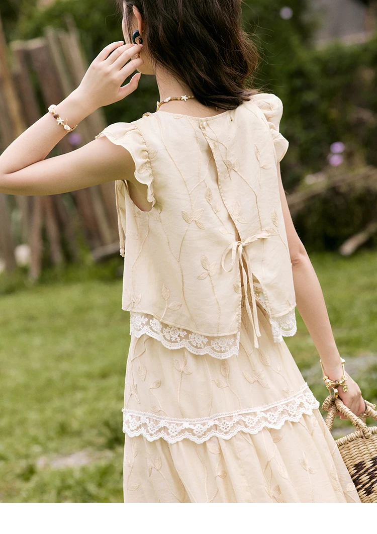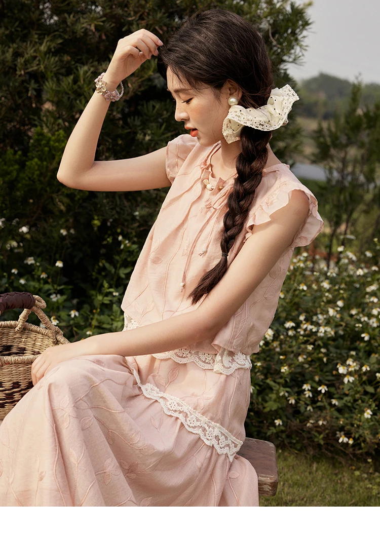 MISHOW Sweet Summer Skirt Sets Women New 2025 Short Flying Sleeve Round Neck Tops Hollow Embroidery A-line Skirt Lady MXE33T0545