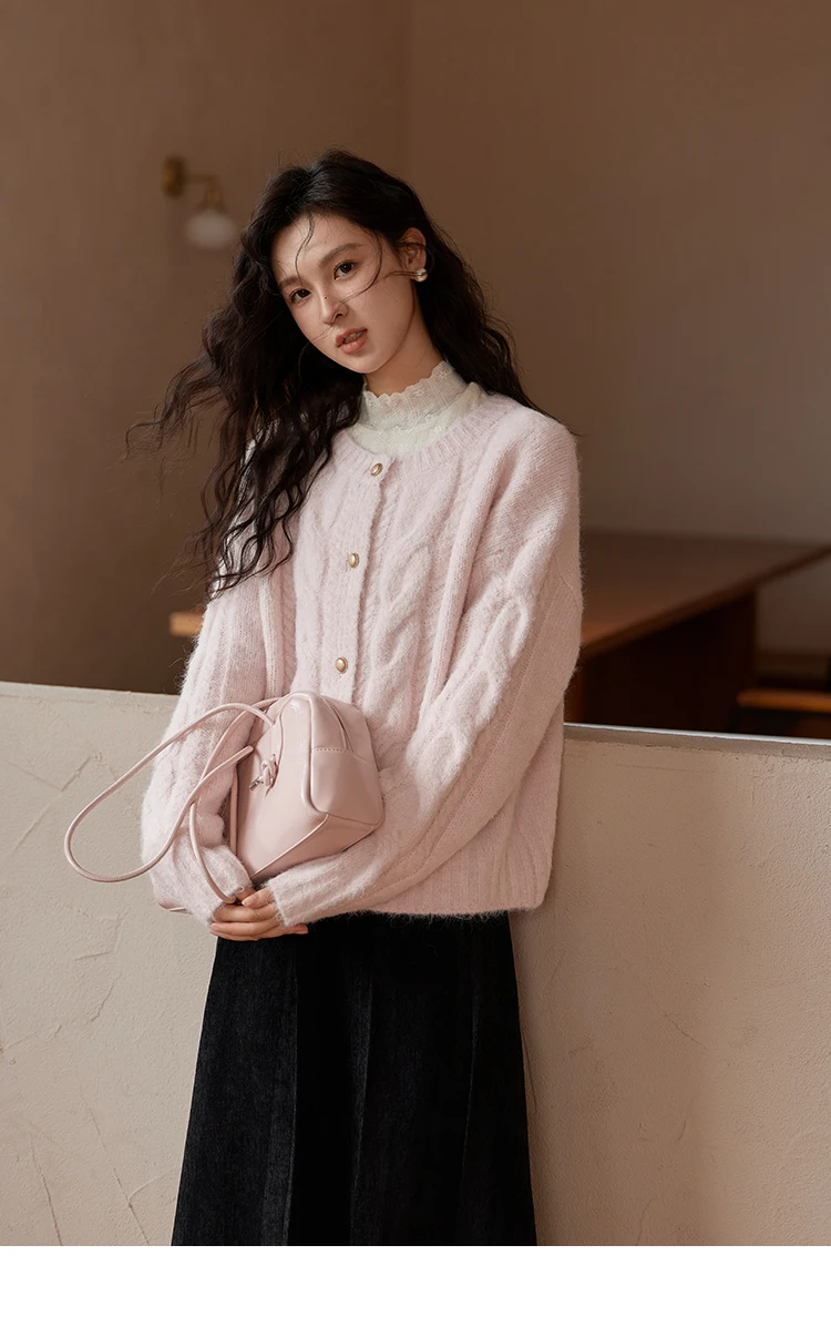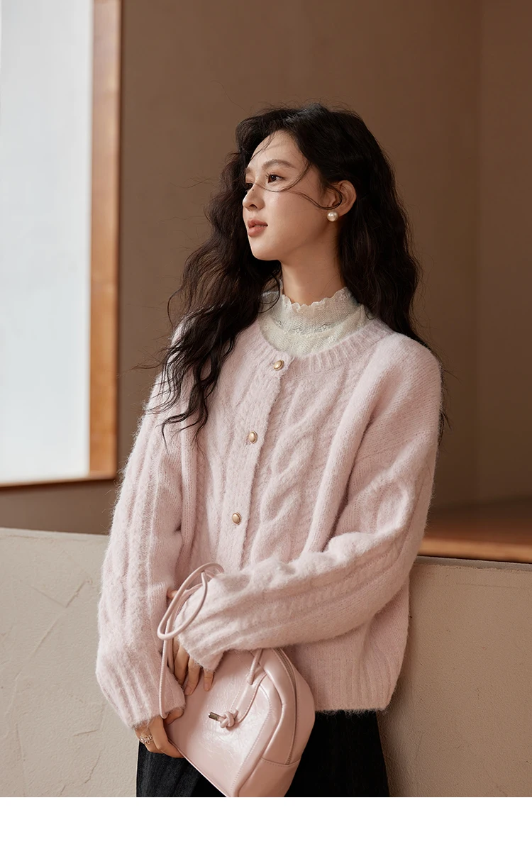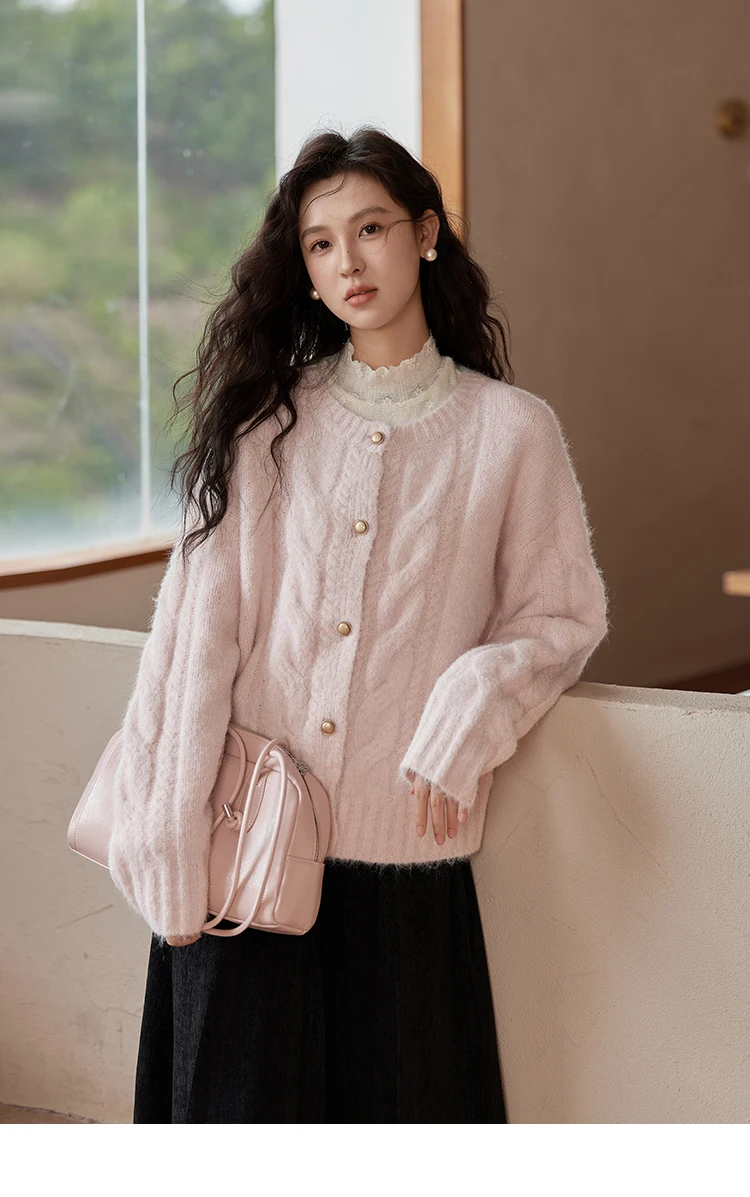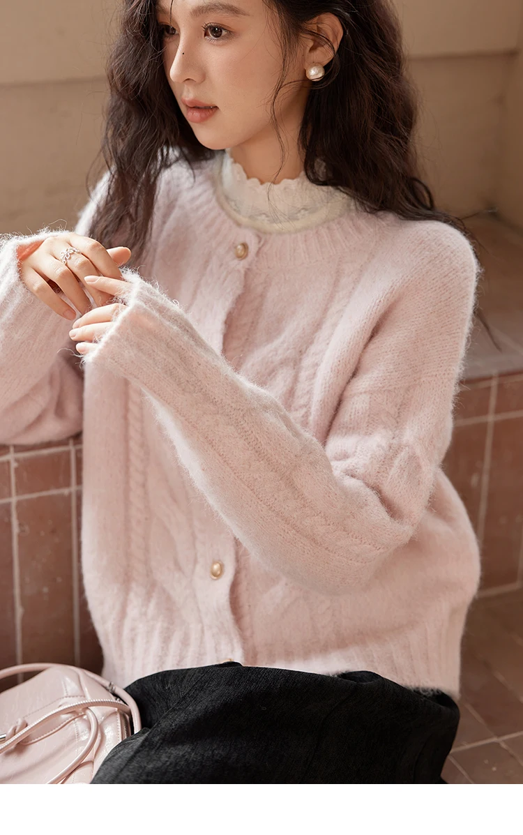 MISHOW Sweet Sweater Cardigan Women 2024 Autumn Winter French Gentle Slim Single Breasted O-Neck Wool Knitted Jacket MXD55Z1030
