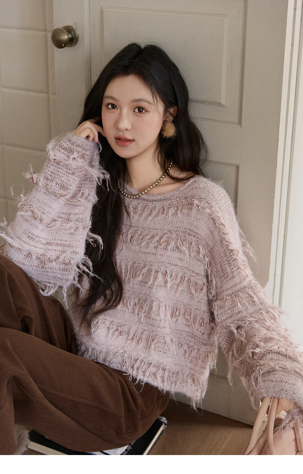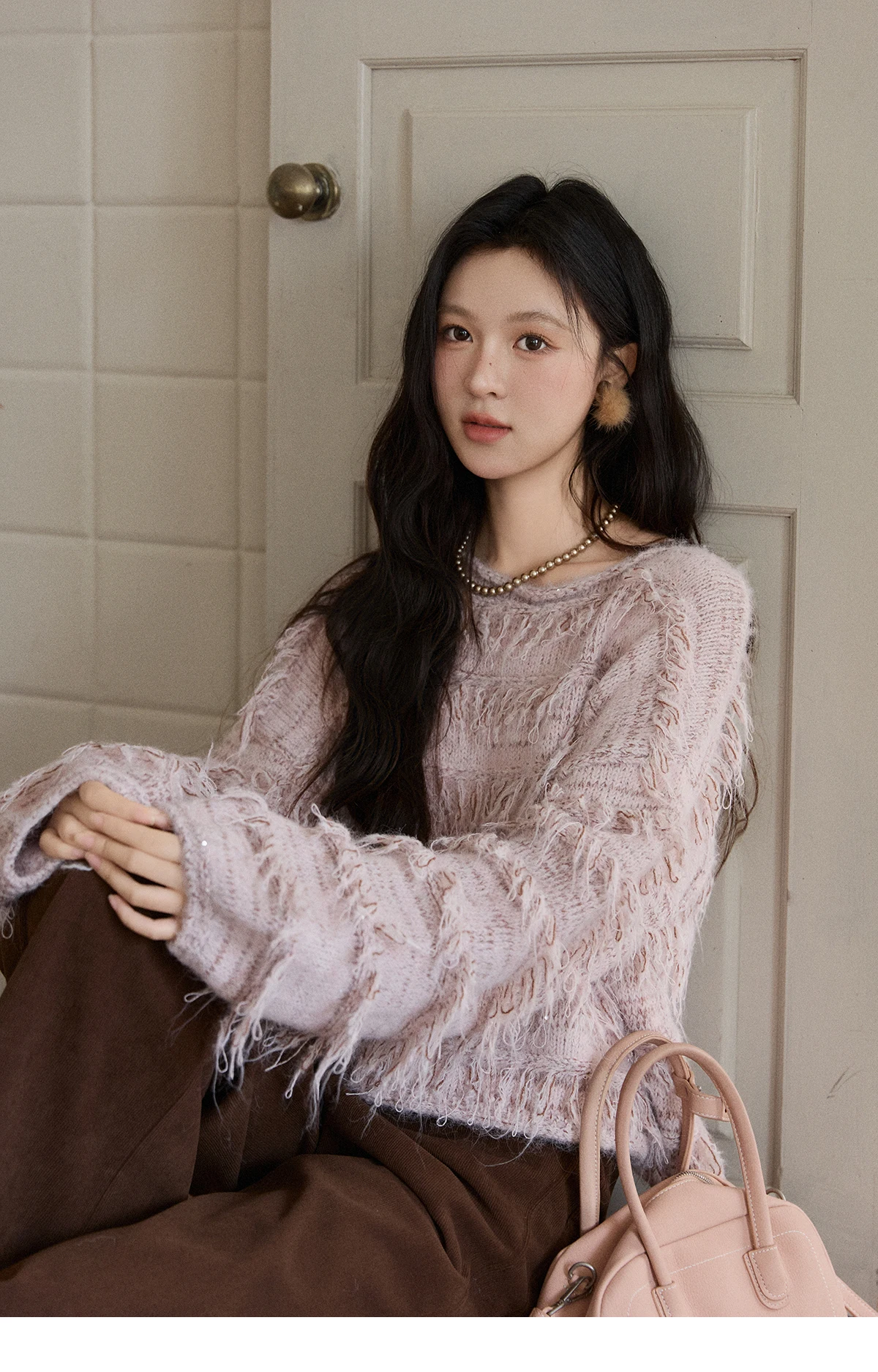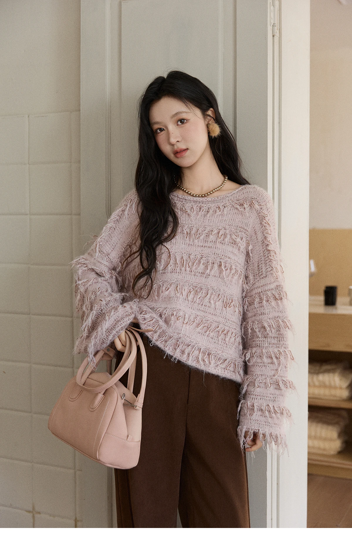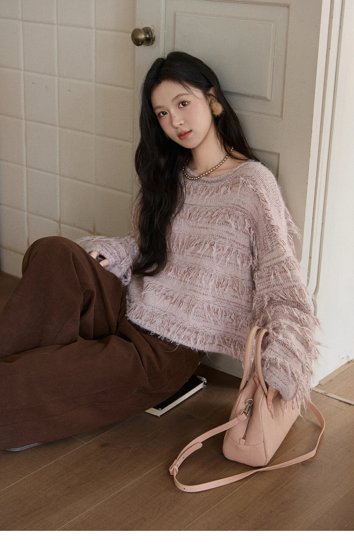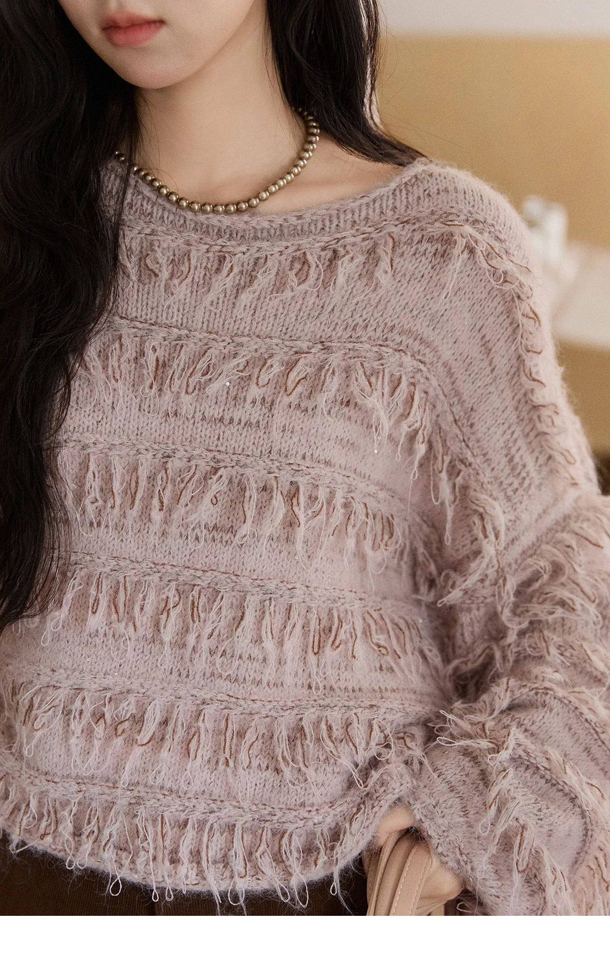 MISHOW Tassel Bead Wool Blended Sweater Autumn Winter 2025 Elegant Thick Knitted Sweater Loose Warm Tops Office Lady MXE90Z2822