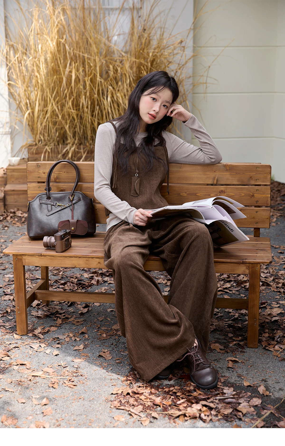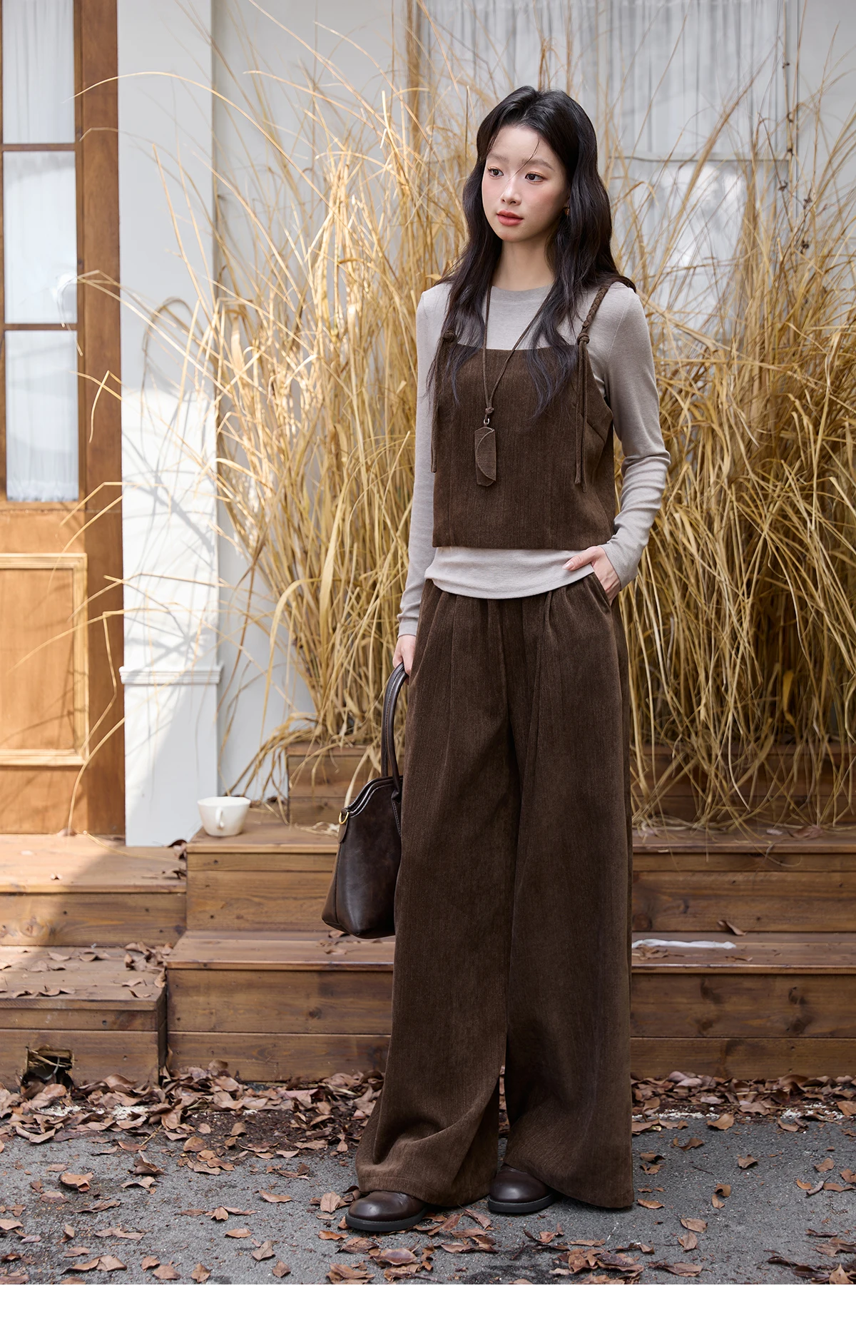 MISHOW Three-piece Suit Women 2025 Retro Brown Vest Wide-leg Pants Gray Long Sleeves Tops Autumn Women's Pants Set MXE49T1422