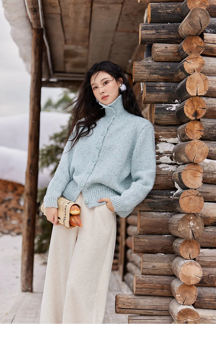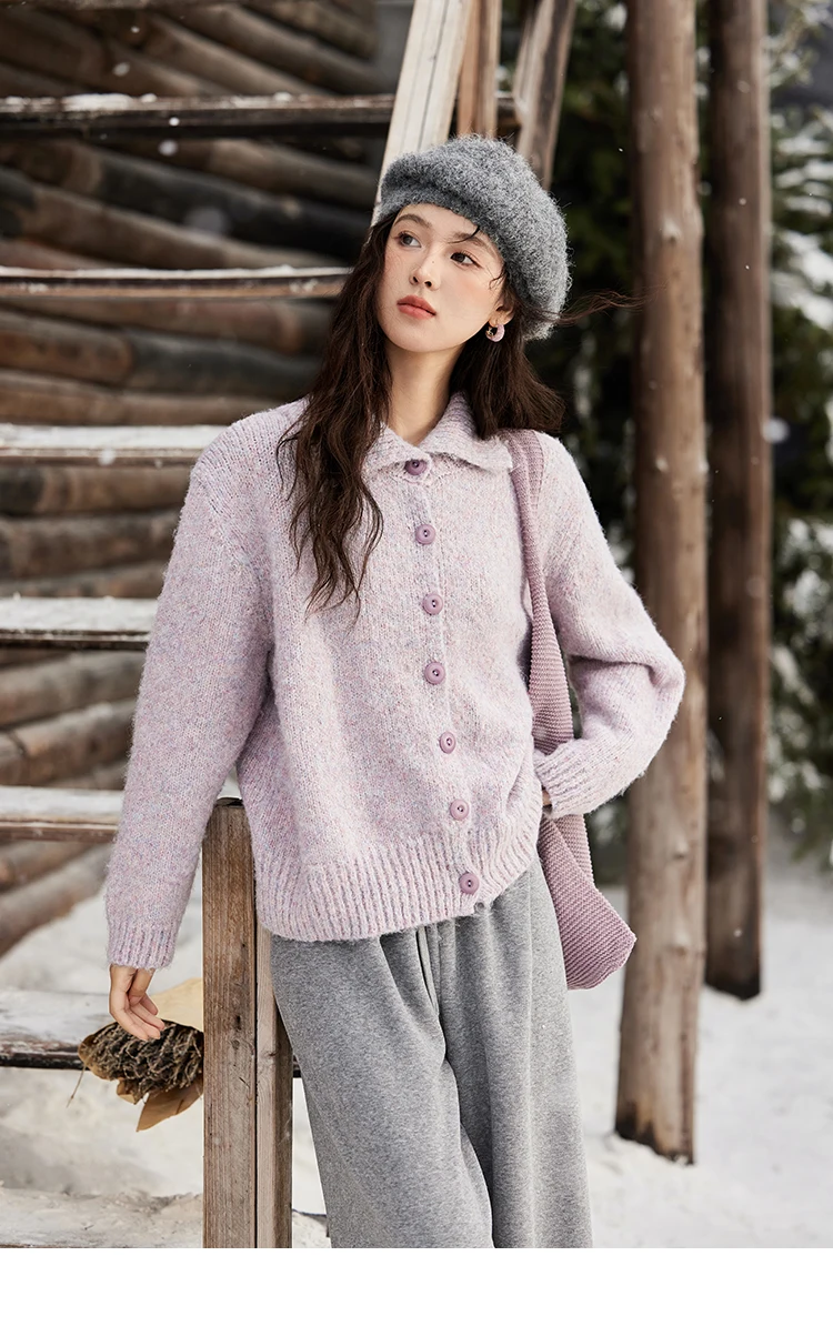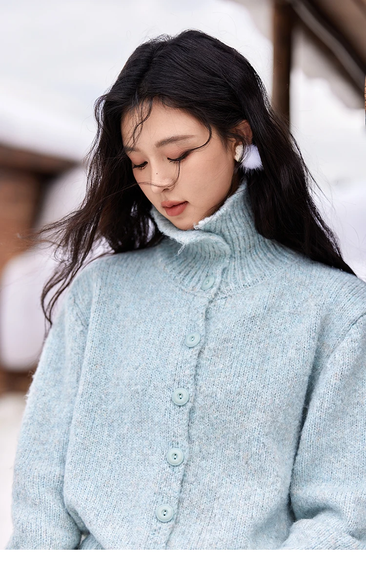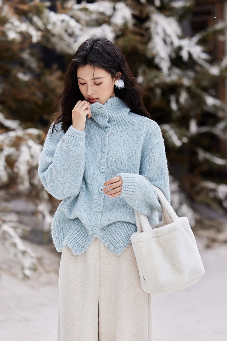 MISHOW Turn Down Collar Wool Blend Sweater Women Solid Single-breasted Tops Thickened Warm Versatile Knitted Cardigan MXD59Z1136