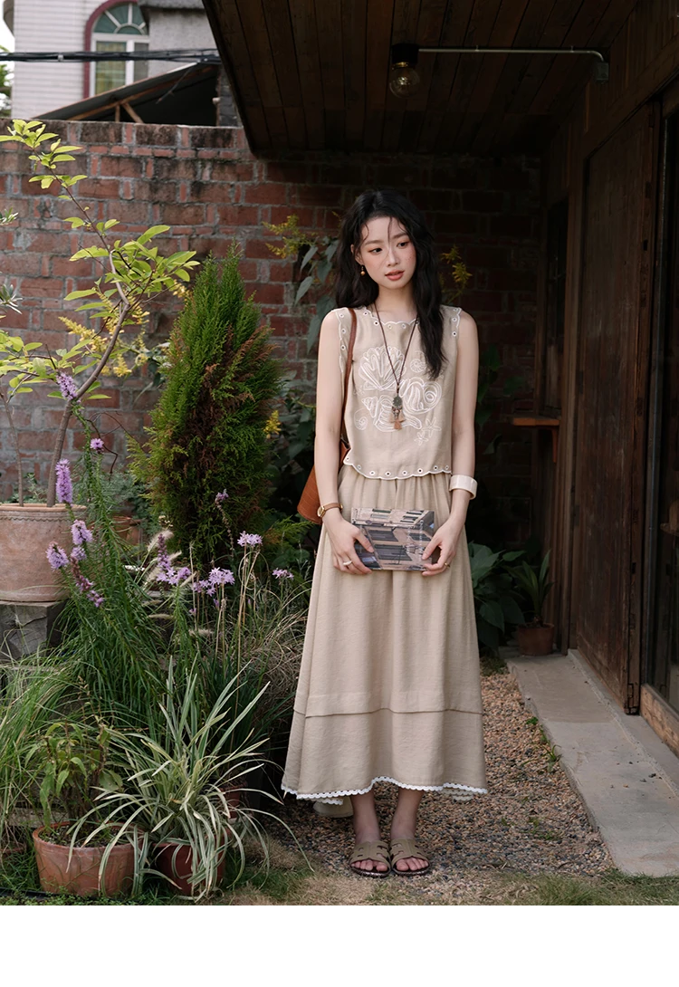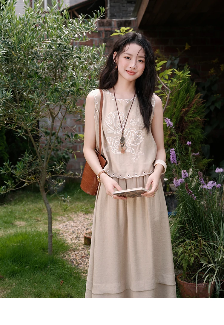 MISHOW Two-Piece Ladies Set 2025 Summer Hollow Out Embroidery Top Lace Spliced Elastic Waist Half Skirt Female Set MXE35T0594