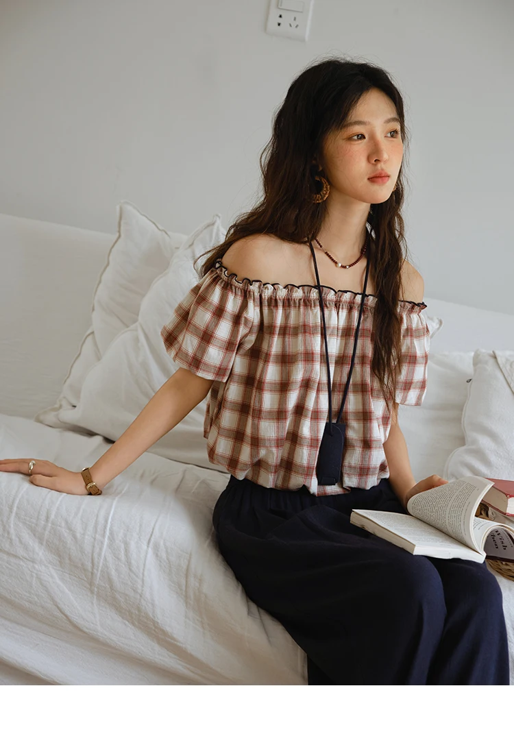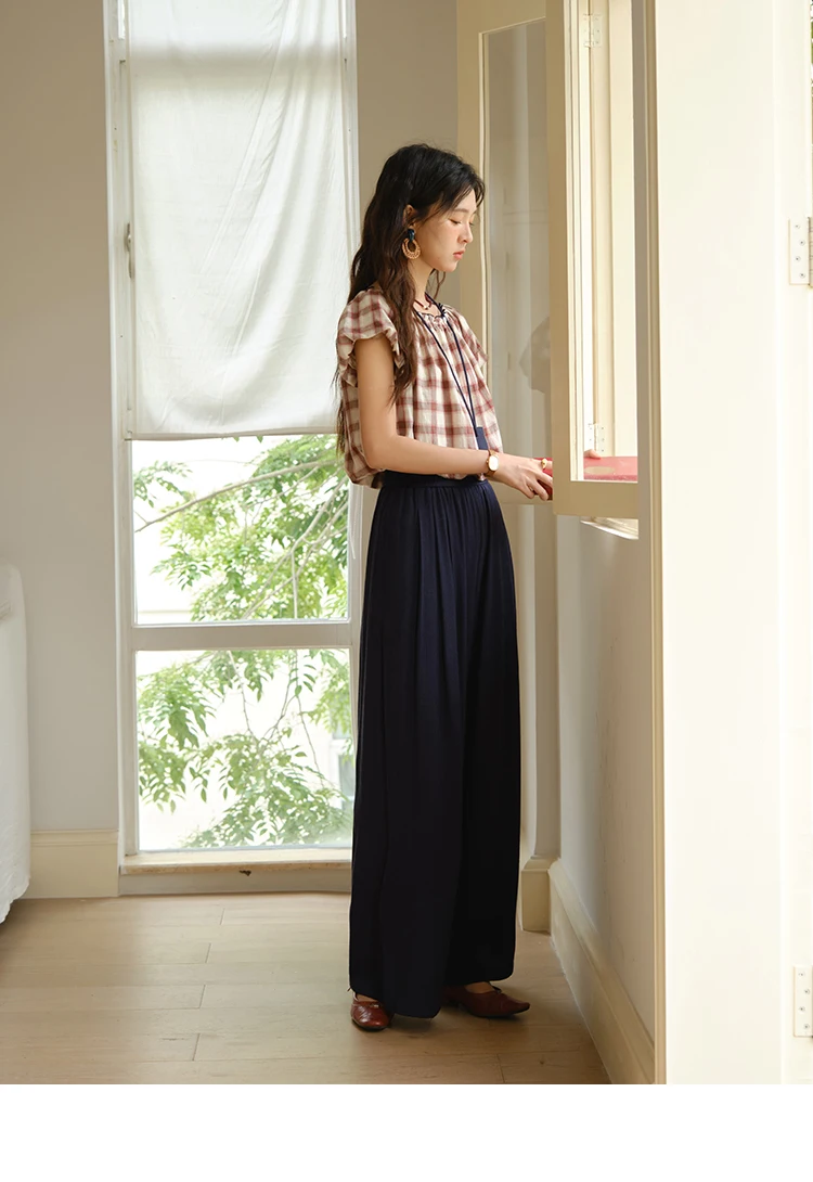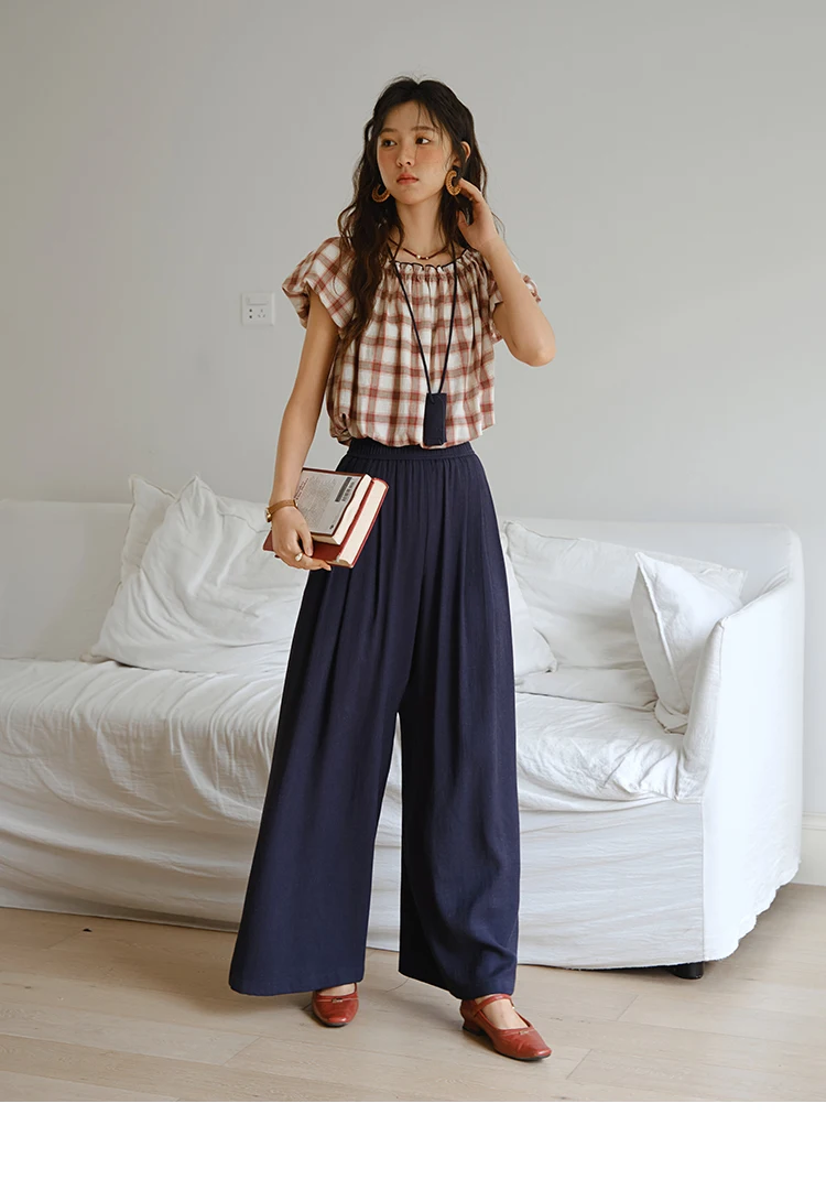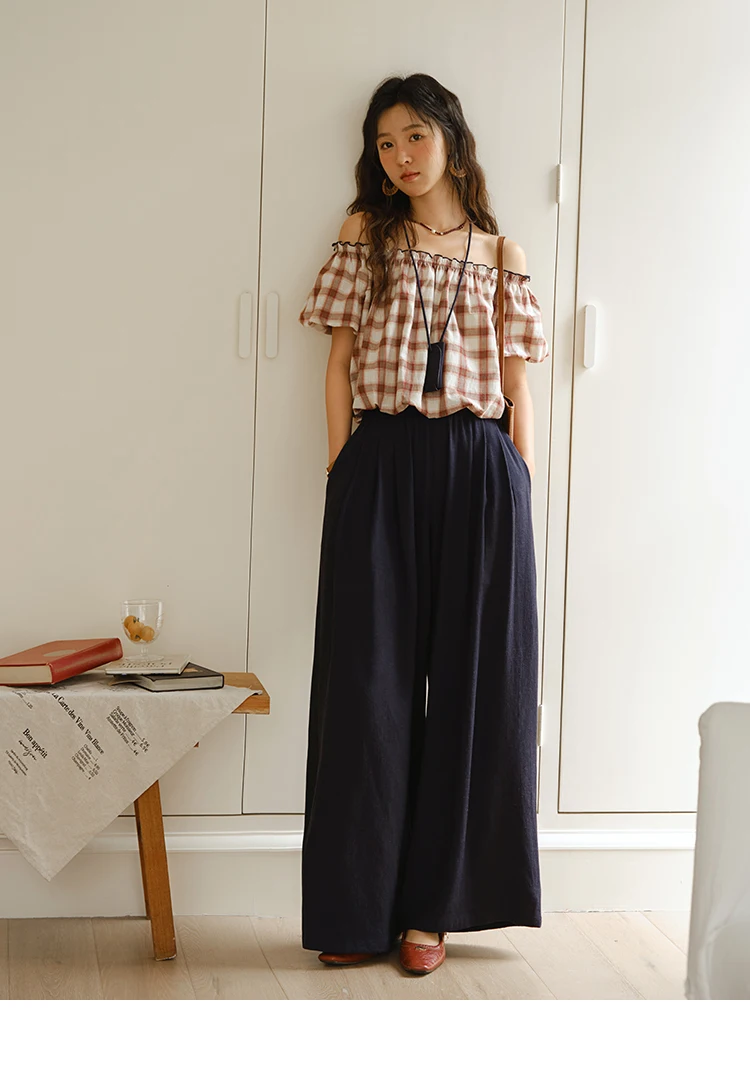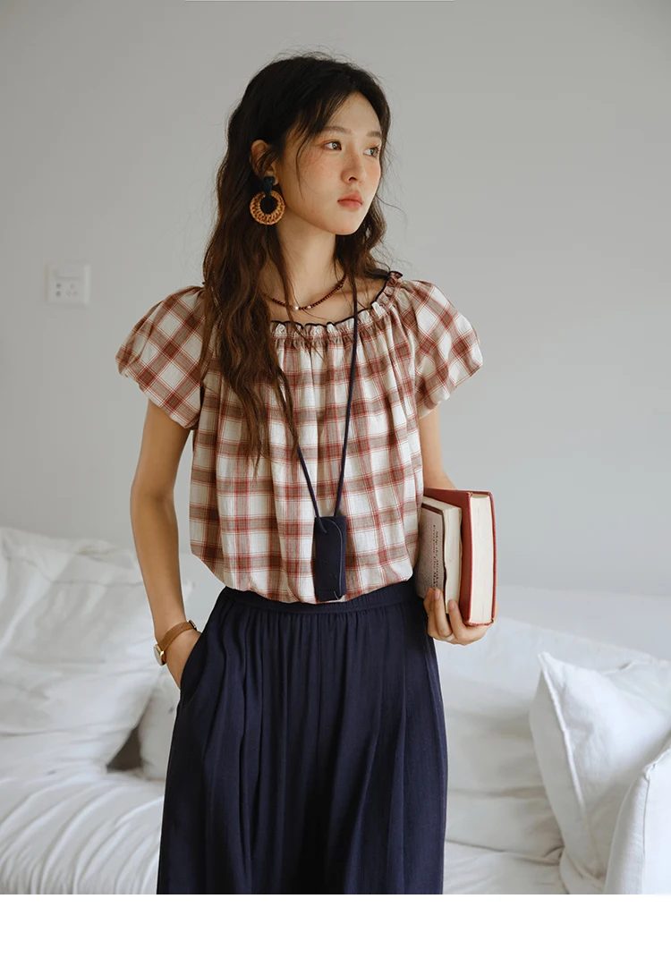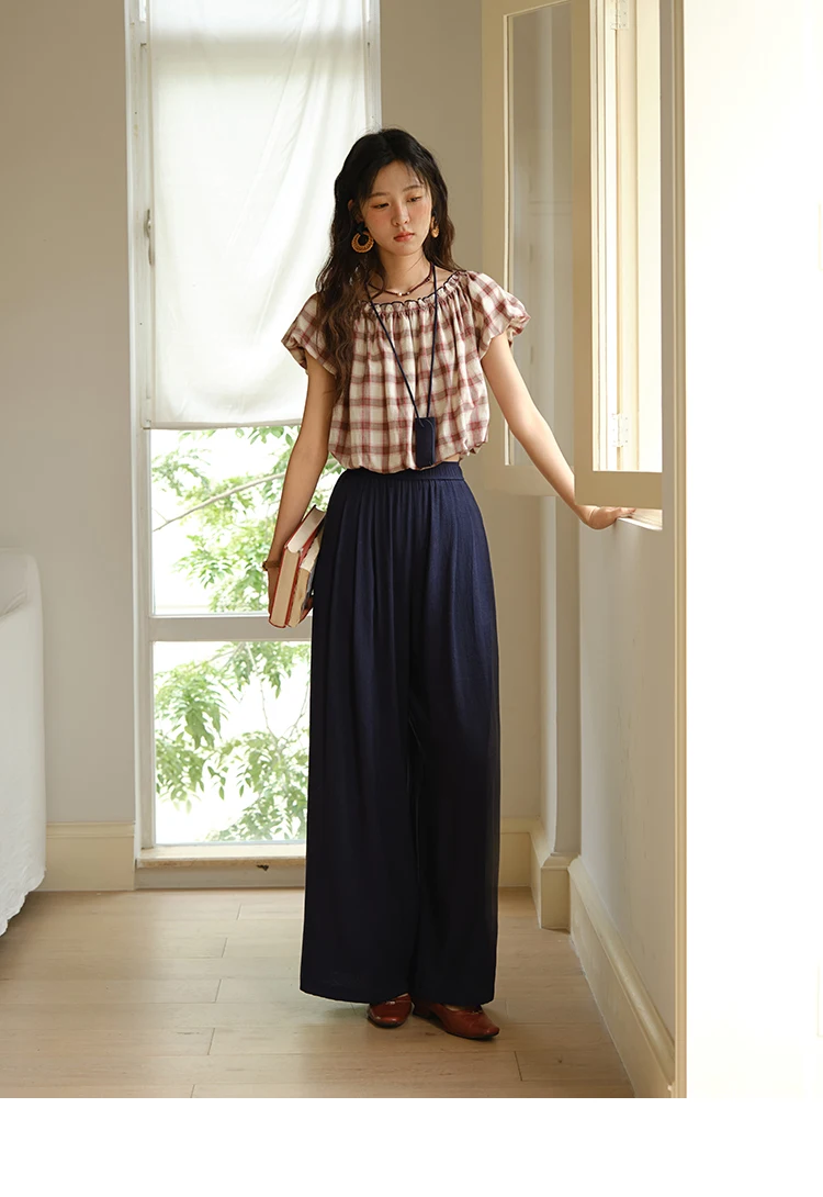 MISHOW Two Piece Set for Women Retro Red Grid Puff Sleeve Top+Casual Elastic Waist Wide Leg Pants Set 2025 Summer New MXE37T0649