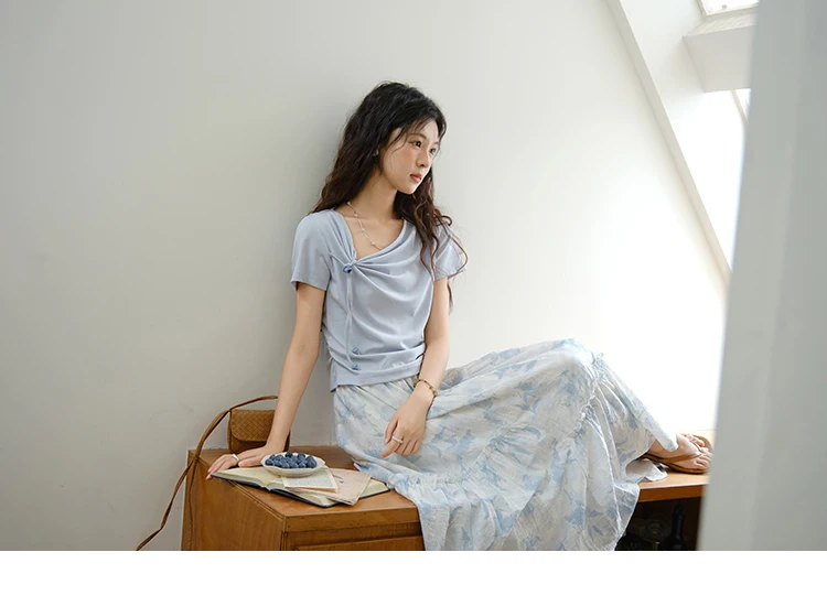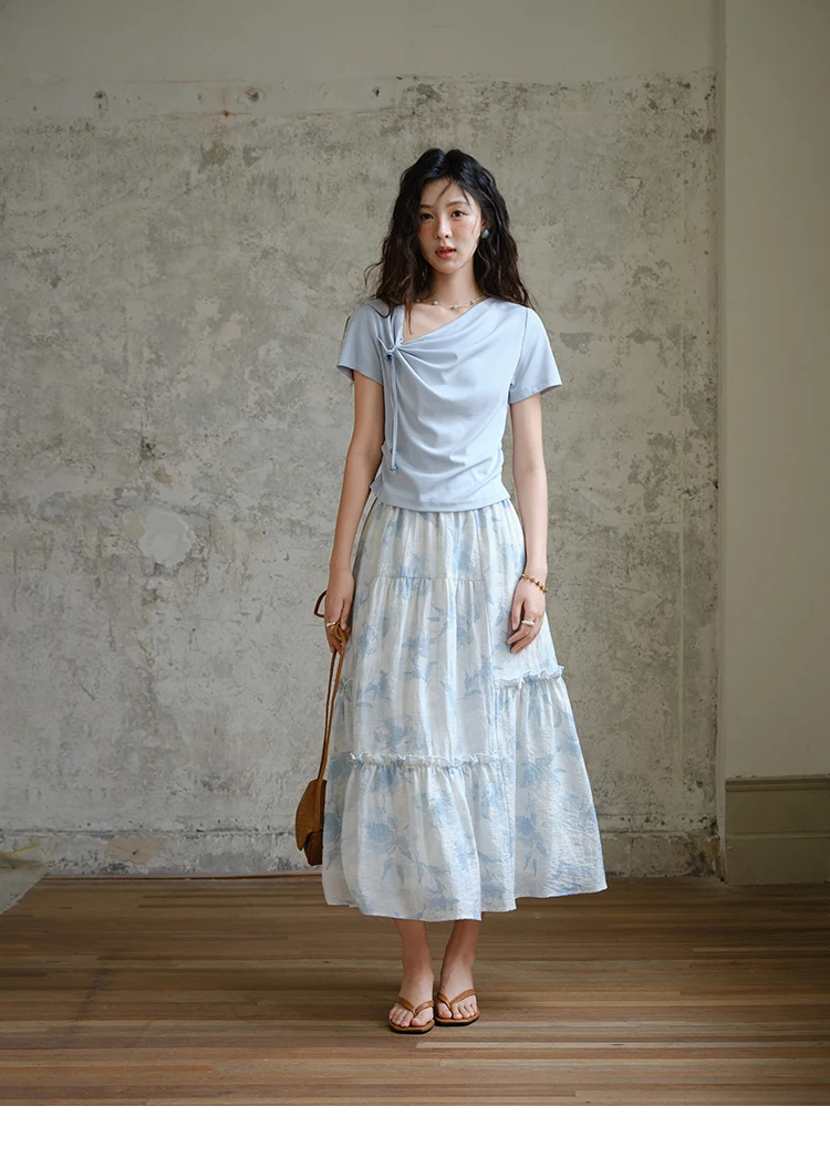 MISHOW Two Piece Set Women's Fashion Lace Up Top 2025 Summer New Casual Print Wide Leg Half Skirt Set Ladies Clothing MXE35T0596