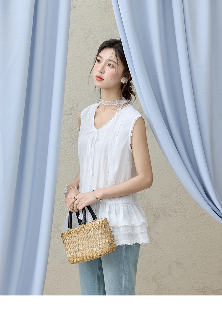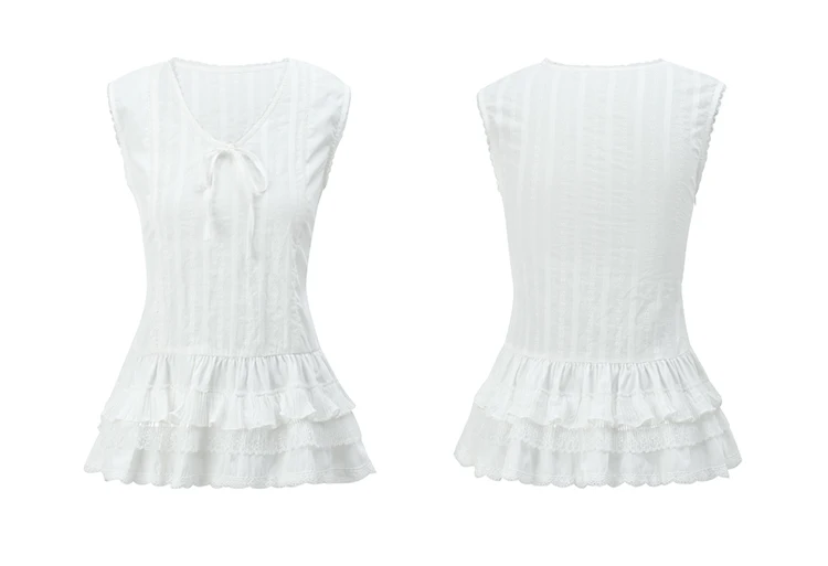 MISHOW Versatile Summer Vest Women 2025 New Solid V-neck Lace Cake Hem Sleeveless Vests Female Fashion Straight Tops MXE31X1779