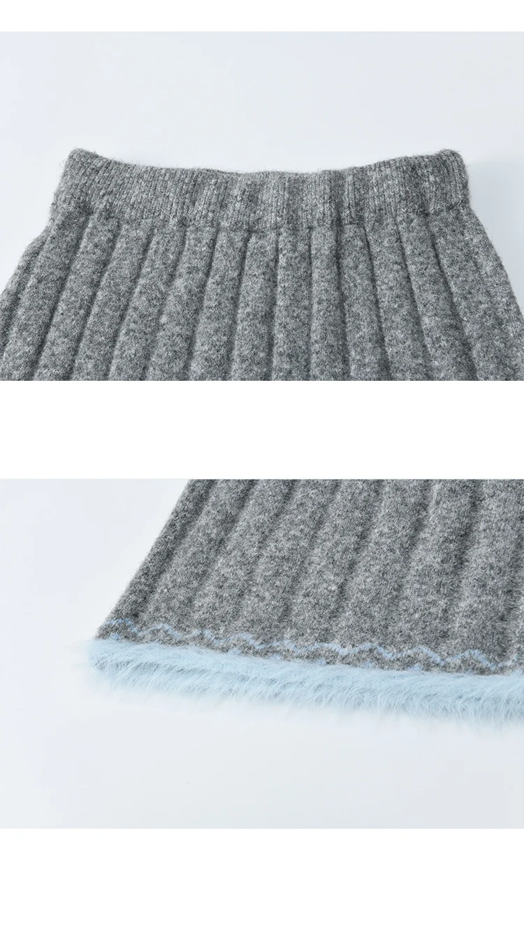 MISHOW Woman Gray Sweater Skirt Suit 2025 Winter Fashion Crew Neck Long Sleeve Sweater Knitted Mini Skirt Suit Woman MXE51T1406