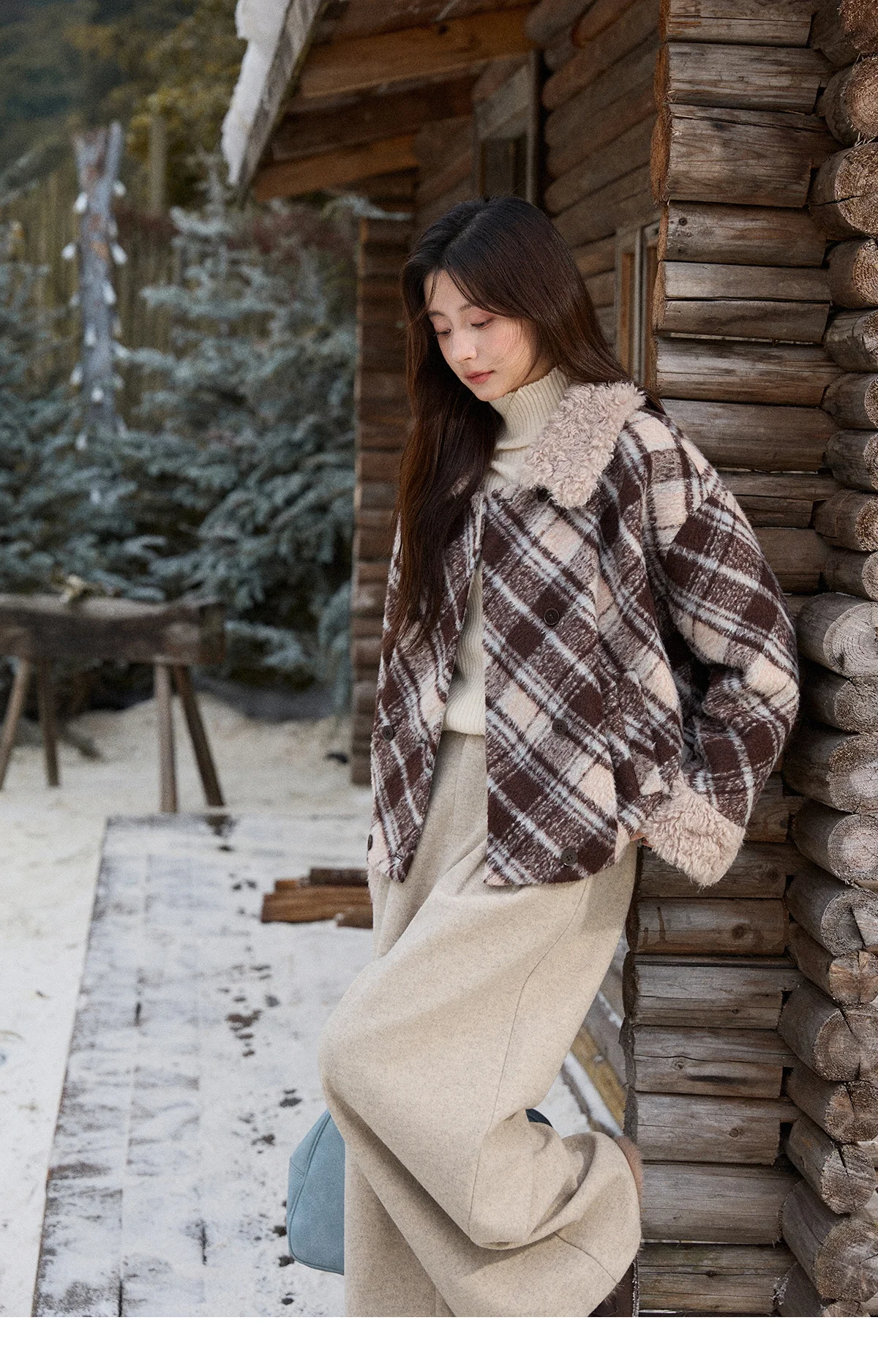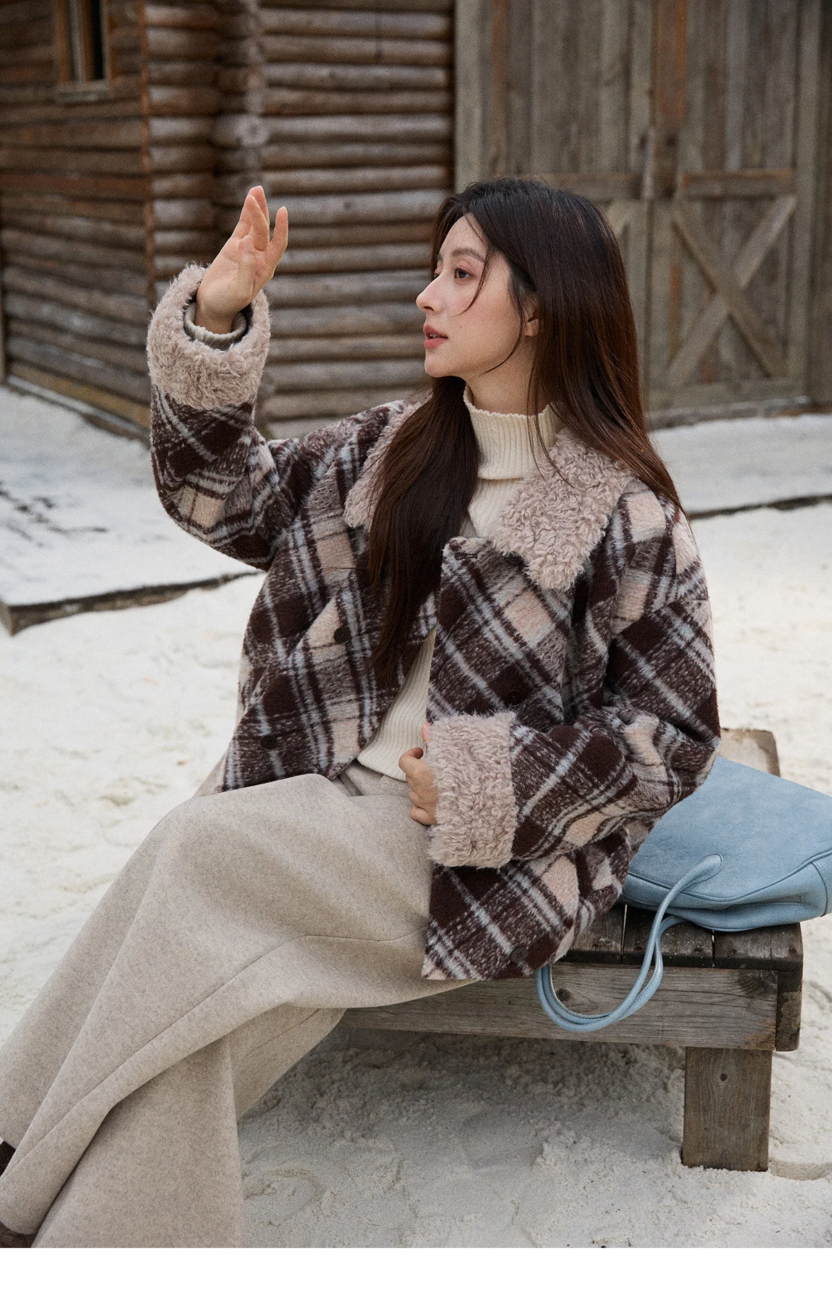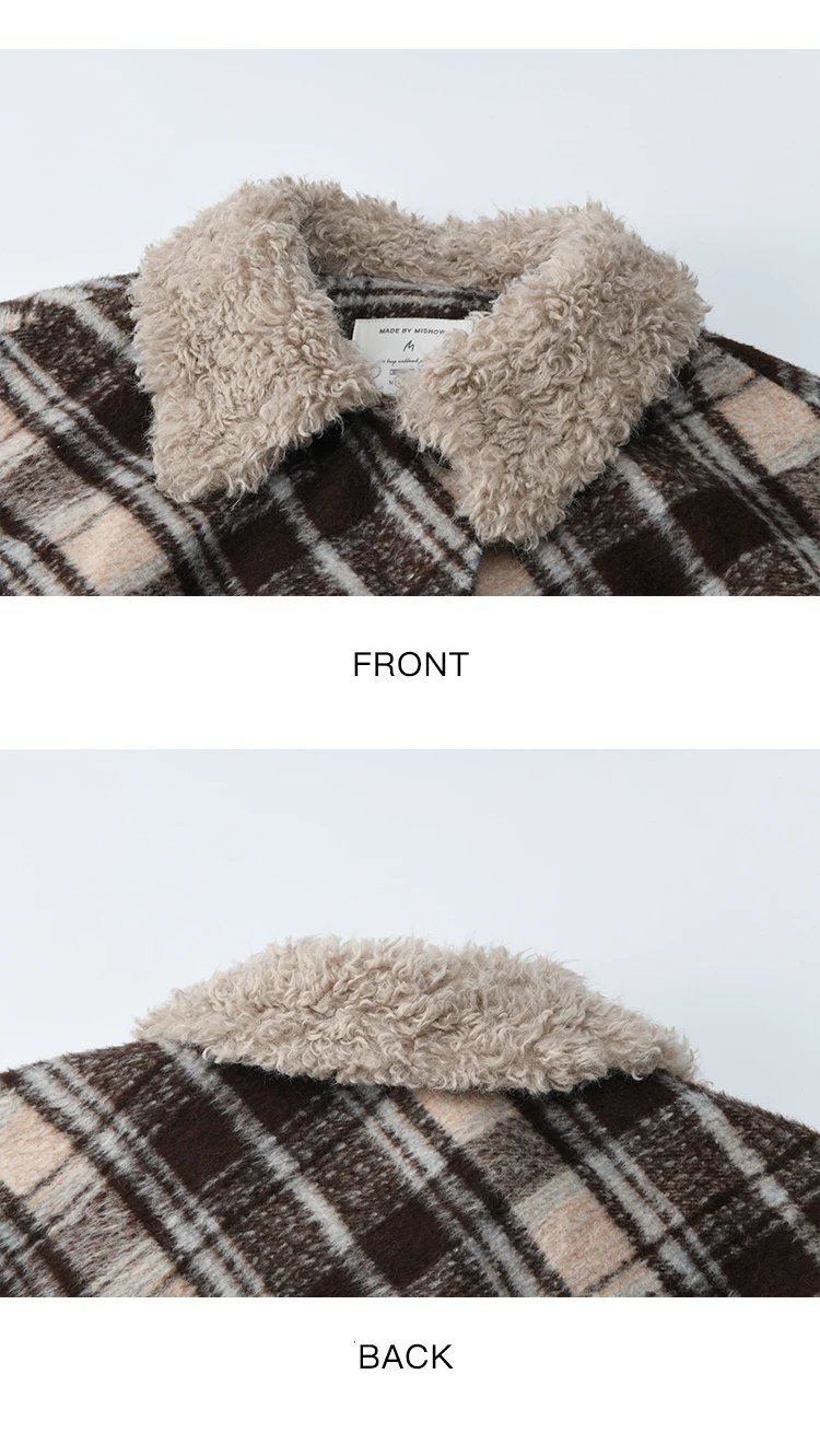 MISHOW Woman Jacket 2025 Autumn Winter Loose Retro Plaid Turn-down Collar Short Jacket Commute Warm Wool Blend Coat MXE89W0904