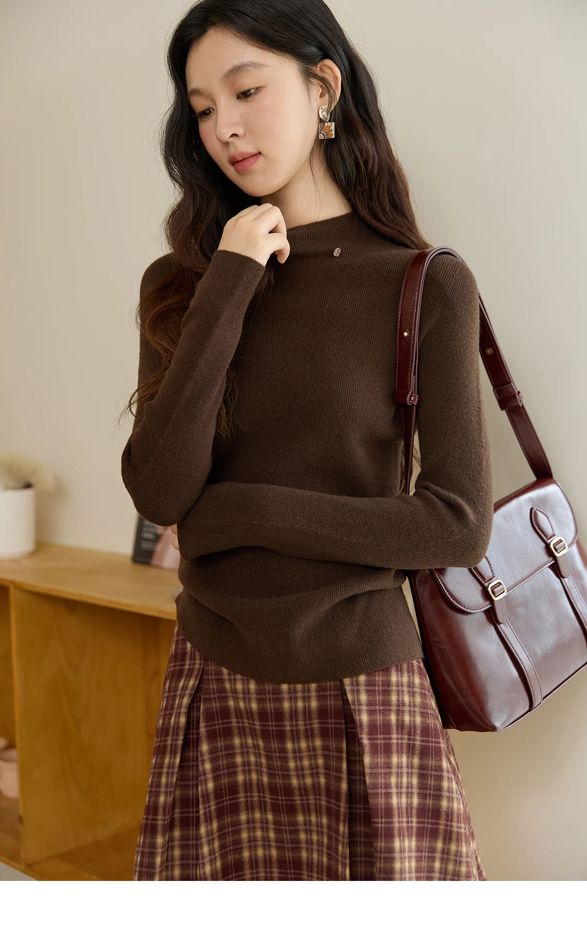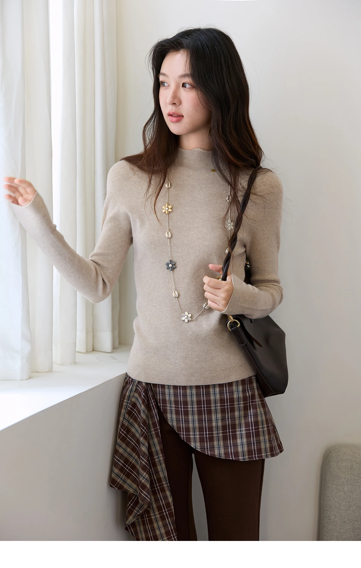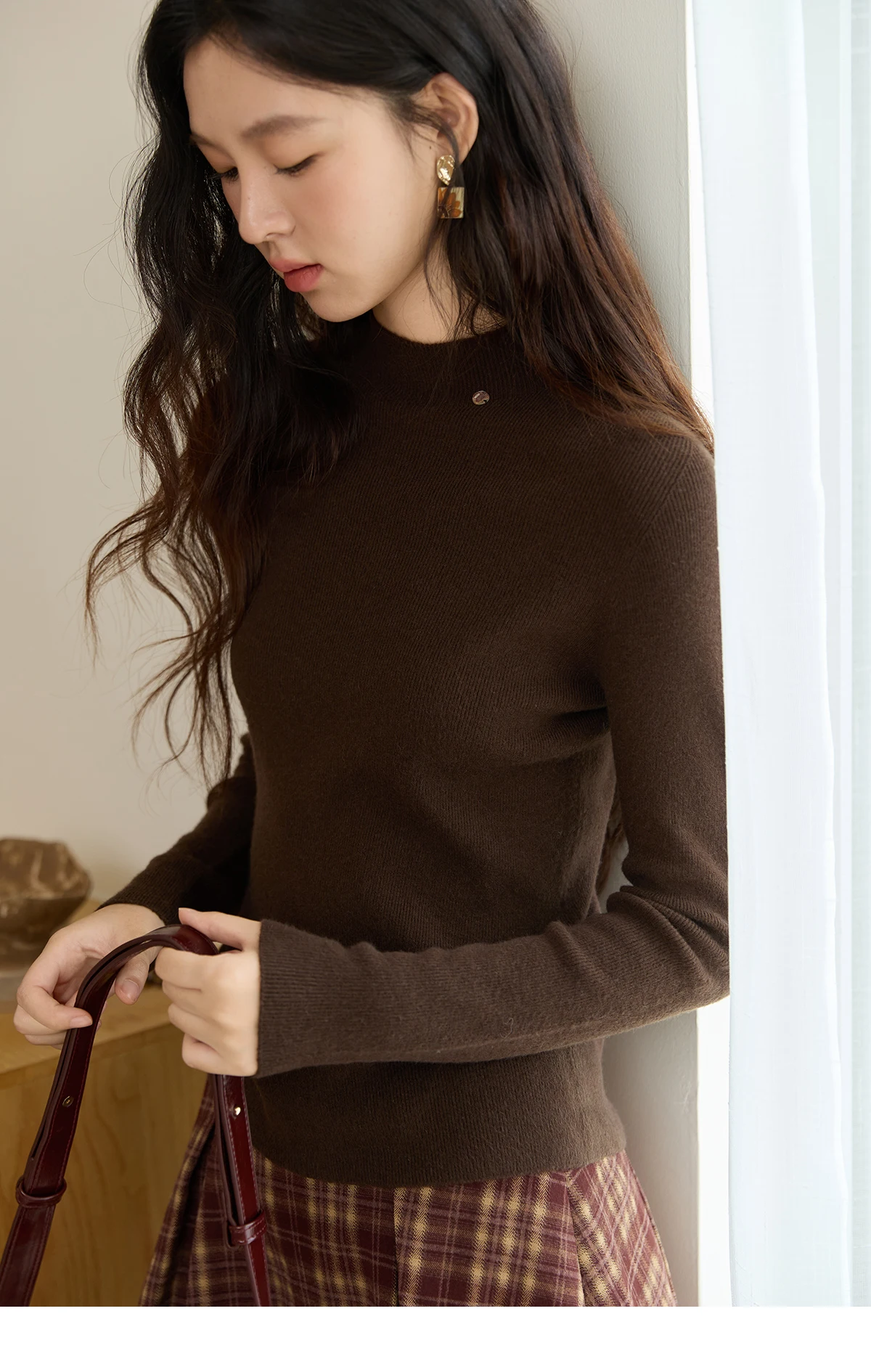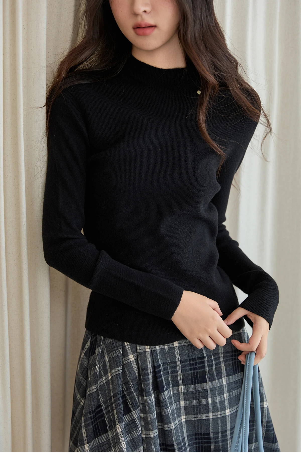 MISHOW Woman Long-sleeved Tops 2025 Autumn Winter Minimalist Mock Neck Knited Top Commute Casual Slim Pullover Woman MXE48Z2583