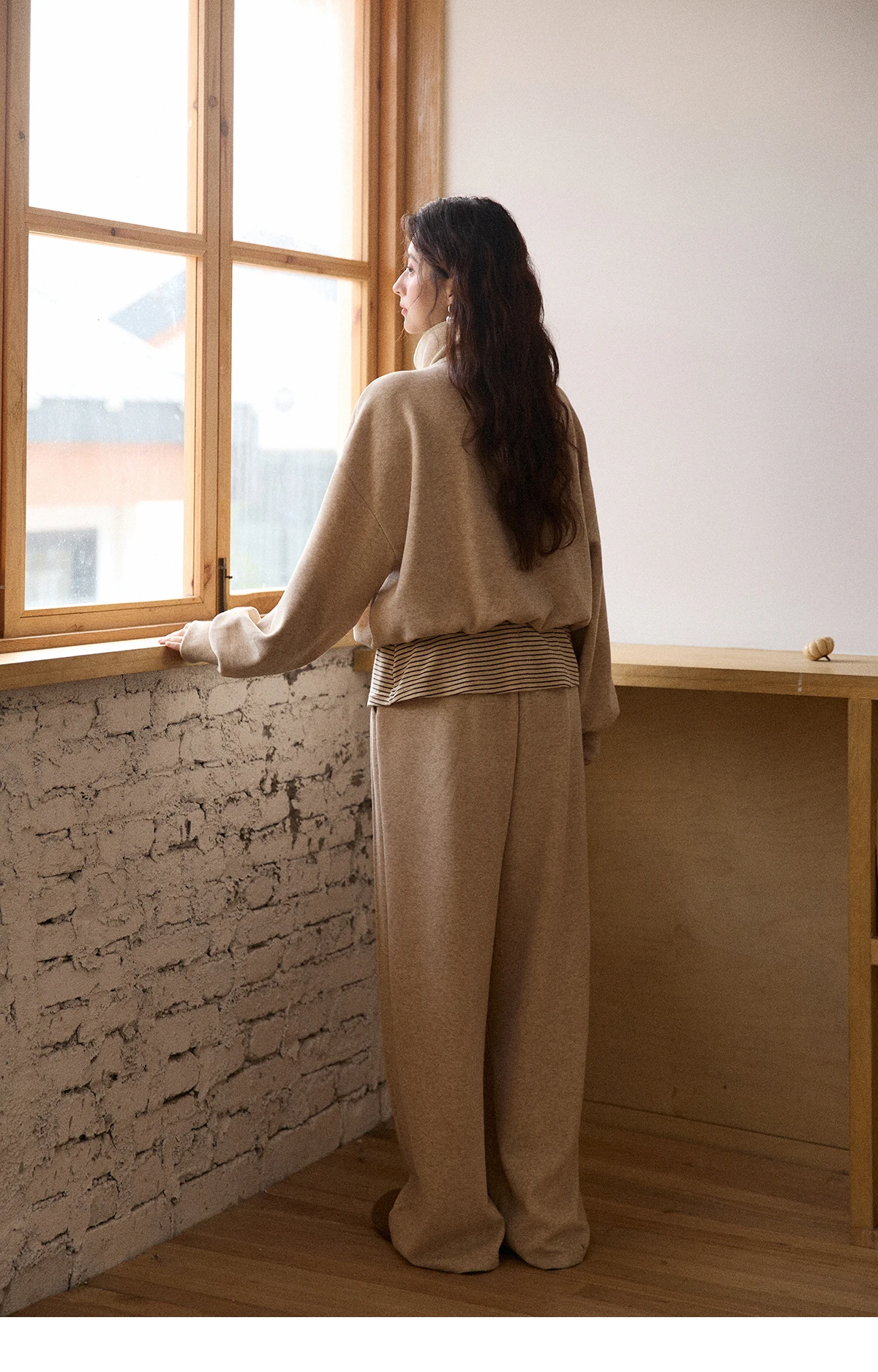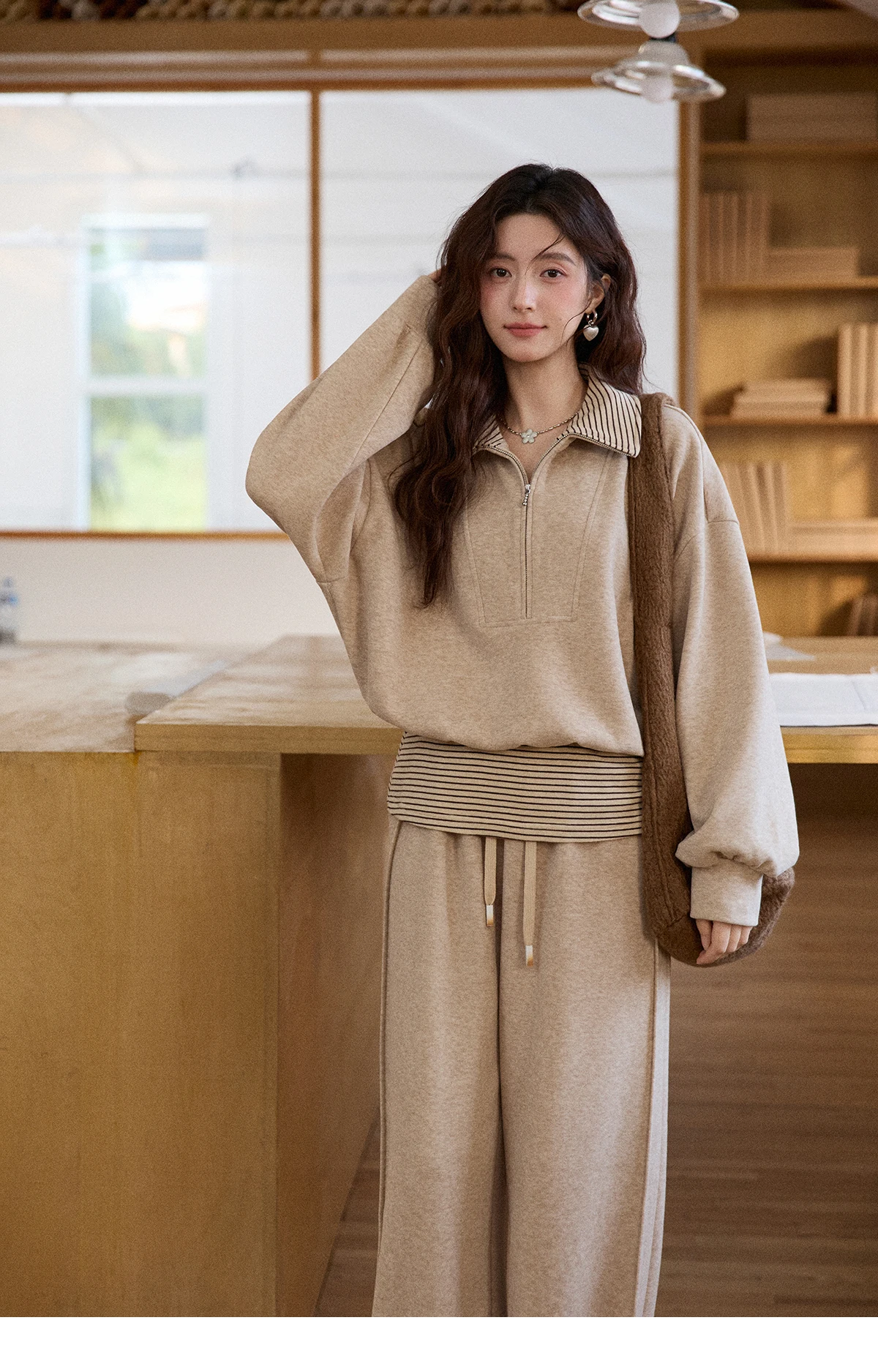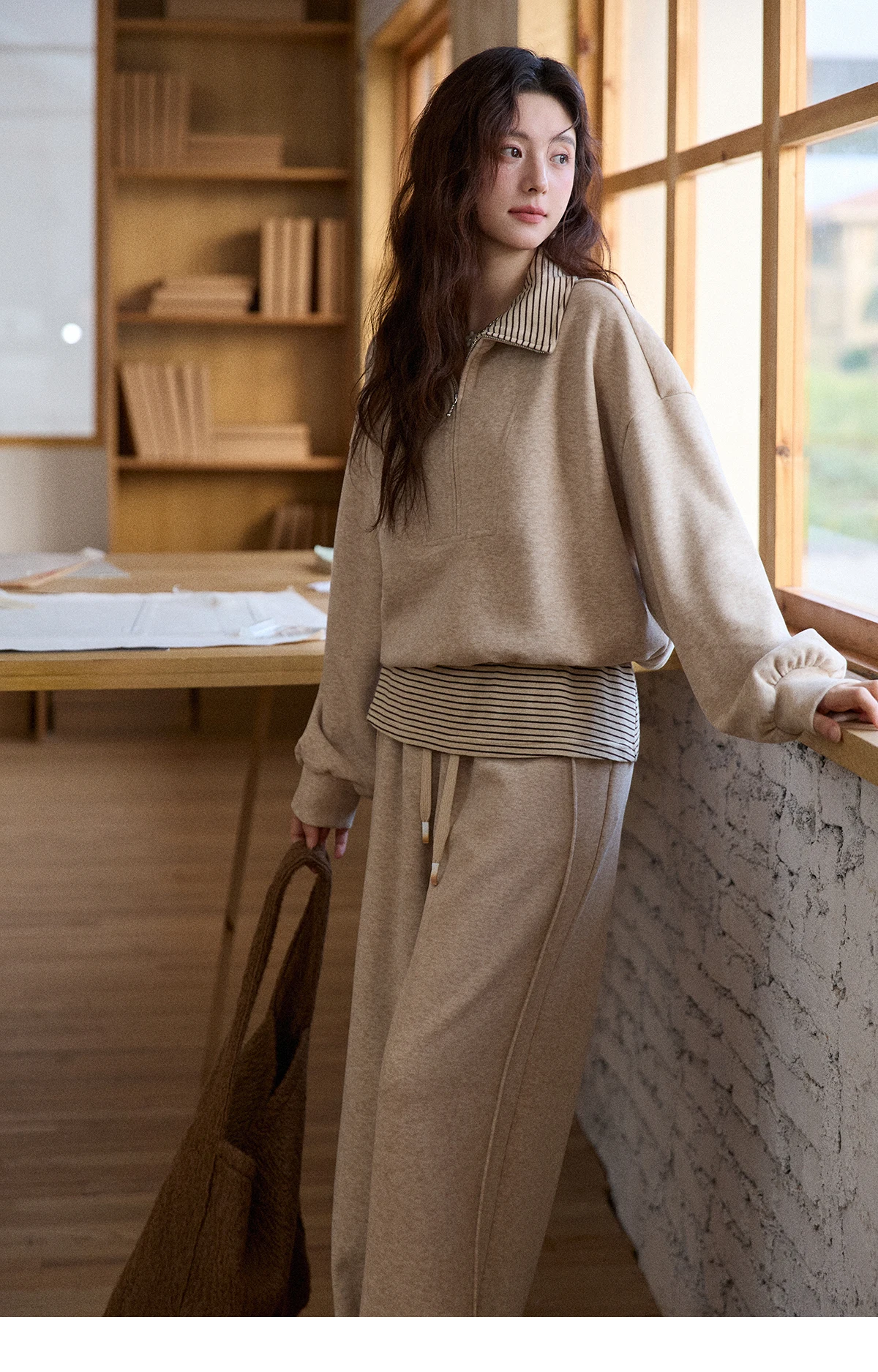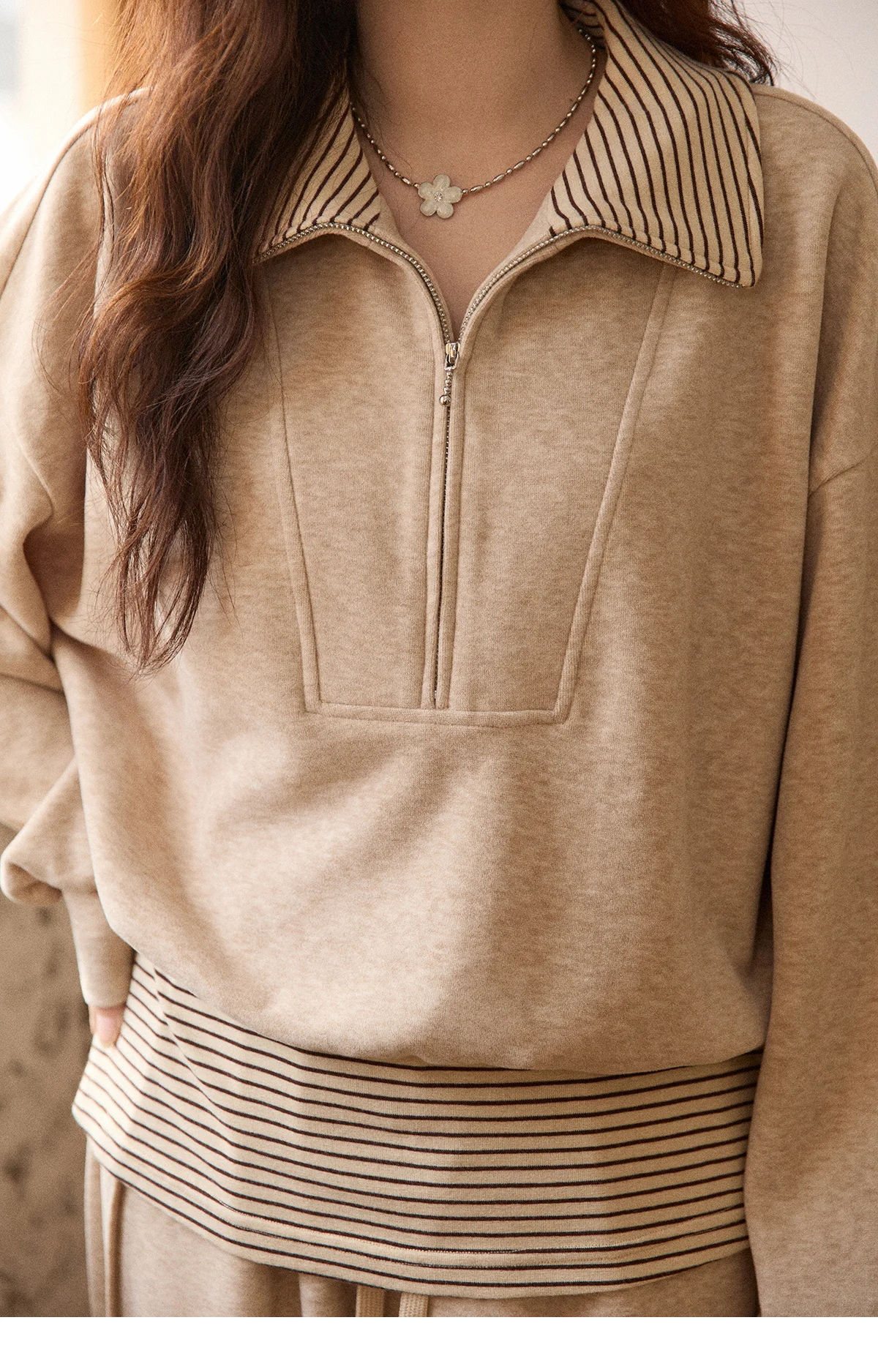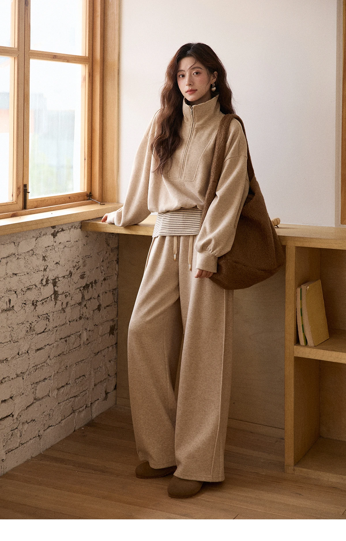 MISHOW Woman Pants Set 2025 Winter Casual Retro Sweatshirt Set Striped Lapel Half-Zip Sweatshirt Wide Leg Pants MXE87T1425
