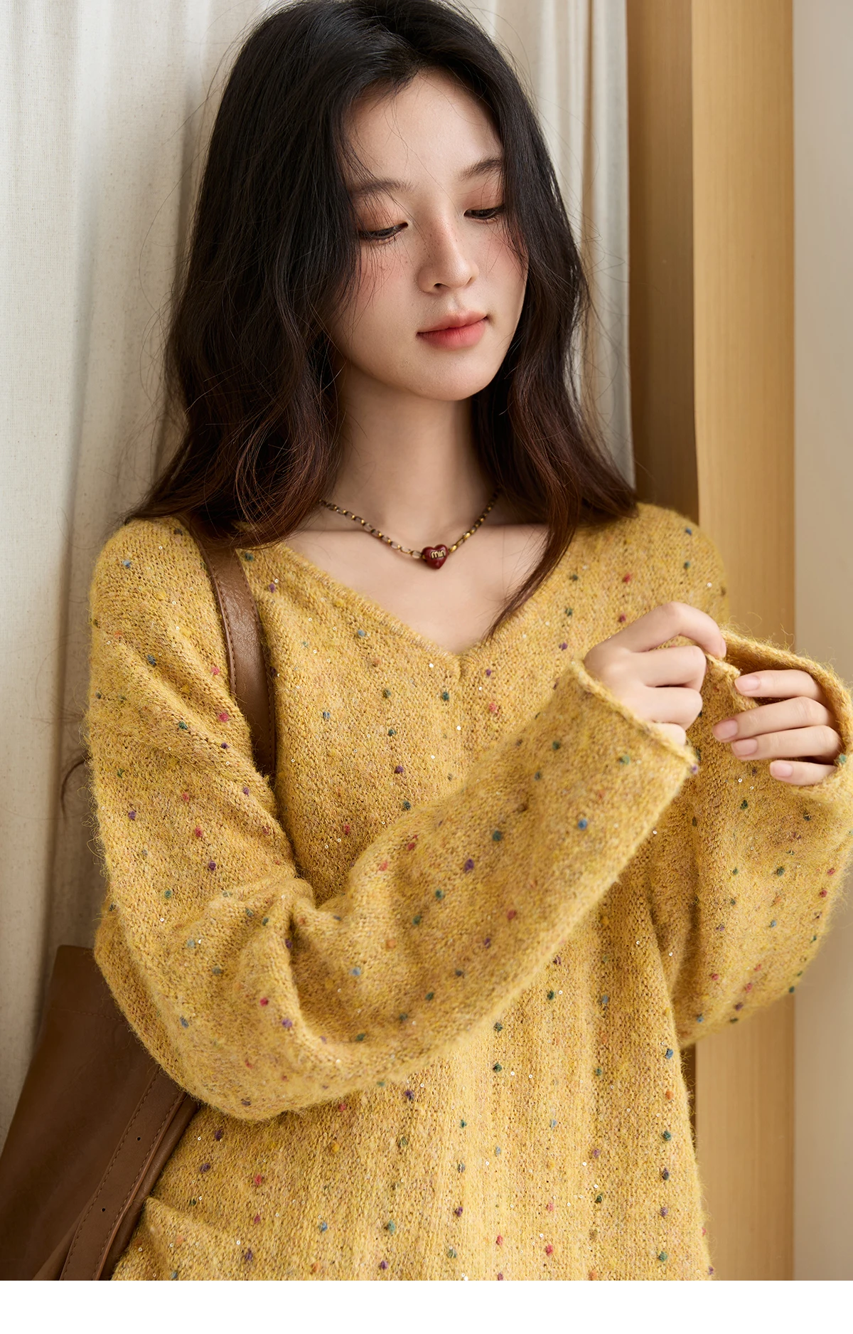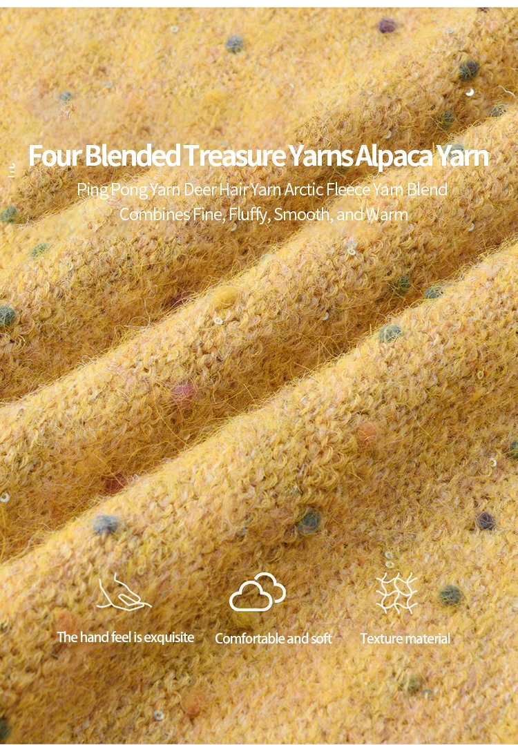 MISHOW Women Long Sleeve Tops 2025 Autumn Retro Yellow Sequins V-neck Sweater Knitted Comfortable Casual Pulllovers MXE47Z2572