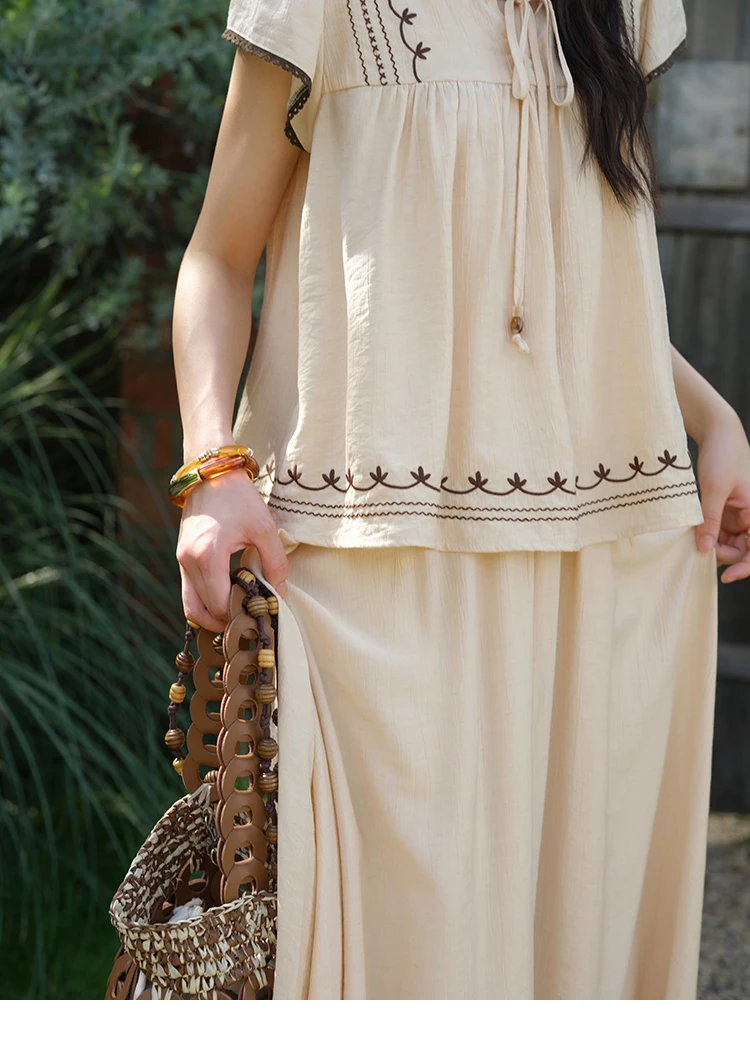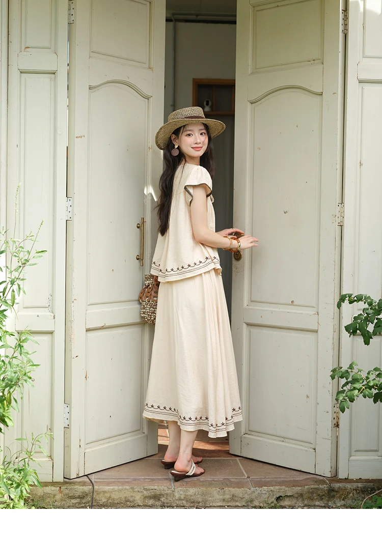 MISHOW Women Two Piece Set 2025 Summer Female Embroidery Flying Sleeve Lace Spliced Top Loose Elastic Waist Skirt Set MXE39T0667