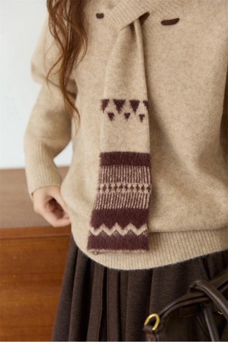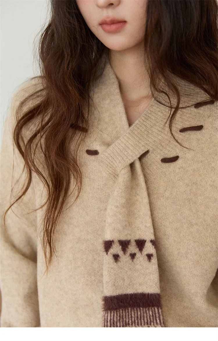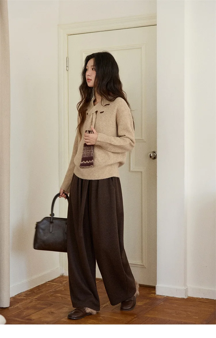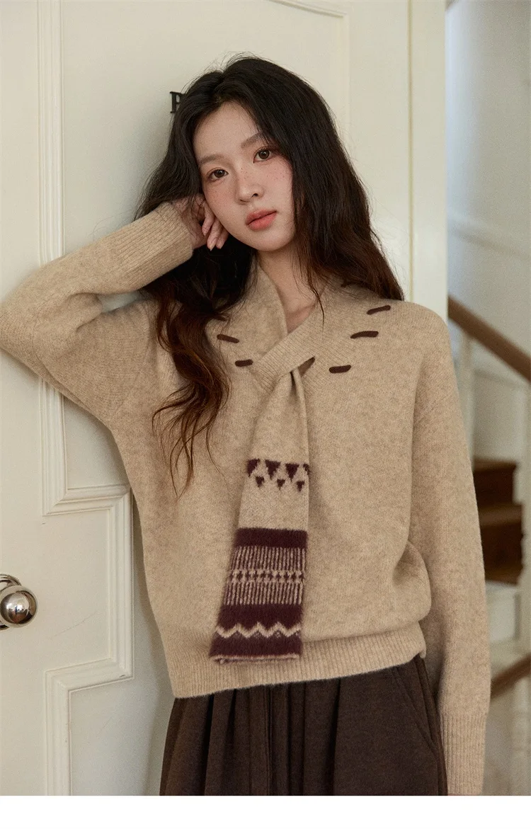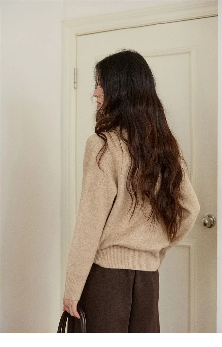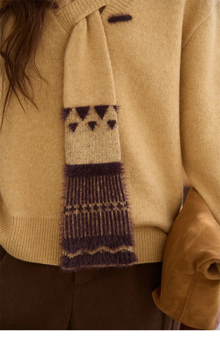 MISHOW Women V-neck Knit Top 2025 French-style Elegant Workwear Long-sleeved Yellow Pullover Women's Winter Clothing MXE87Z2771