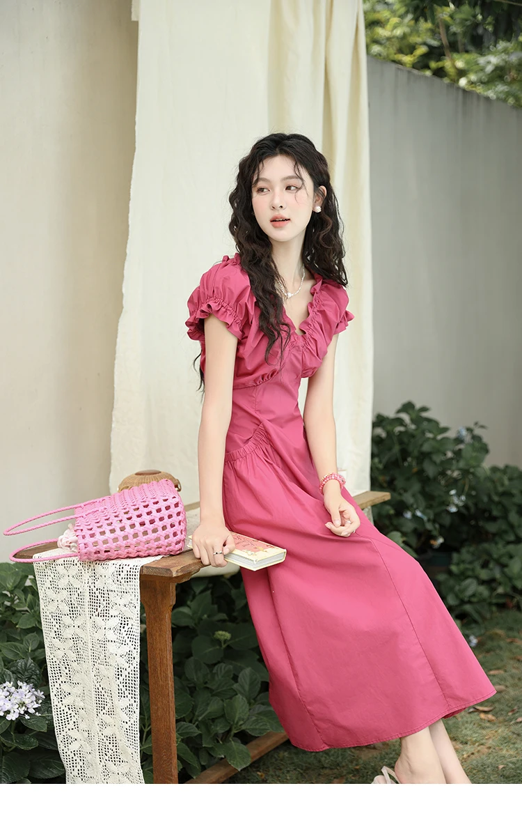 MISHOW Women's 100 Cotton Stringy Selvedge V-Neck Waist Dress 2024 Summer French Symmetric Pocket Mid Length Dresses MXD29L1934