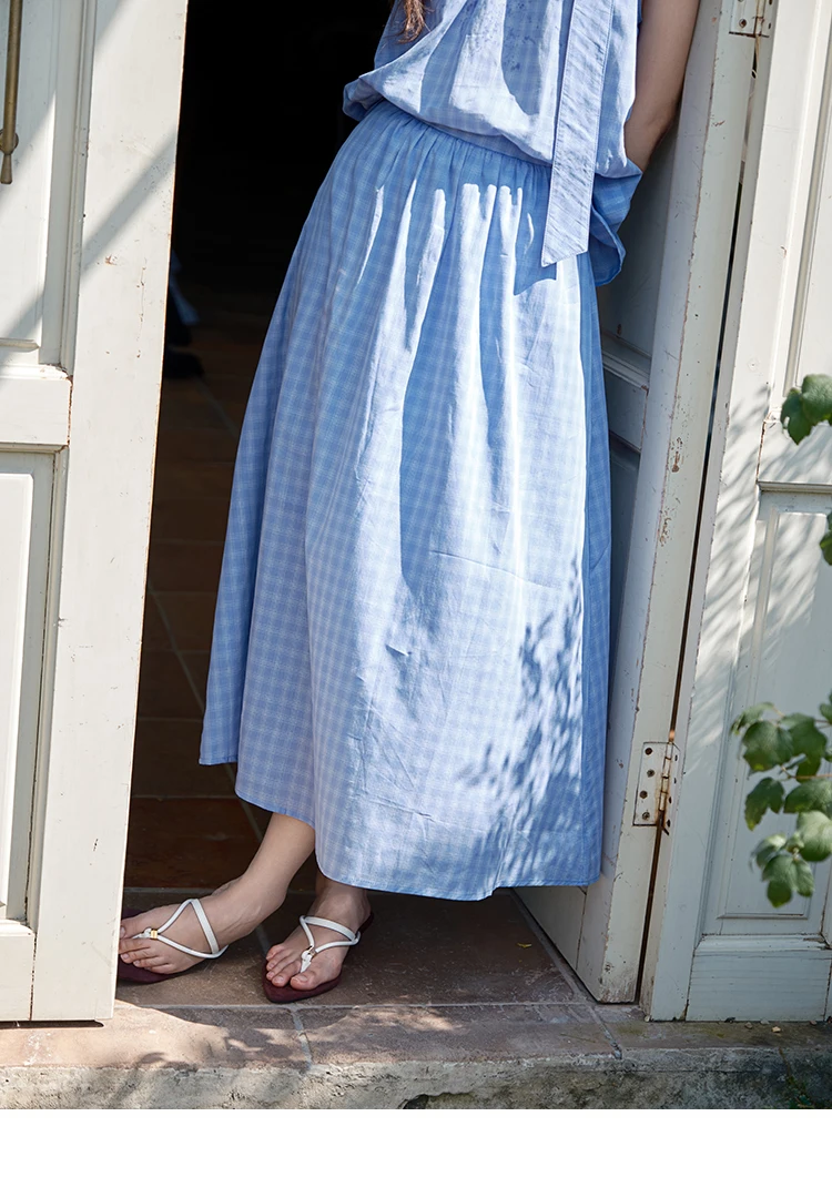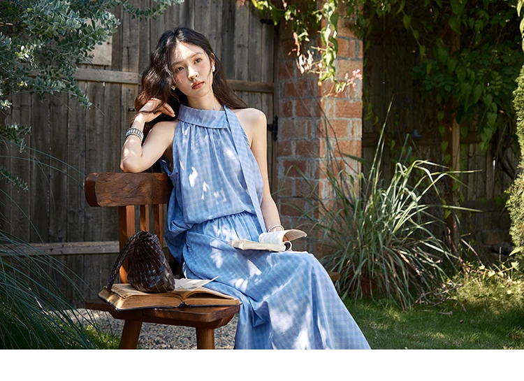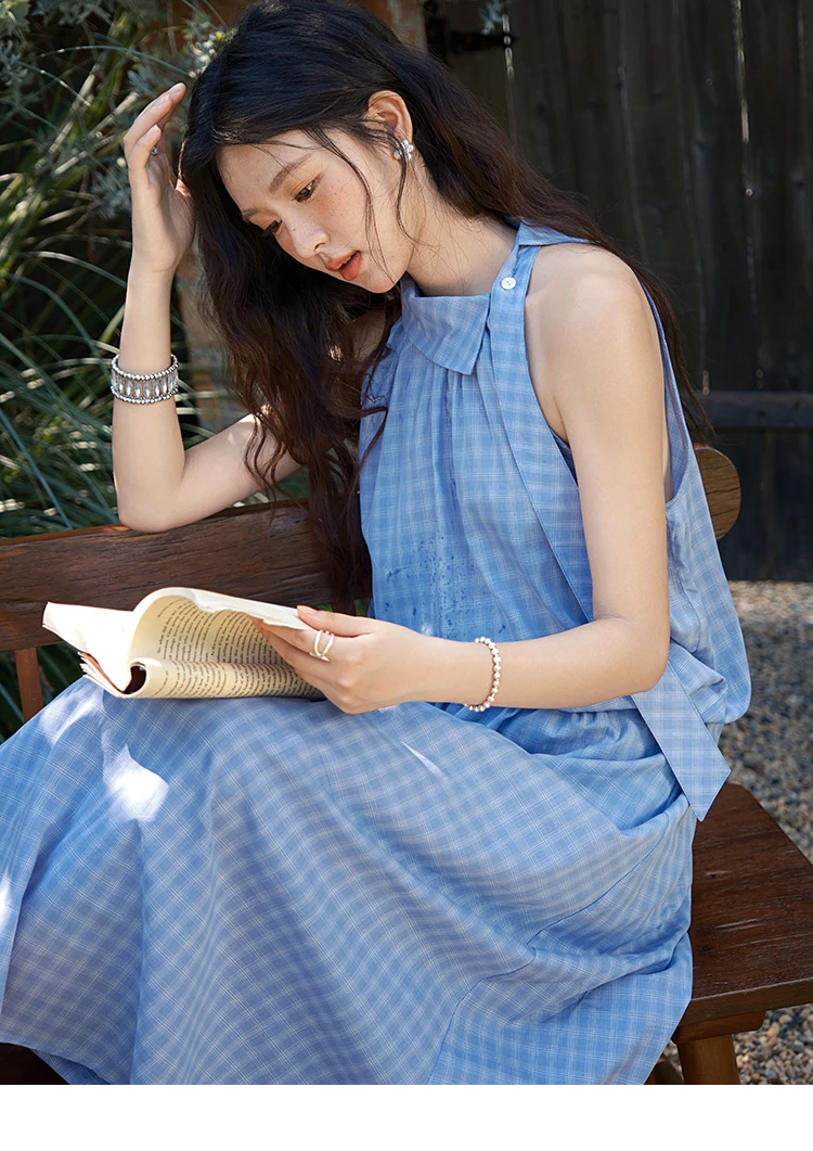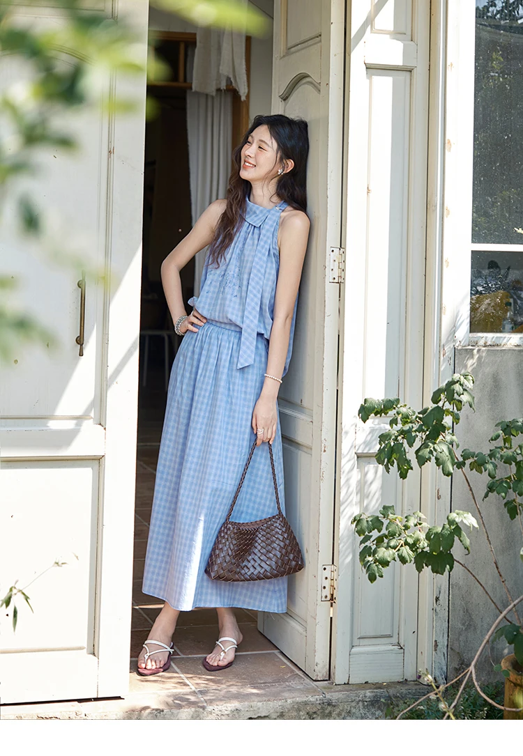 MISHOW Women's 2 Piece Set 2025 Summer Female Vacation Fashion Plaid Hanging Neck Button Top A-line Half Skirt Set MXE39T0711