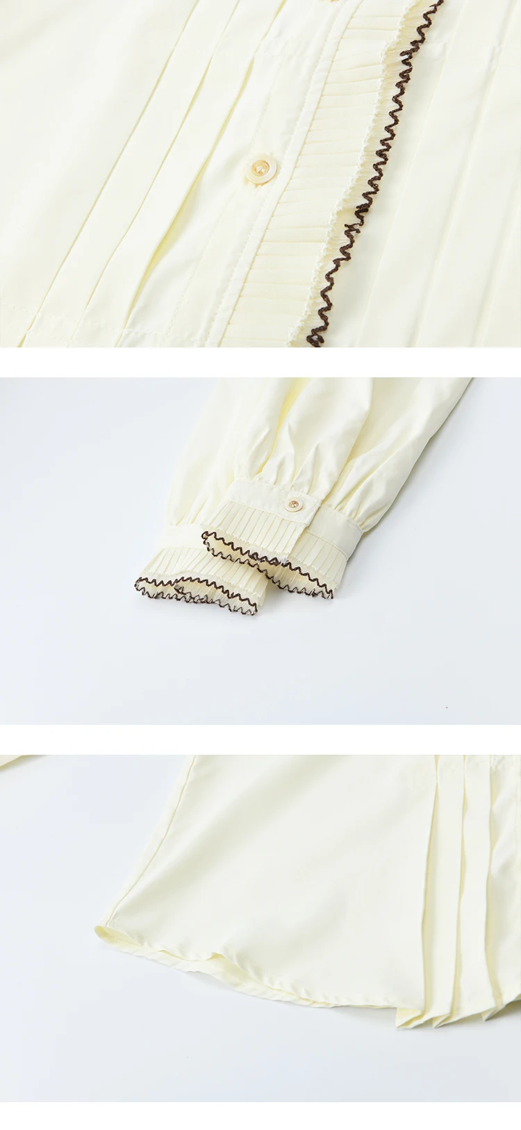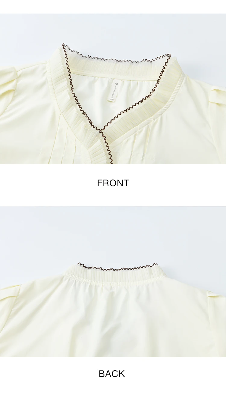 MISHOW Women's Apricot Retro Blouses 2025 Autumn V-neck Pleated Double-layer Lace Tops Lantern Sleeves Loose Blouse MXE46C2404