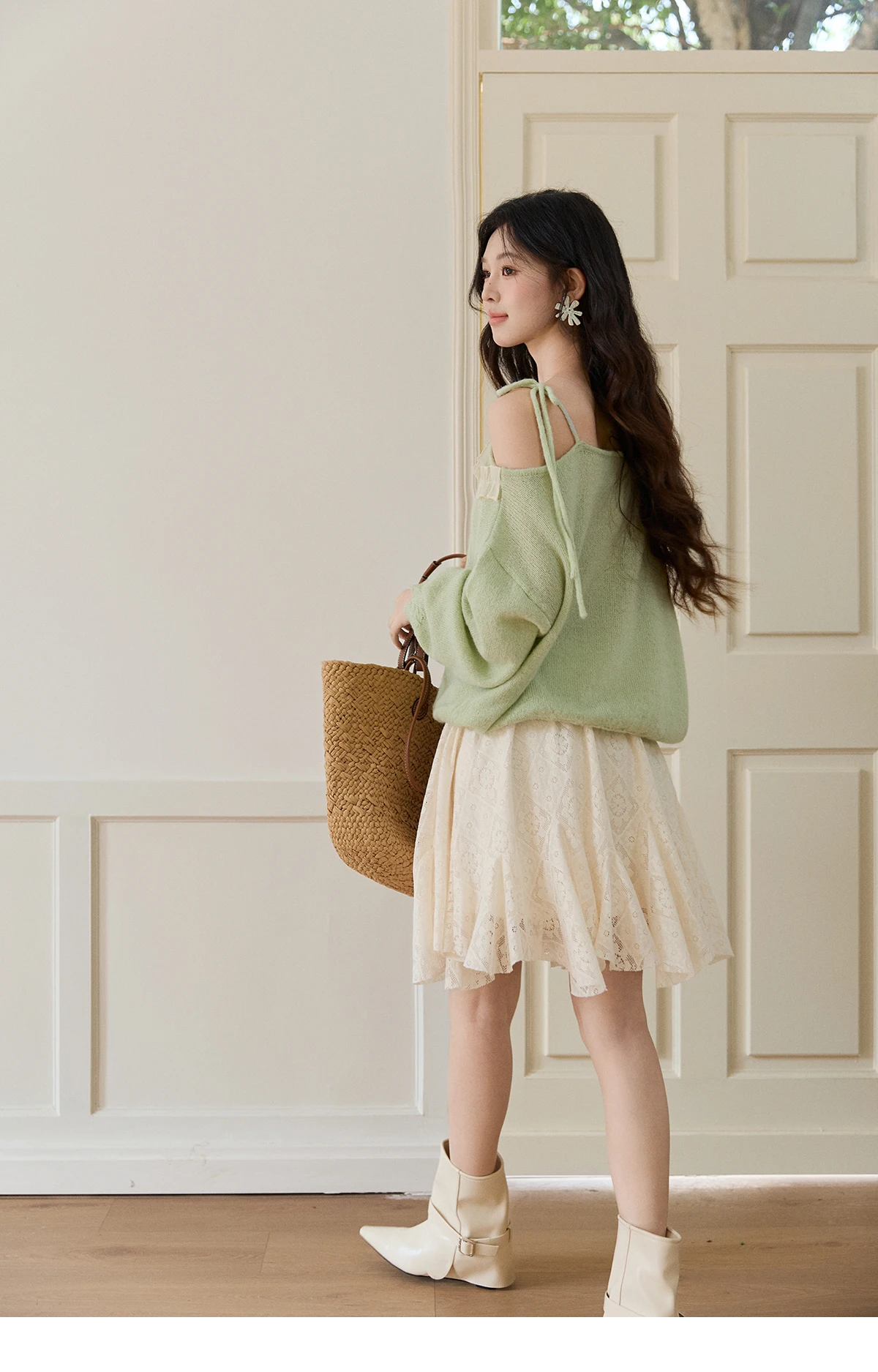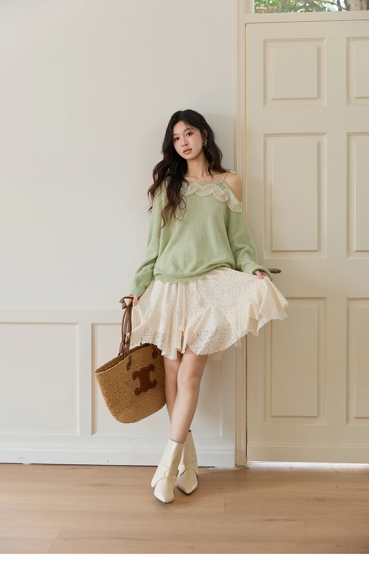 MISHOW Women's Beige Apricot Lace Midi Skirt 2026 Spring High Waist Flowy A-Line Skirts Irregular Romantic Skirt MXF108B0768