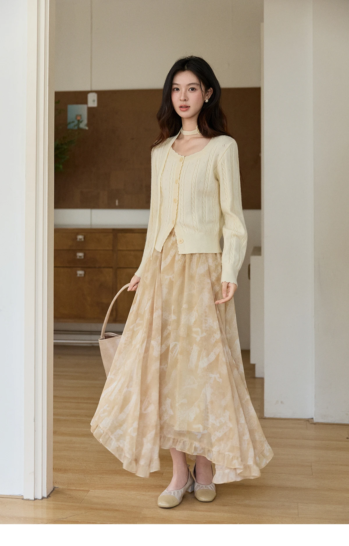 MISHOW Women's Beige Chiffon Maxi Skirt 2026 Spring Floral Print High Waist Ruffled Asymmetrical Casual Long Skirts MXF11B2463