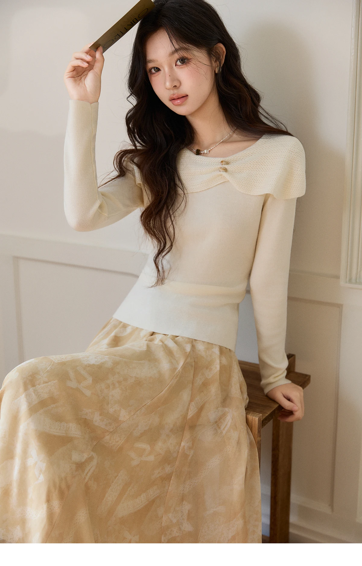 MISHOW Women's Beige Wool Blend Knit Sweater 2026 Spring Asymmetrical Collar Long Sleeve Top Slim Casual Thin Sweater MXF11Z2918