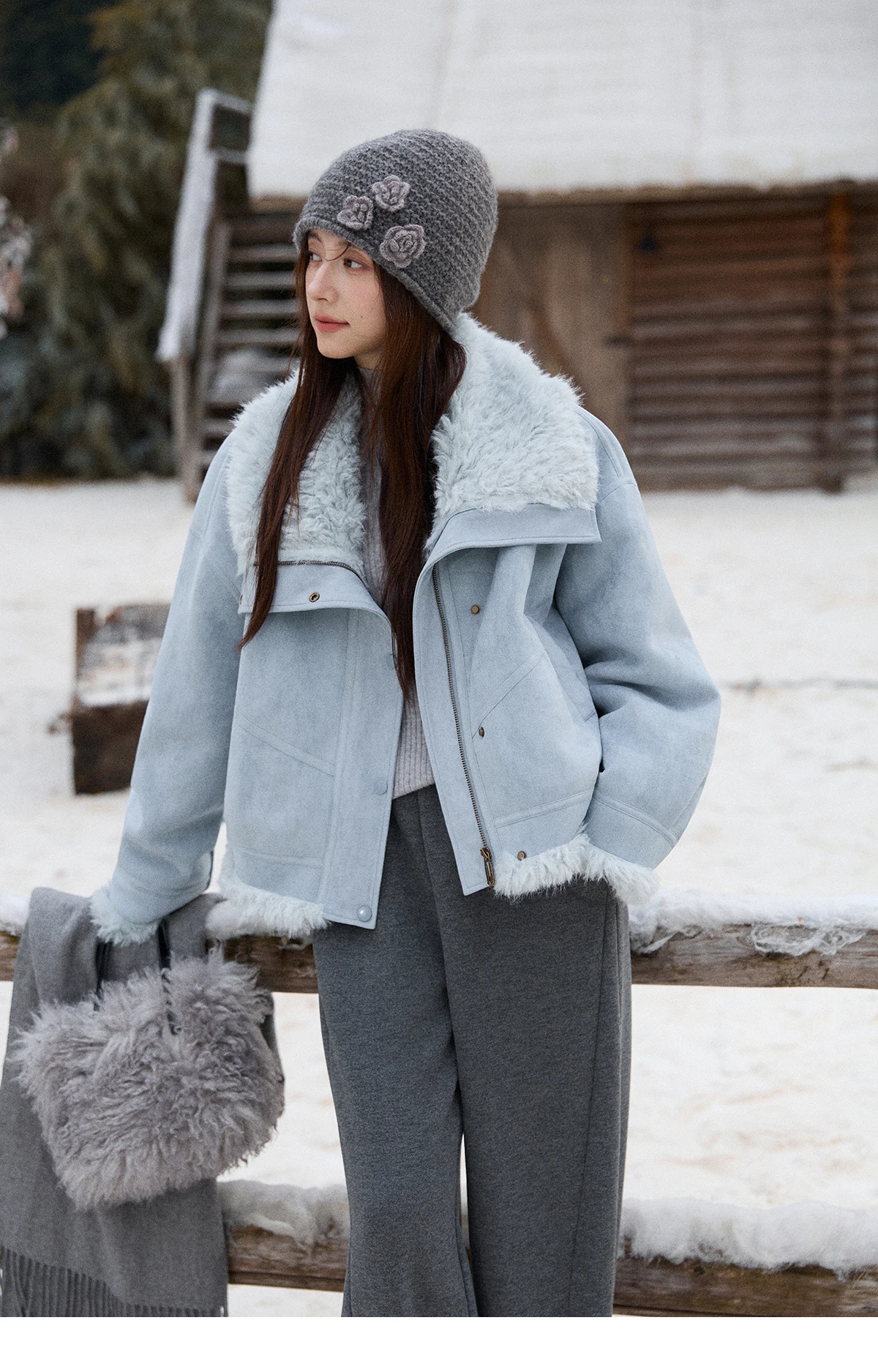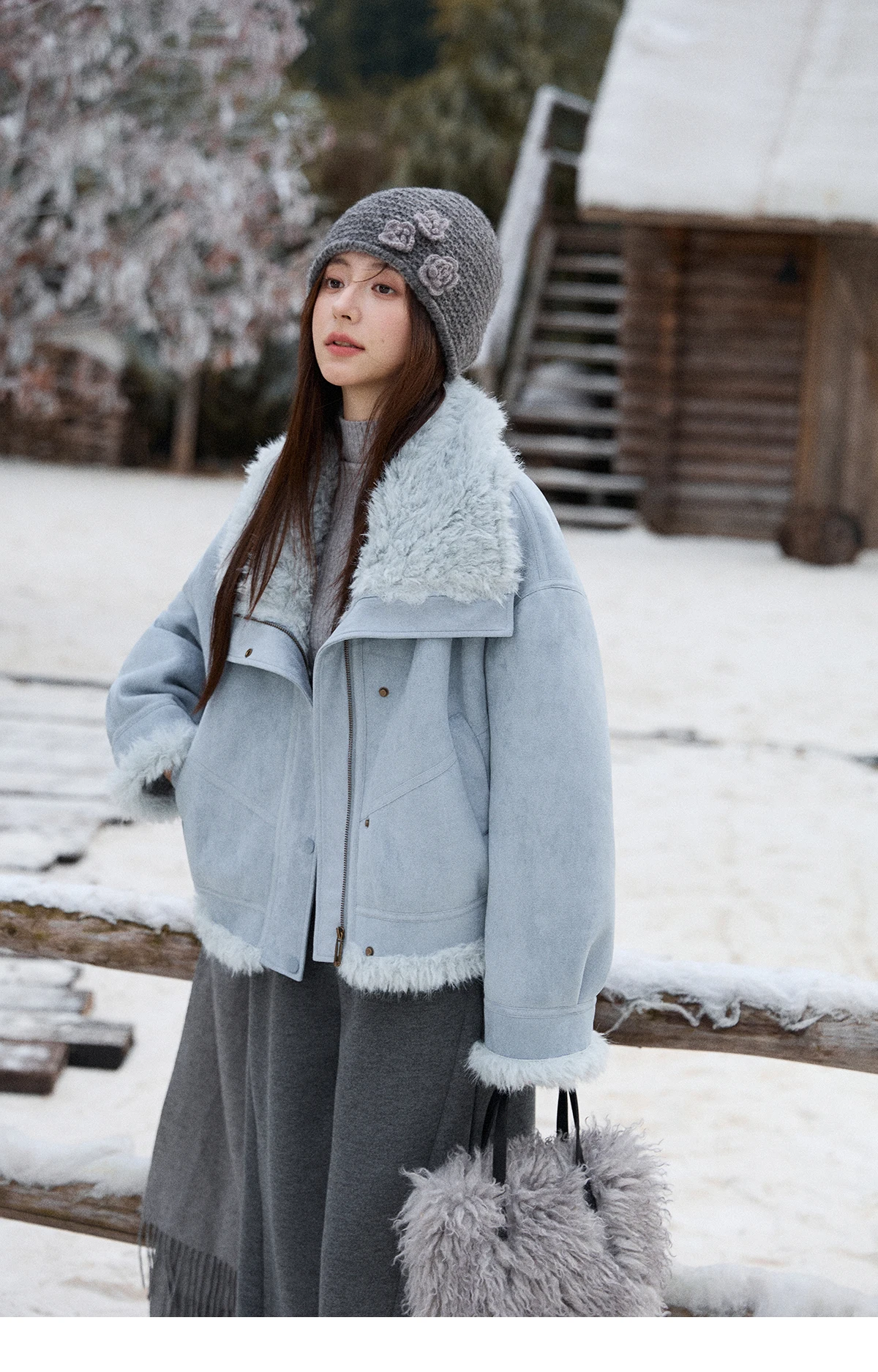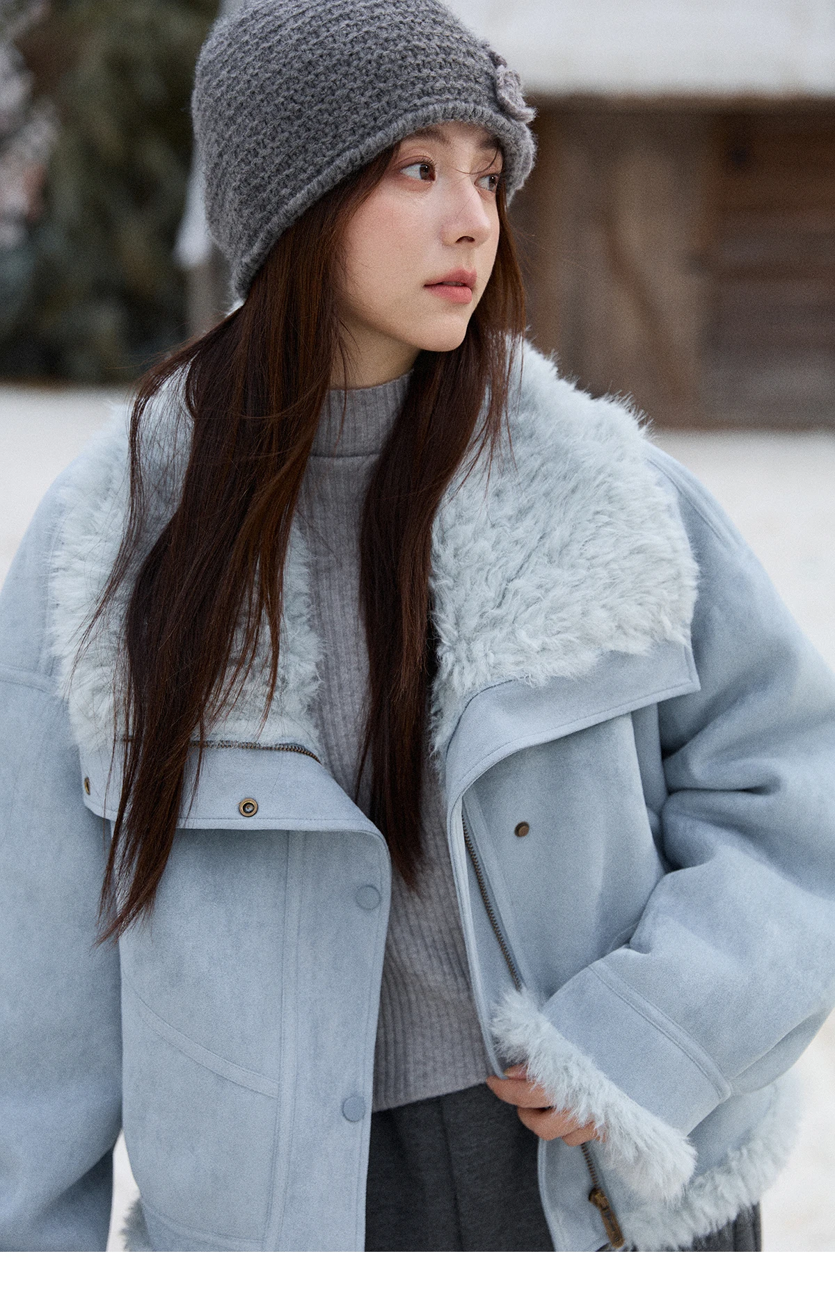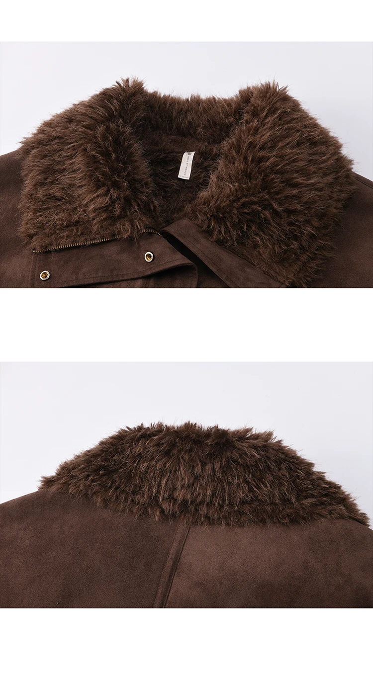 MISHOW Women's Blue Jacket 2025 Winter Blue Plush Turn-down Collar Zip-up Coat Fashion Casual Warm Loose Coat Woman MXE87W0917