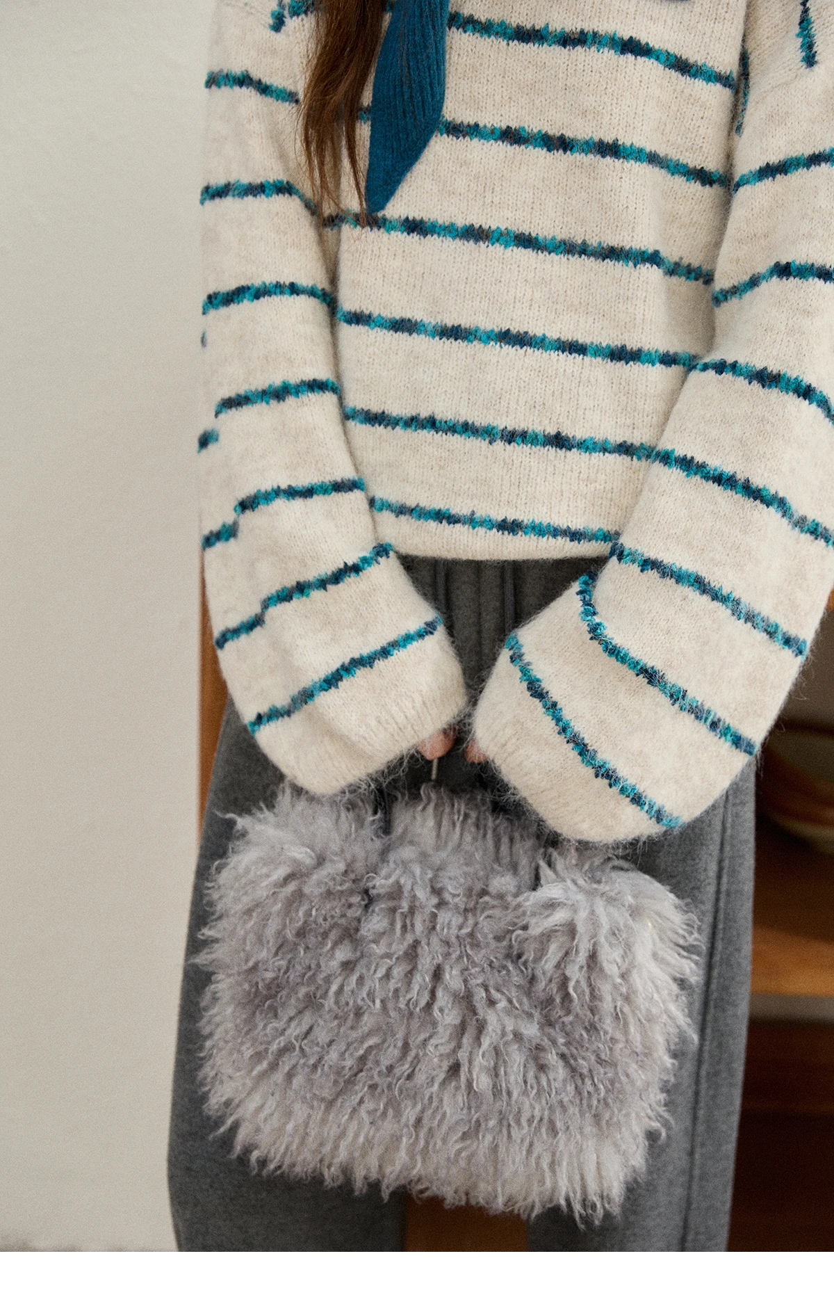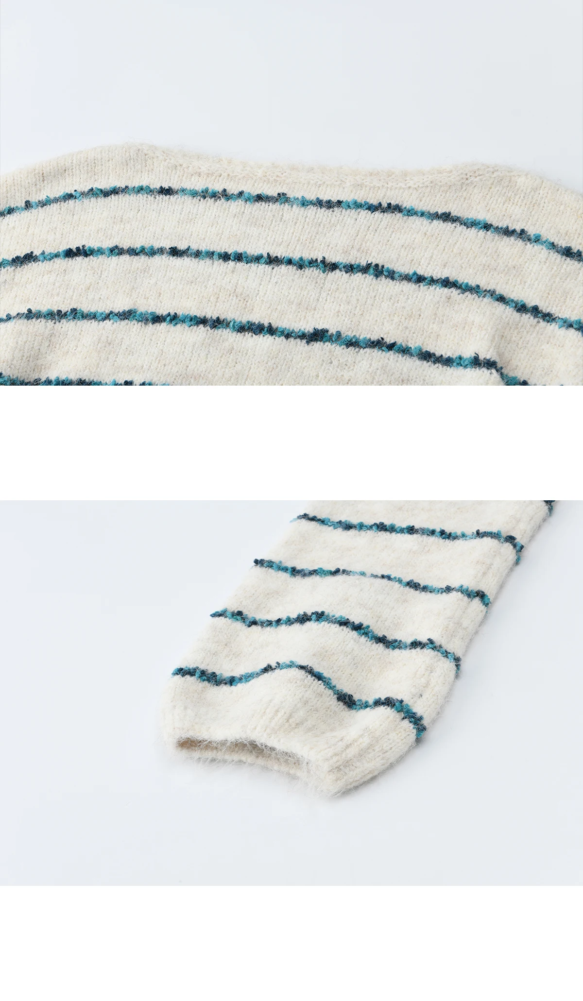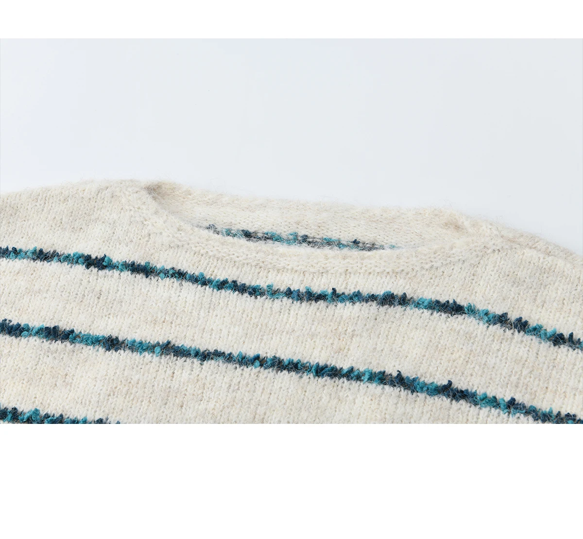 MISHOW Women's Blue Striped Sweater 2025 New Alpaca Wool Shawl Scarf Set Retro Loose Casual Knit Top Winter Clothes MXE90Z2821
