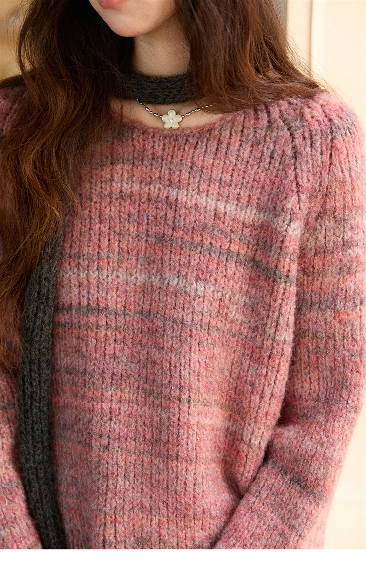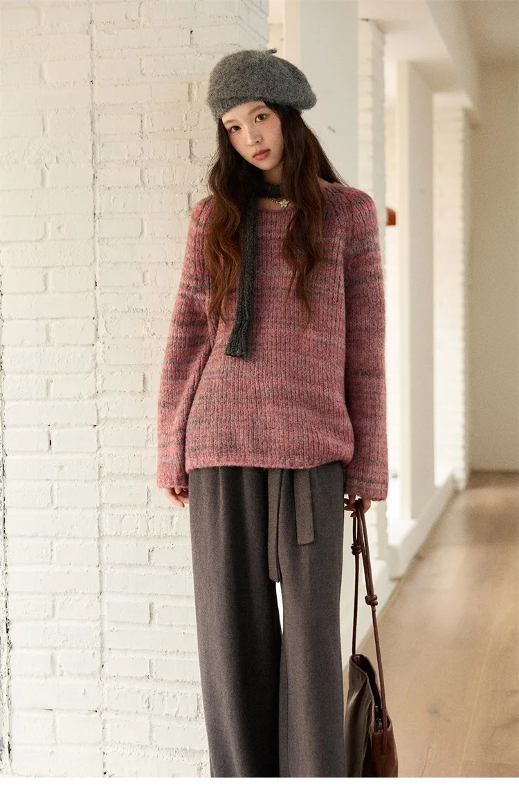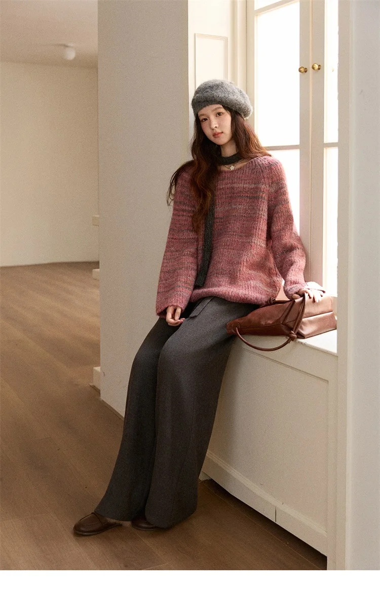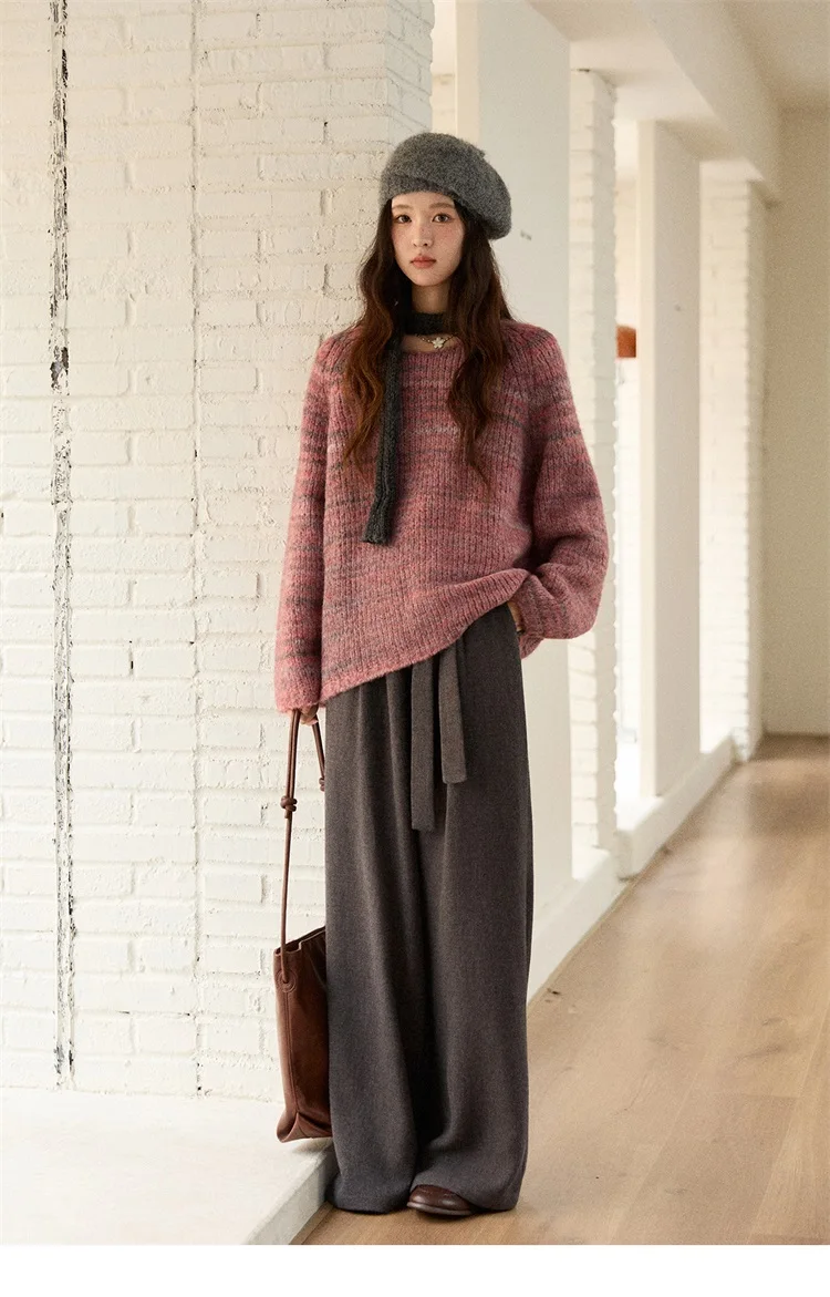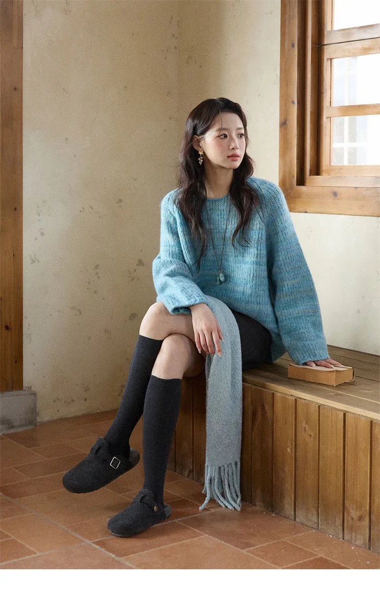 MISHOW Women's Blue Sweater 2025 Winter Fashion Loose Crew Neck Long Sleeve Pullover Pullovers Soft Versatile Top MXE86Z2733