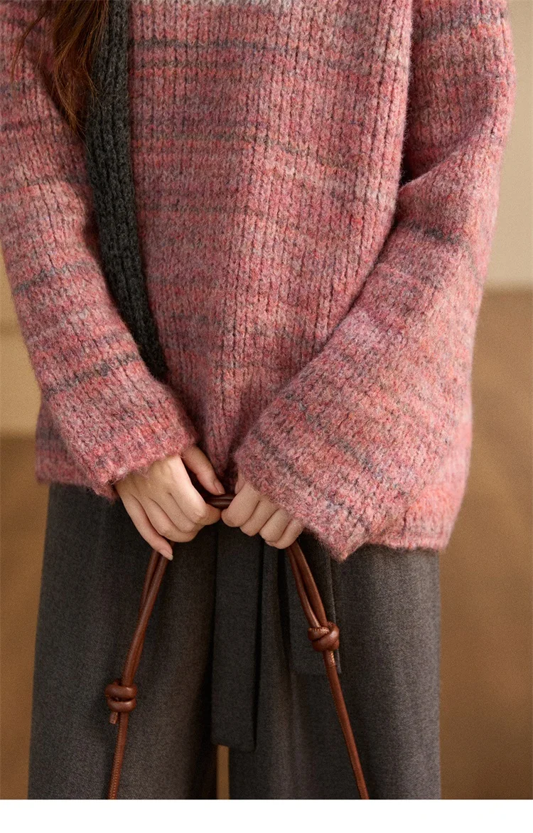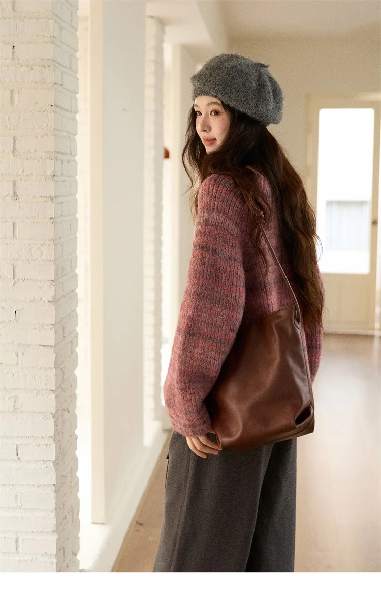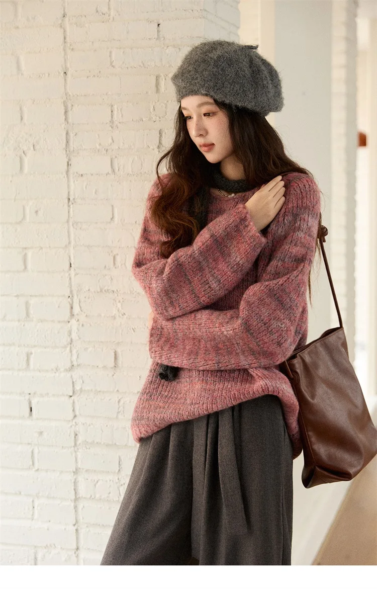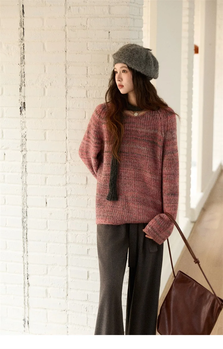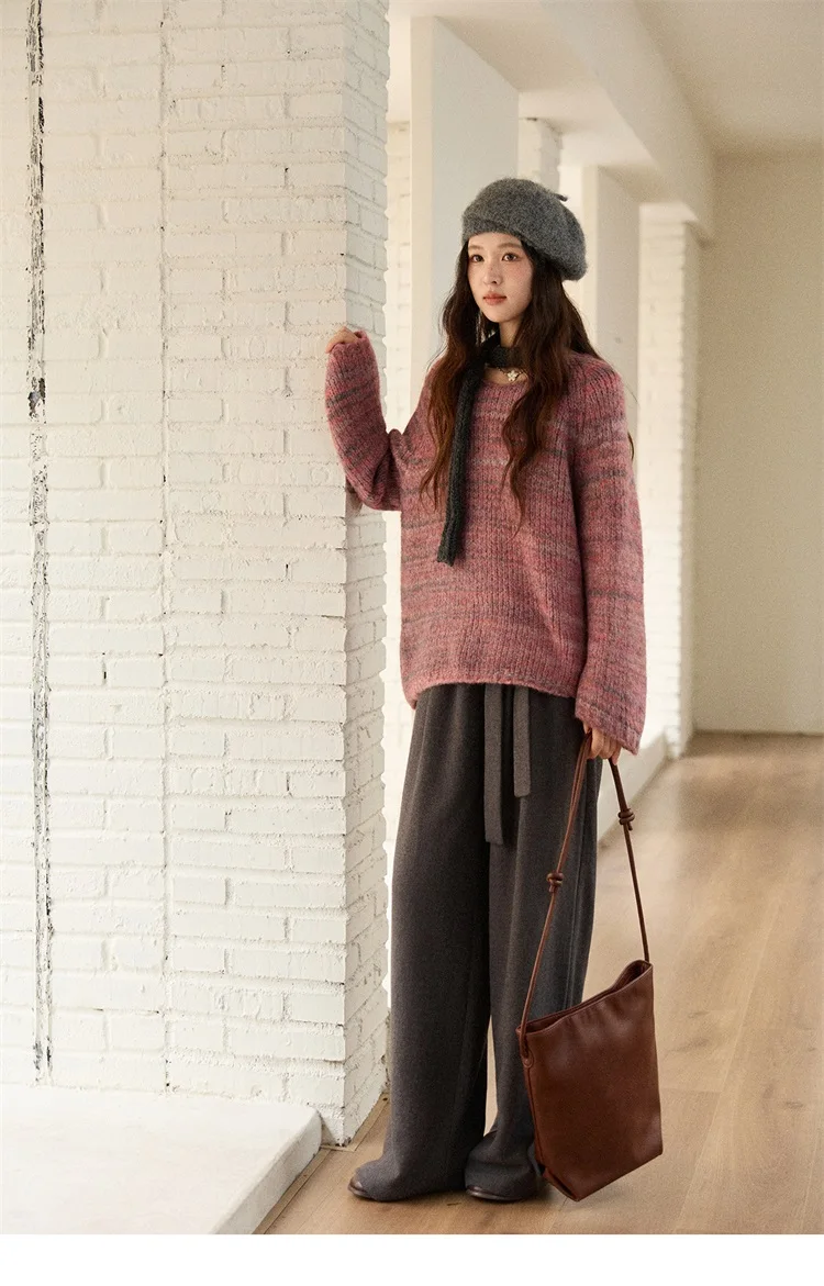 MISHOW Women's Blue Sweater 2025 Winter Fashion Loose Crew Neck Long Sleeve Pullover Pullovers Soft Versatile Top MXE86Z2733
