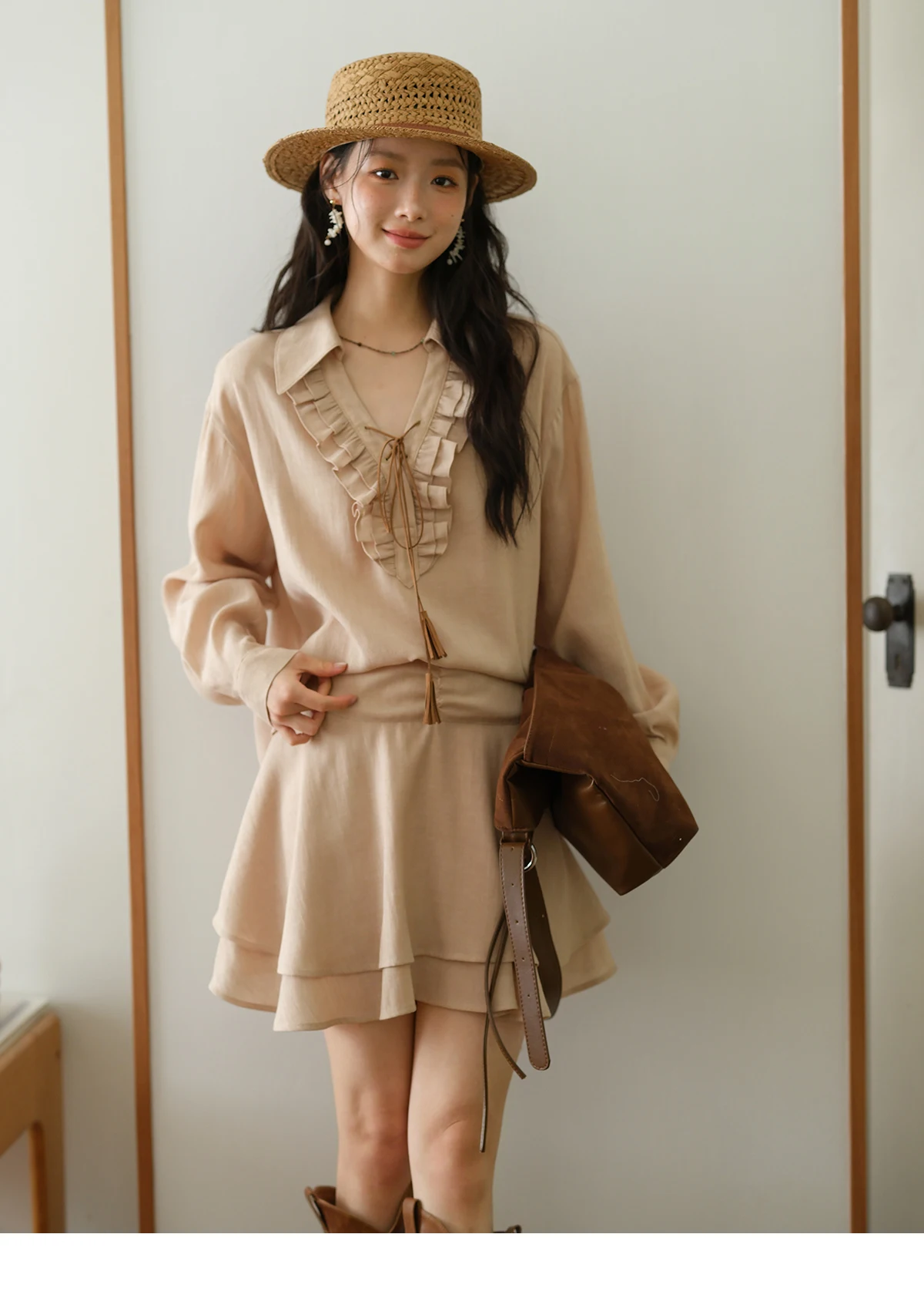 MISHOW Women's Bohemian Skirt Set Autumn Lyocell Blend V Neck Ruffle Suede Tassels Tie Top Back Elastic Waist Skirt MXE43T0727