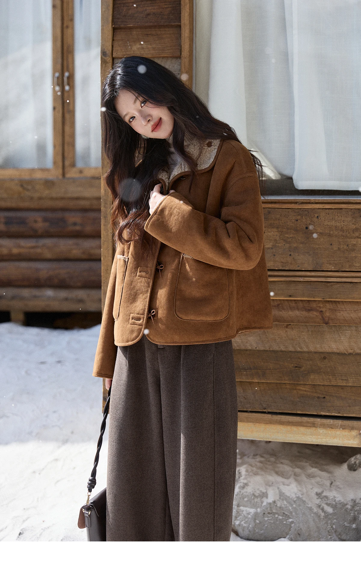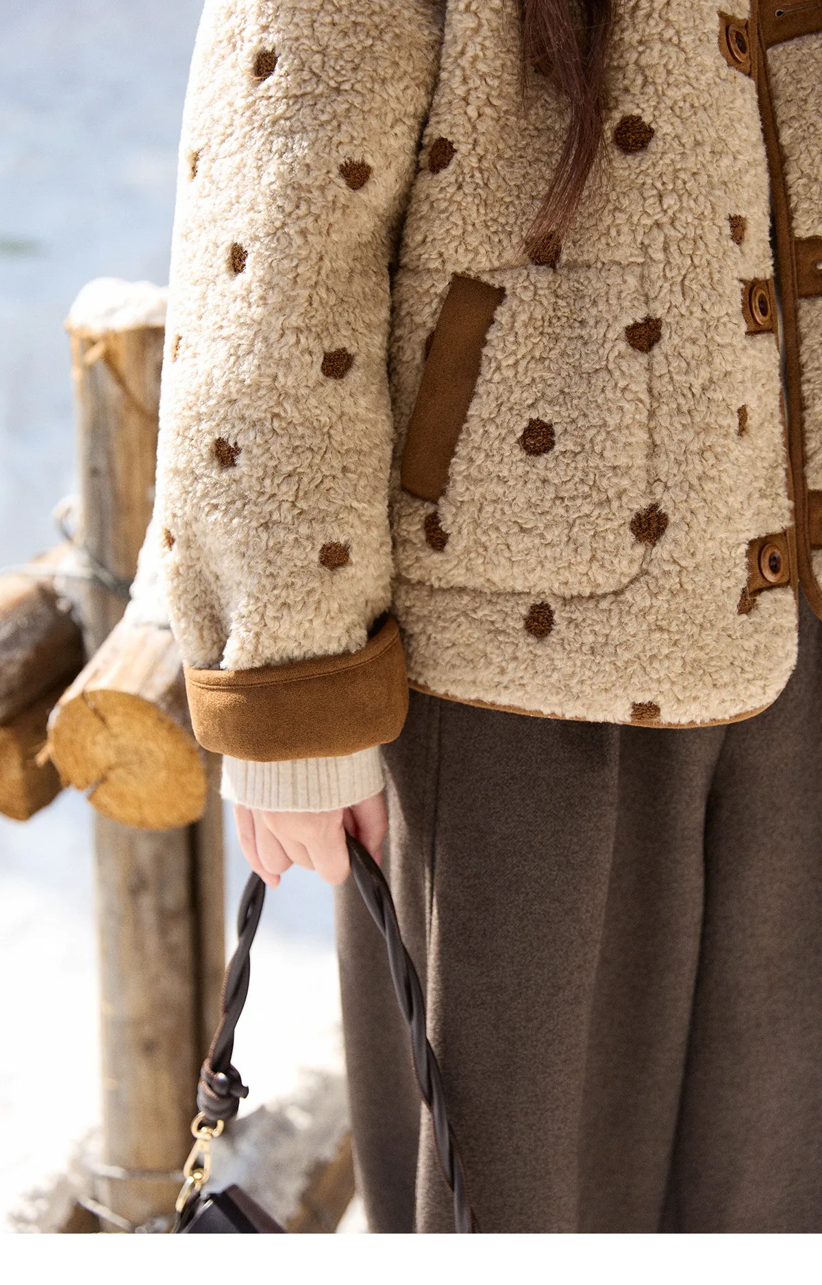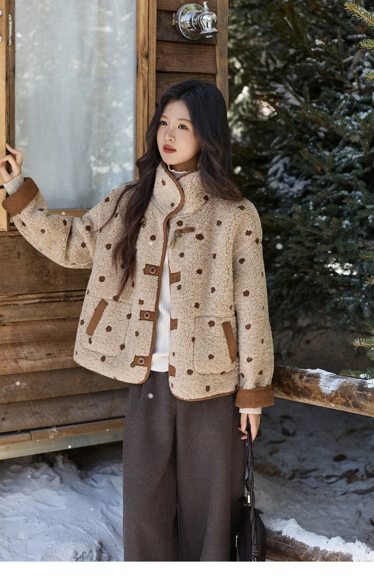 MISHOW Women's Brown Reversible Shearling Coat 2025 Winter Suede Polka Dot Lapel Coats Fleece Thick Warm Short Jacket MXE93W1012