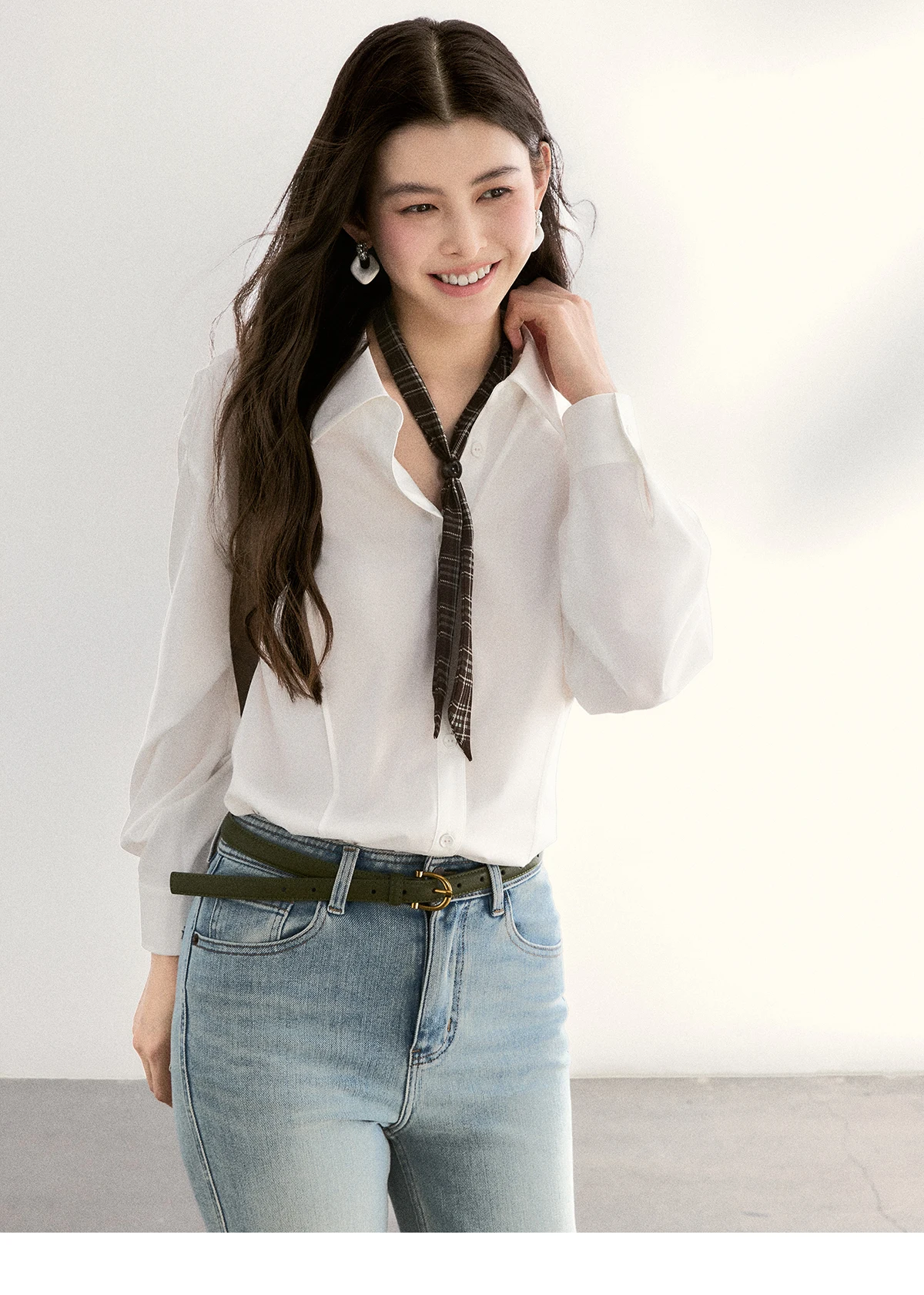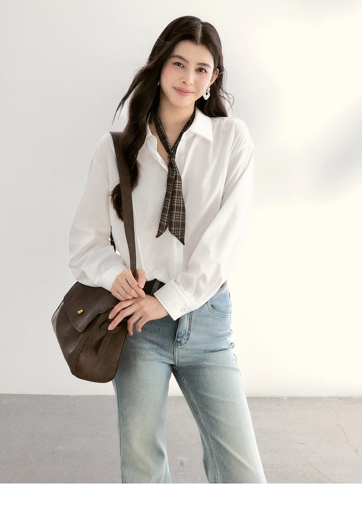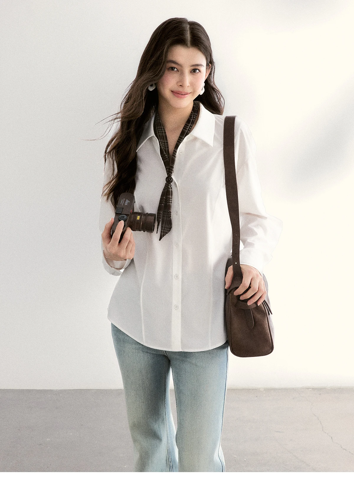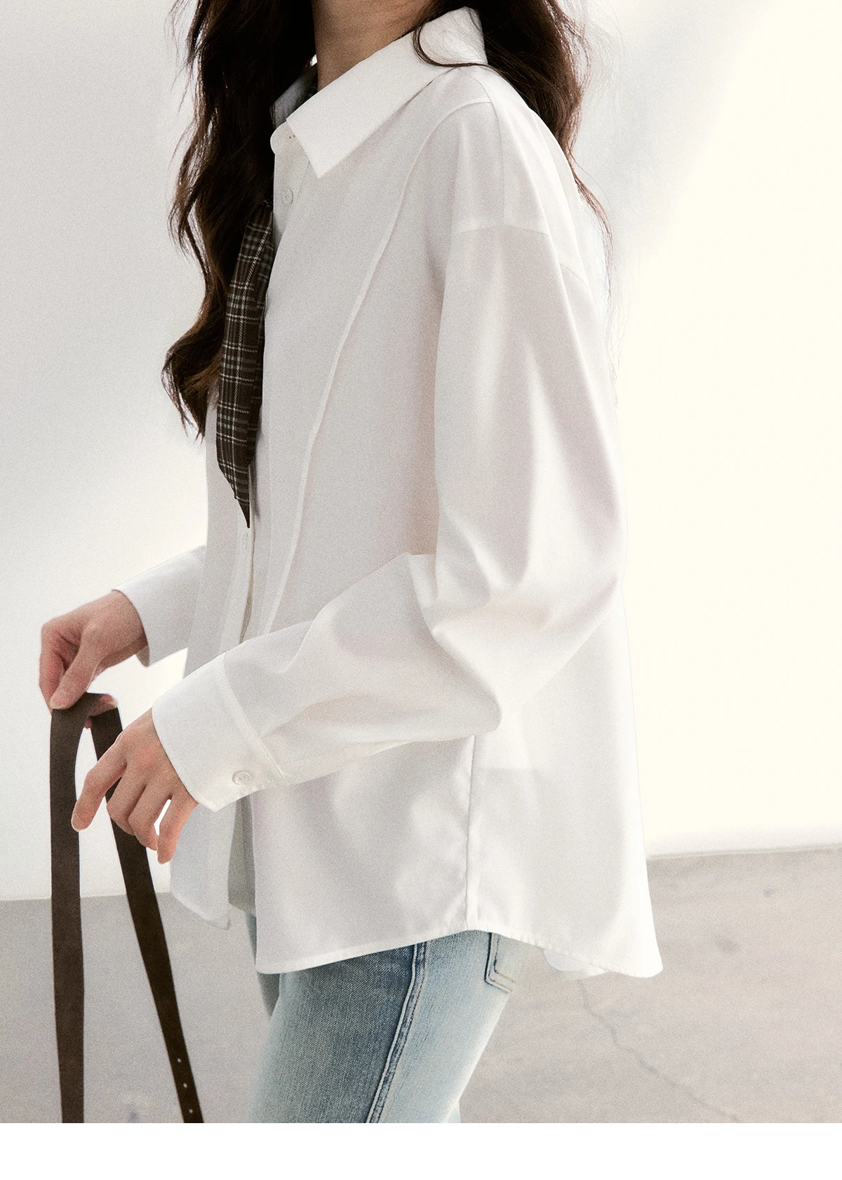 MISHOW Women's Casual Loose Shirt with Plaid Scarf 2026 Spring Lapel Tops Versatile Long Sleeve Shirts Office Lady MXF108C0815
