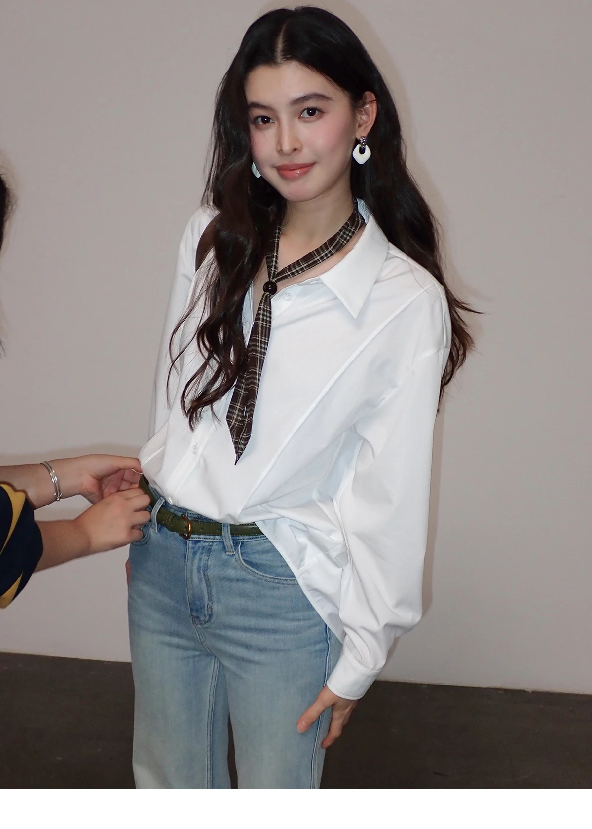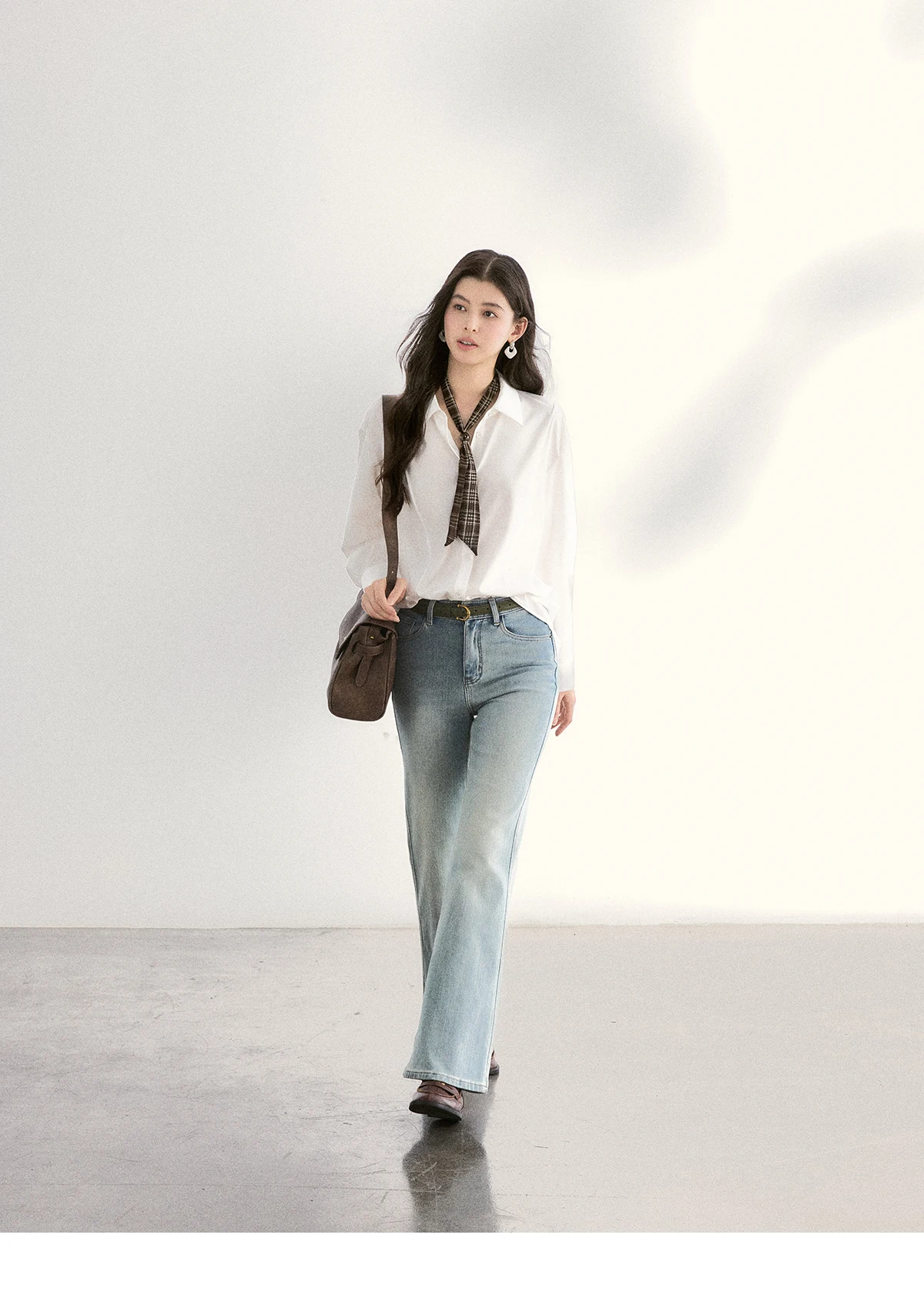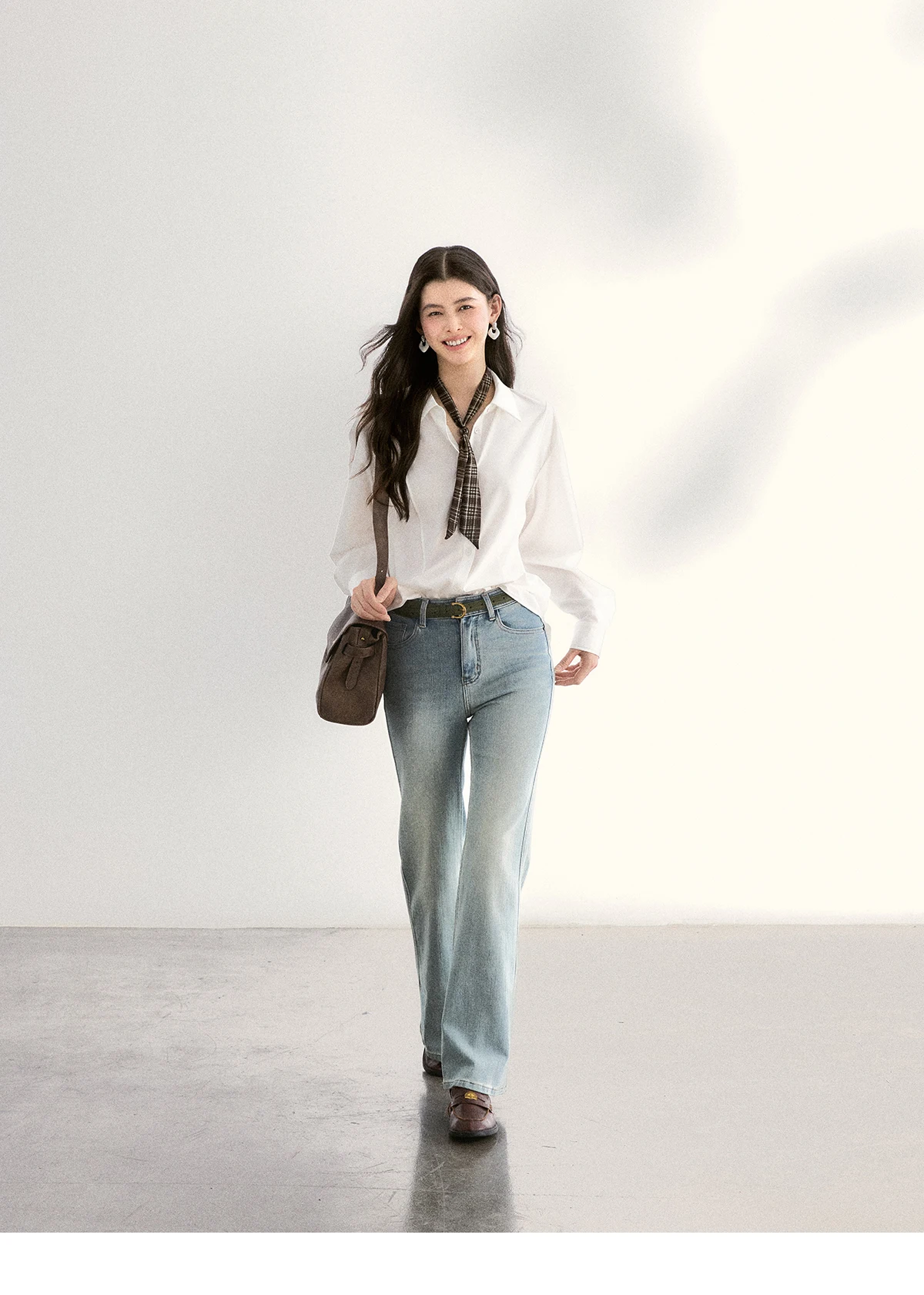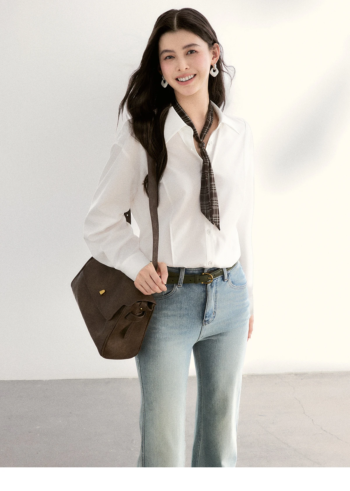 MISHOW Women's Casual Loose Shirt with Plaid Scarf 2026 Spring Lapel Tops Versatile Long Sleeve Shirts Office Lady MXF108C0815