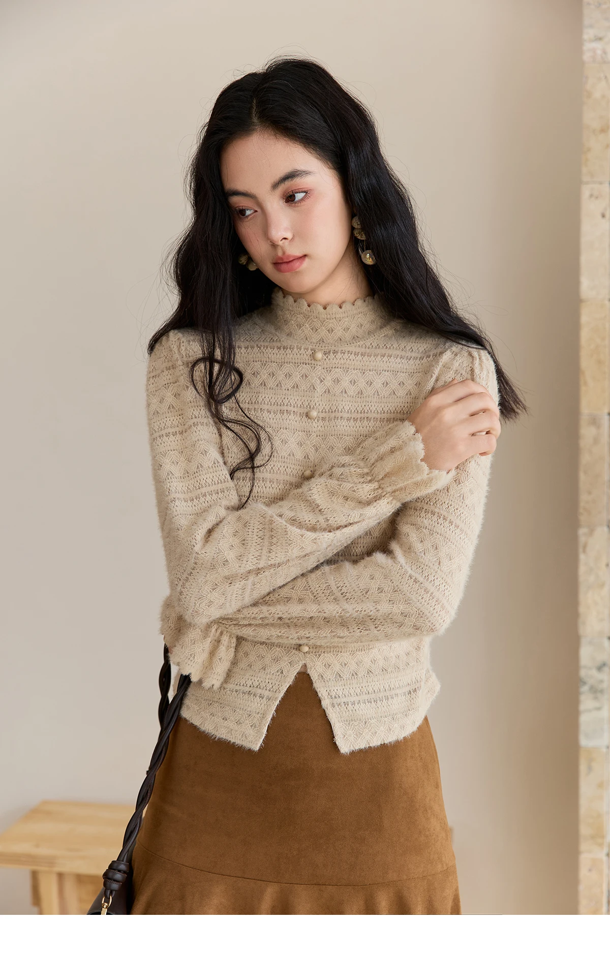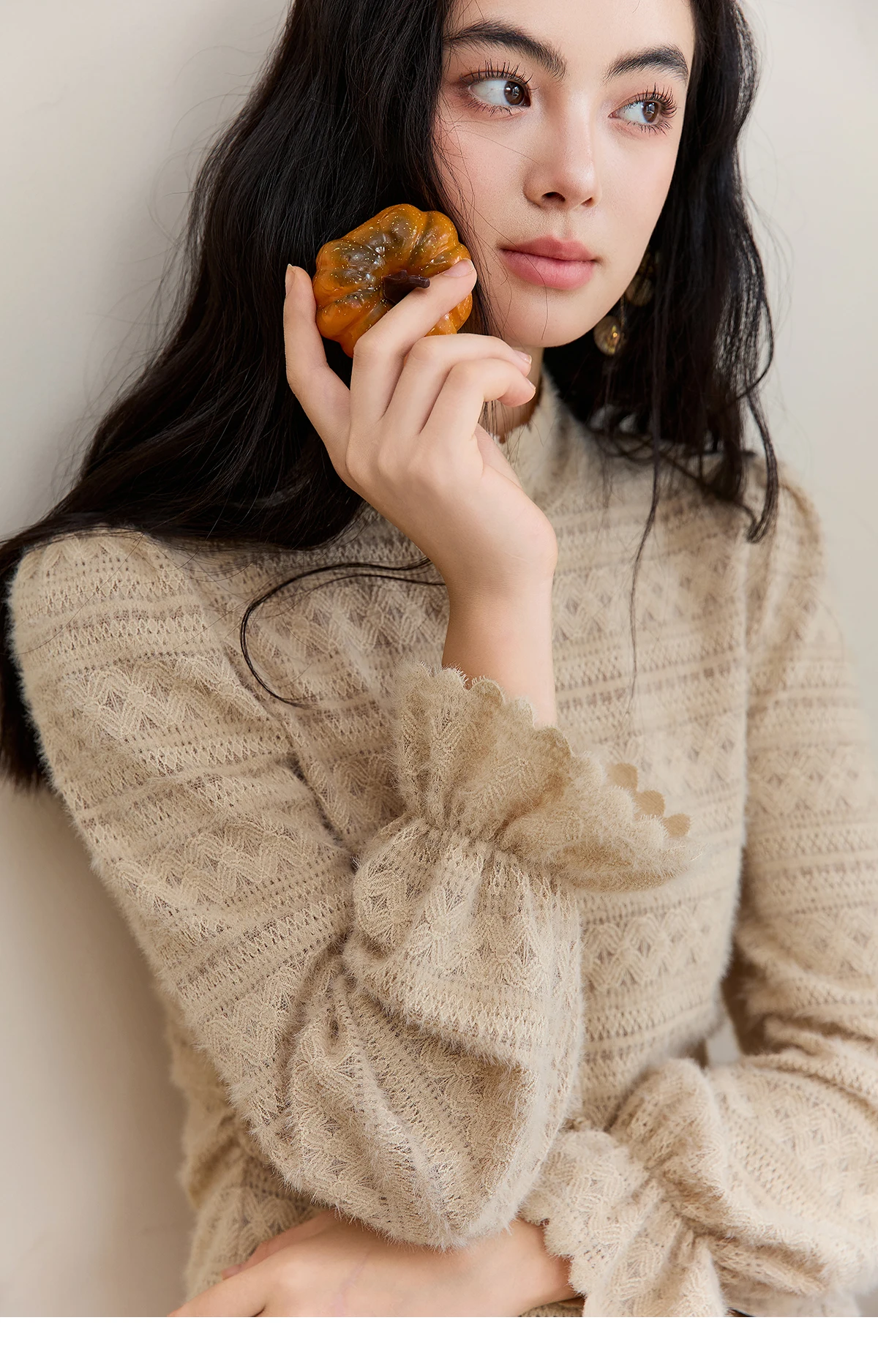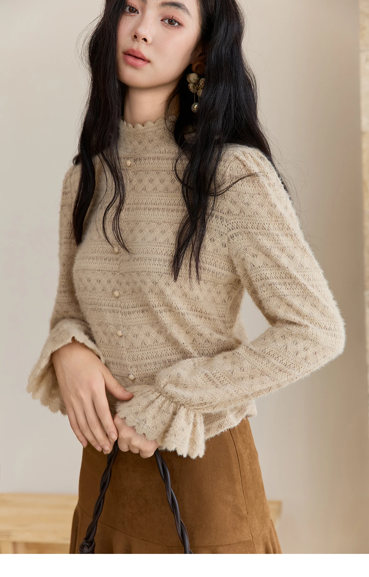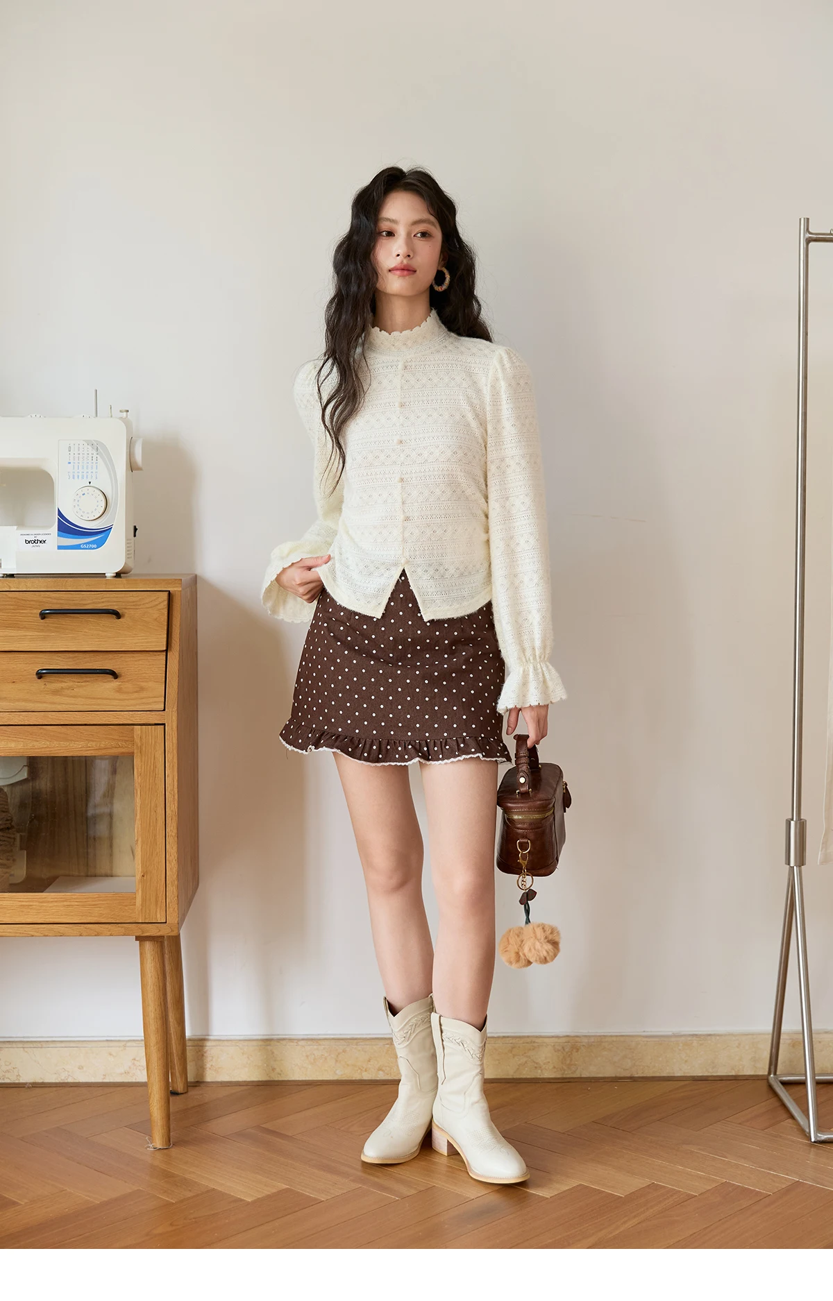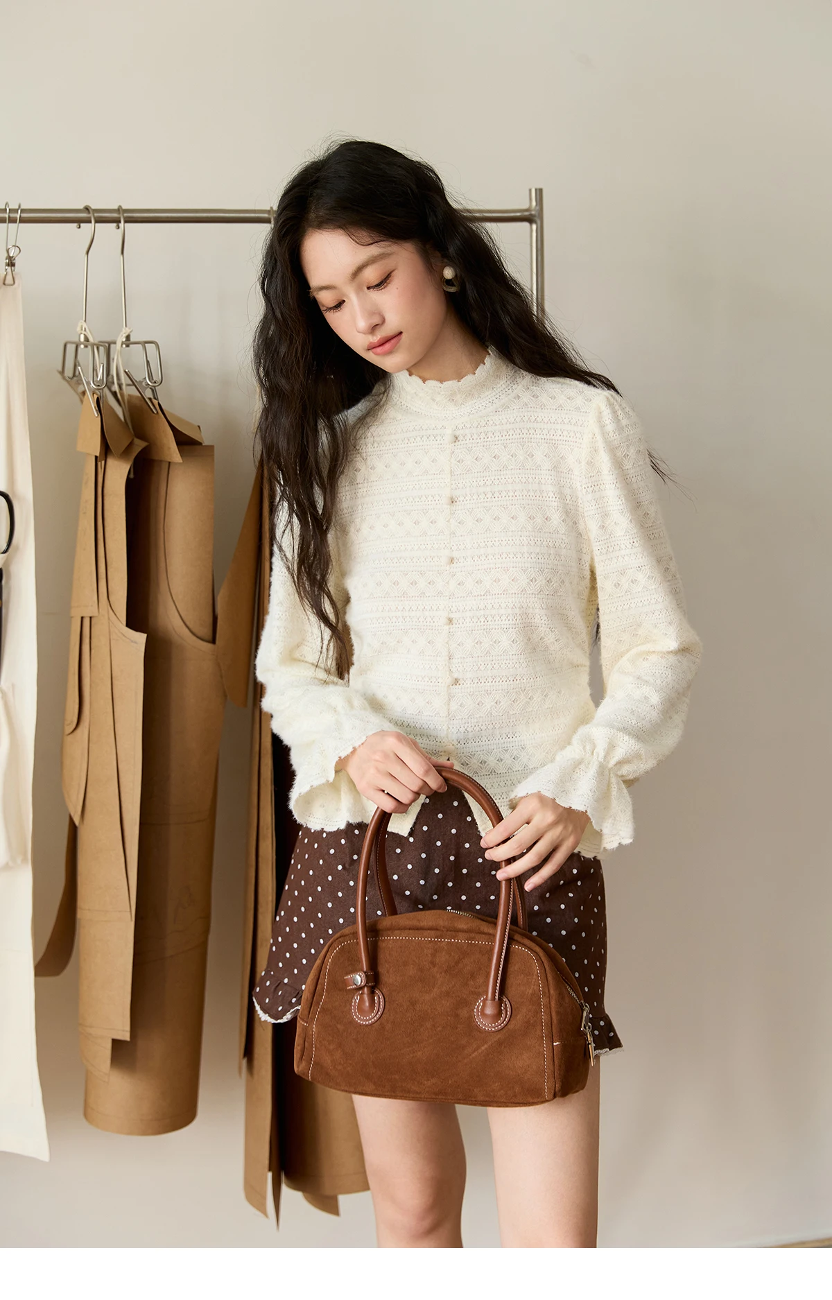 MISHOW Women's Casual Shirt 2025 Autumn Design Sense Elegant Lace Shirt New Half-high Collar Waist Slit Slim Tops MXE48X2501