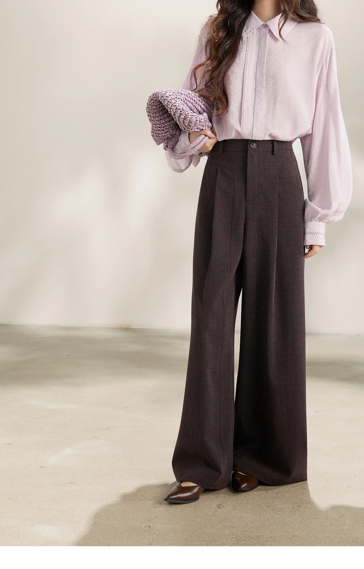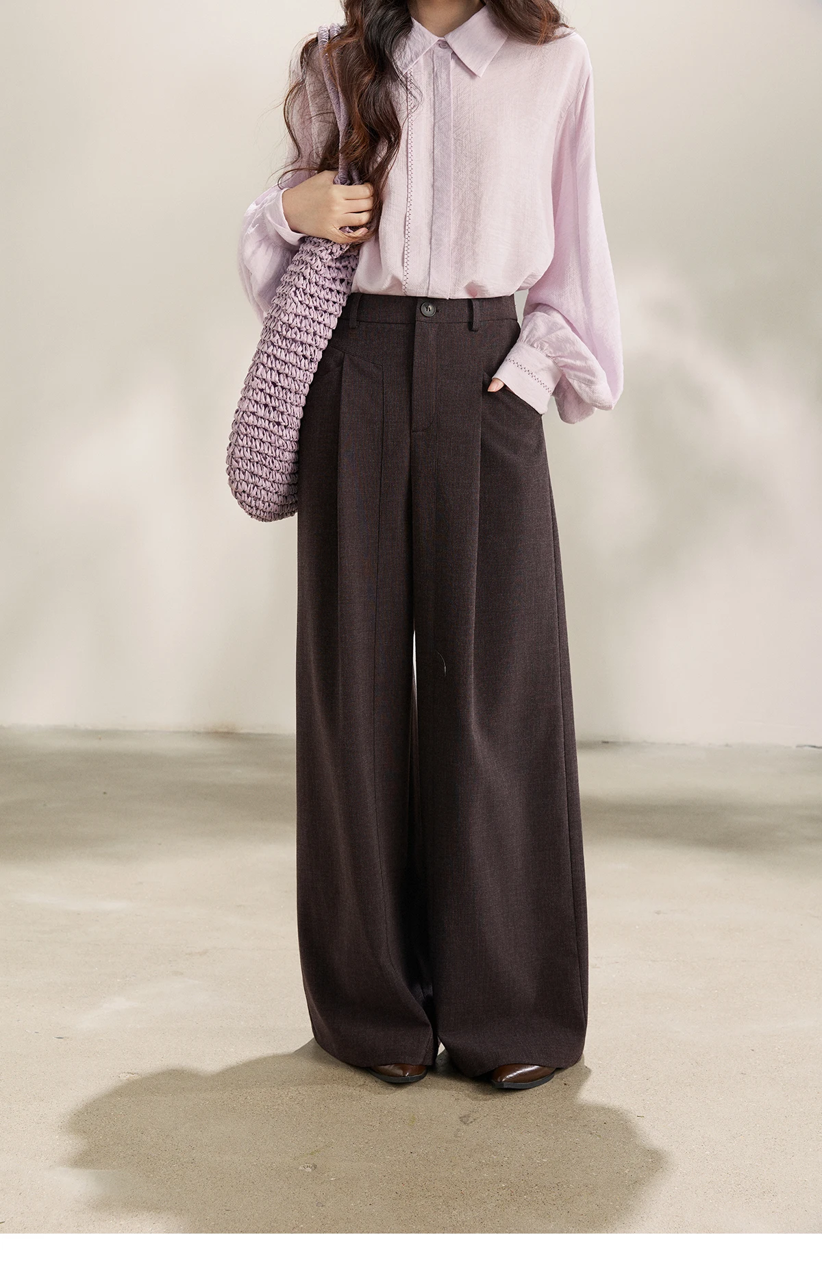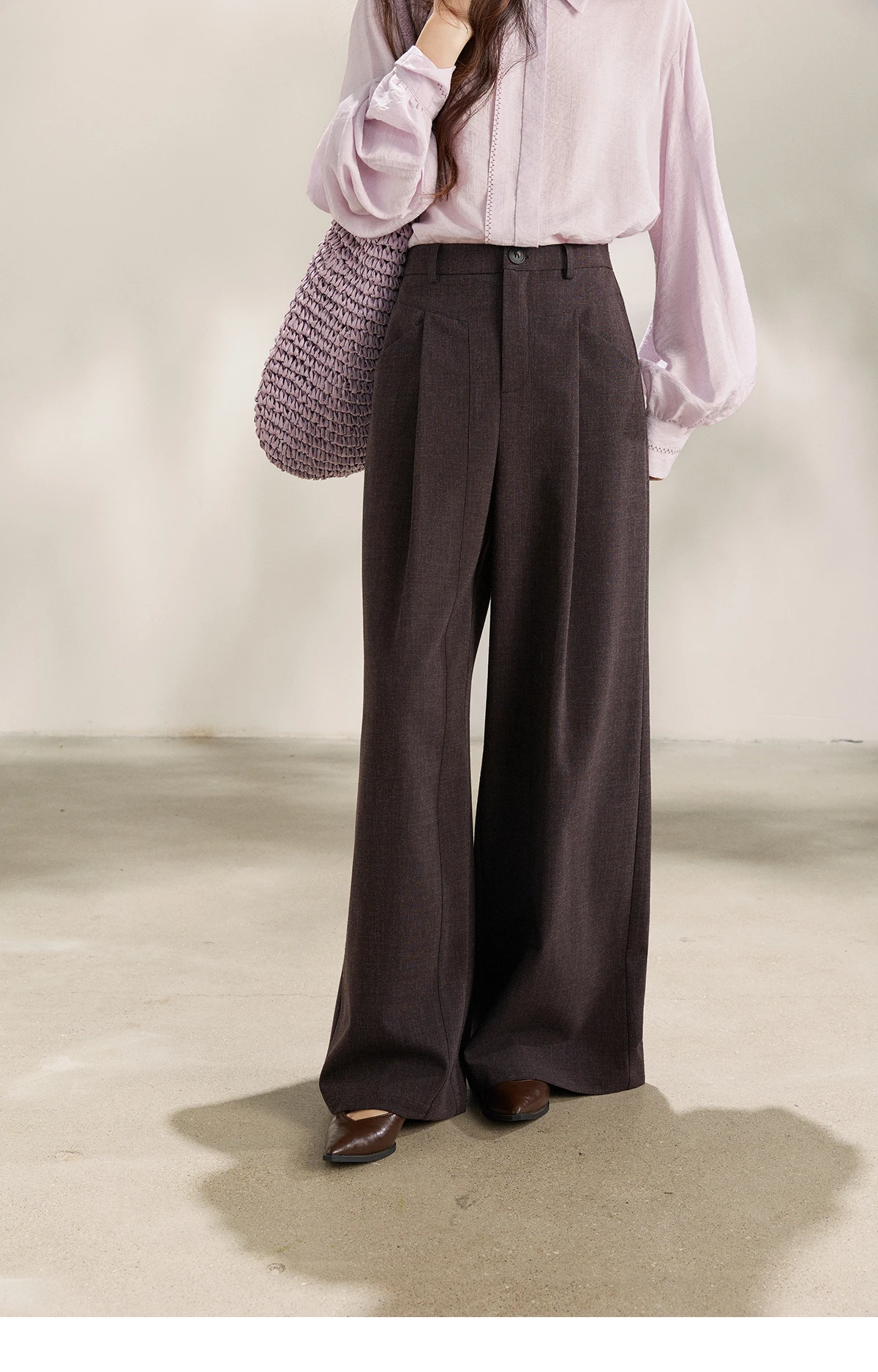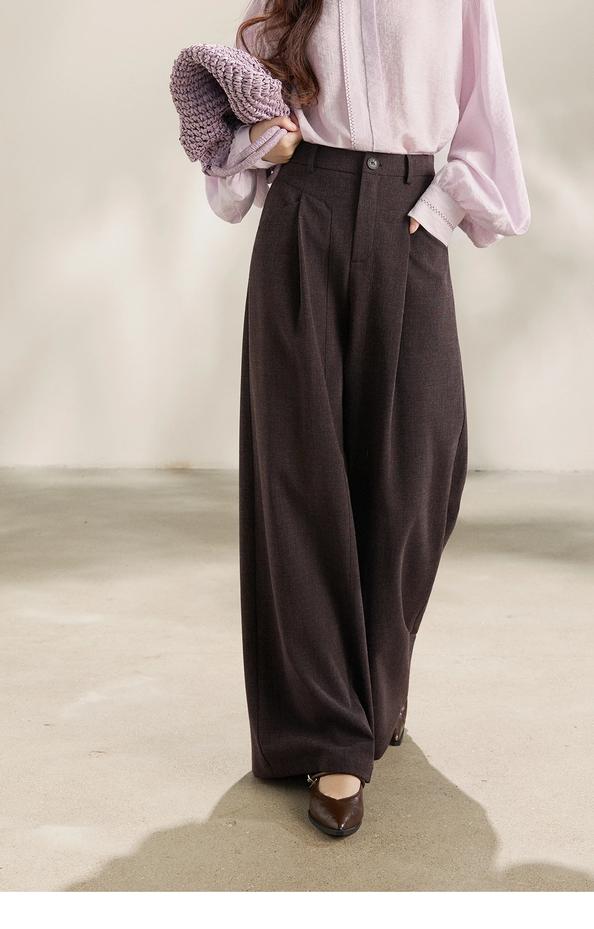 MISHOW Women's Dark Purple Wide Leg Pants 2026 Spring High Waist Pleated Pants Back Elastic Waist Casual Trousers MXF13K1204