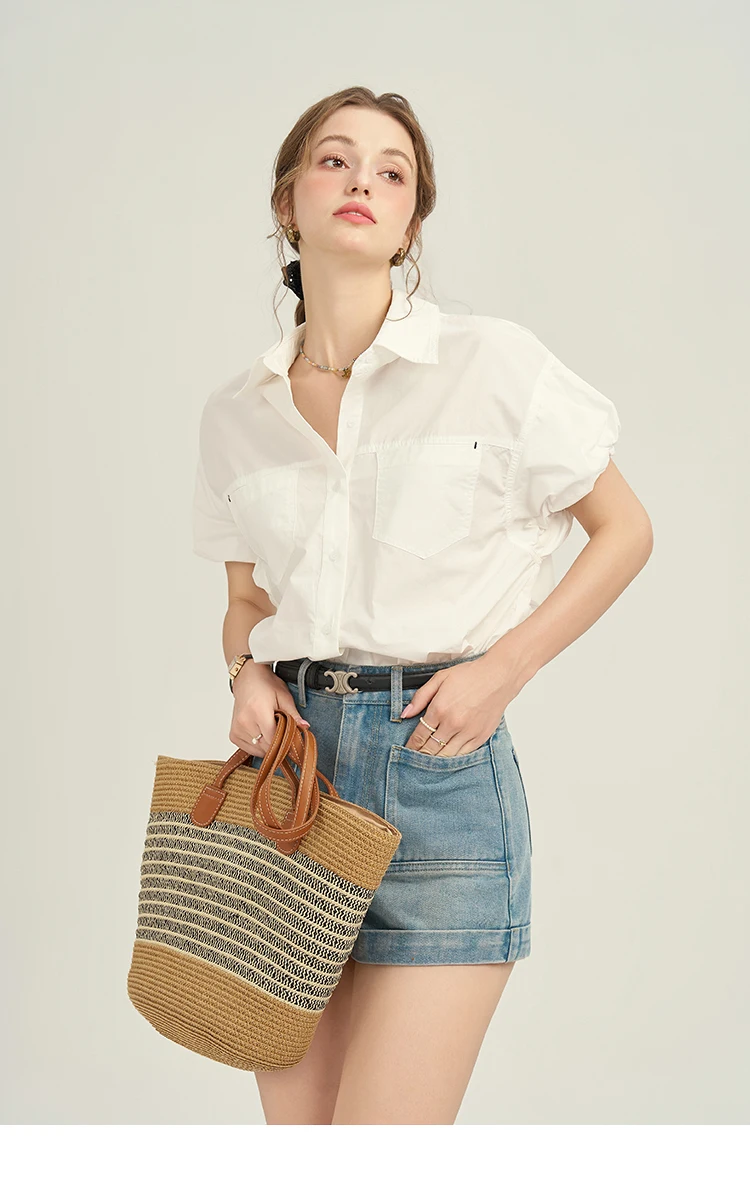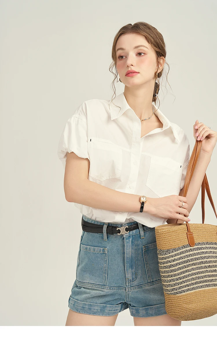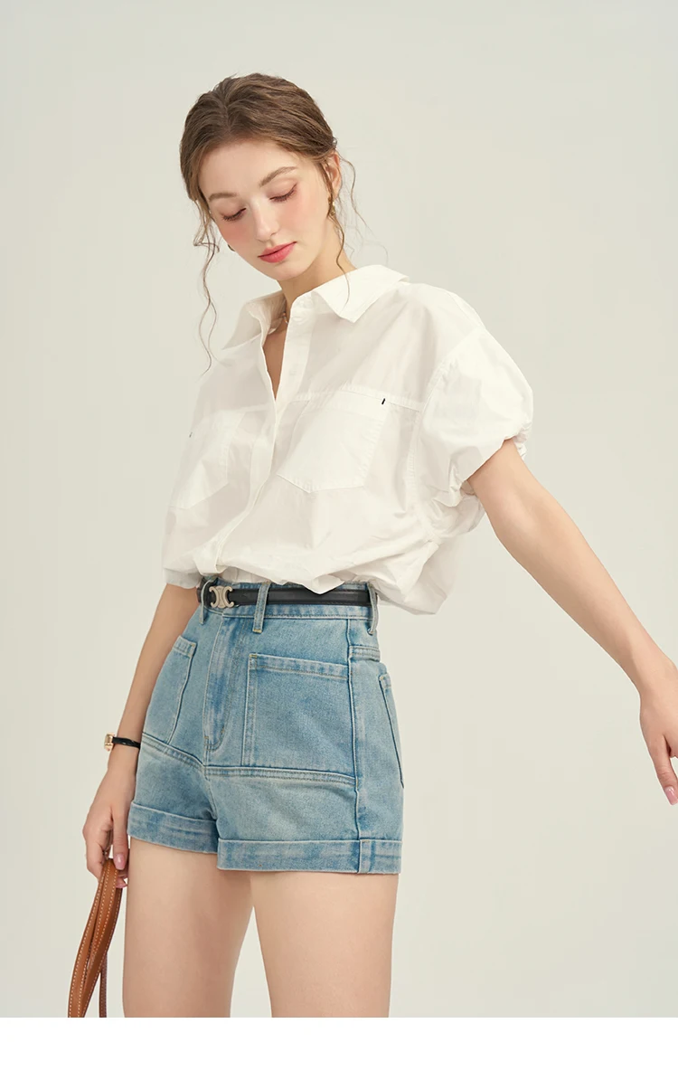 MISHOW Women's Denim Blue Shorts 2025 Summer Korean High Waist Pockets Shorts Female Straight Slim Casual Short Pants MPD26K0618