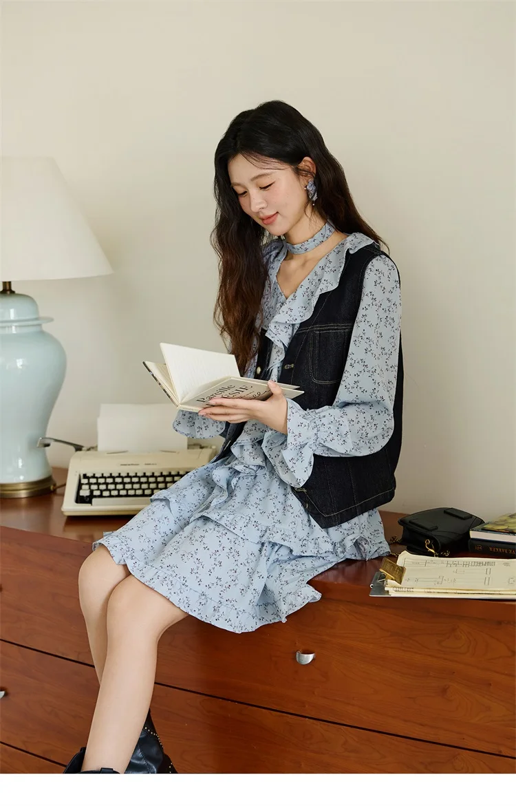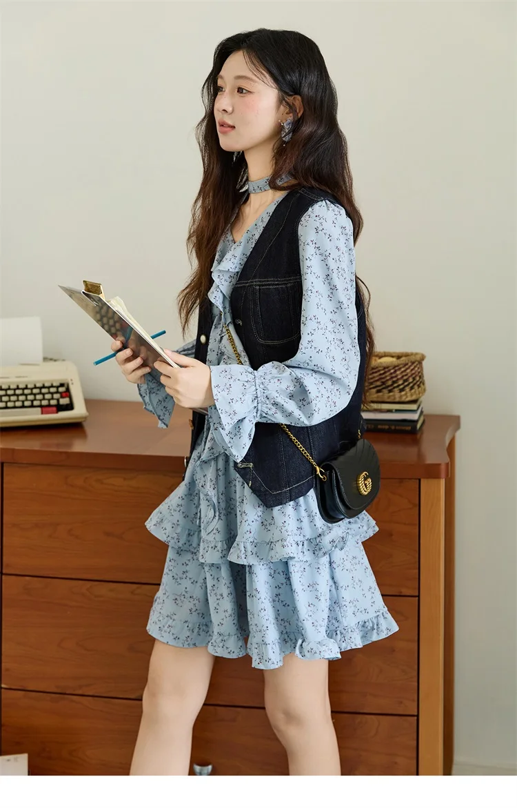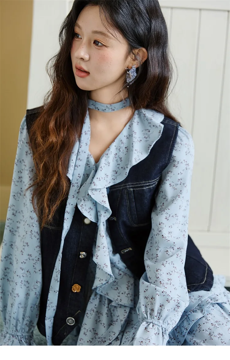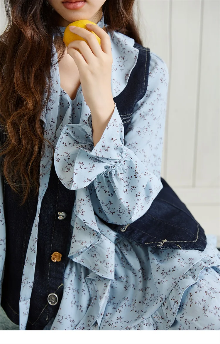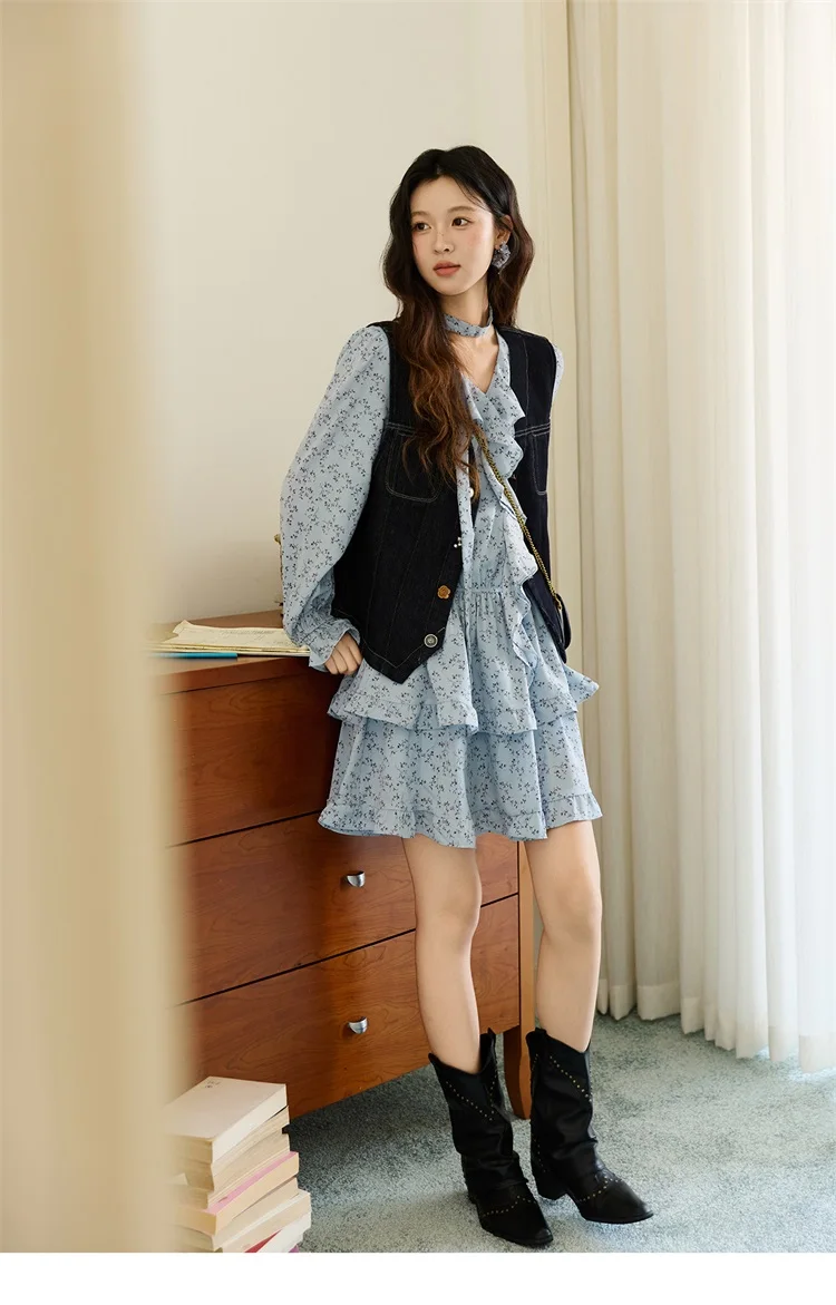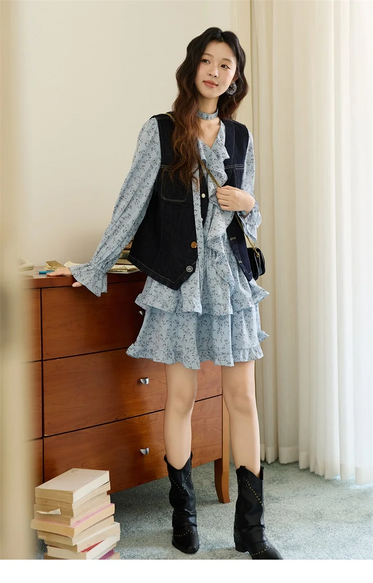 MISHOW Women's Denim Vest 2026 Spring Sleeveless Different Buttons V-neck Casual Waistcoat with Pockets Vest Coats MXE45W0868