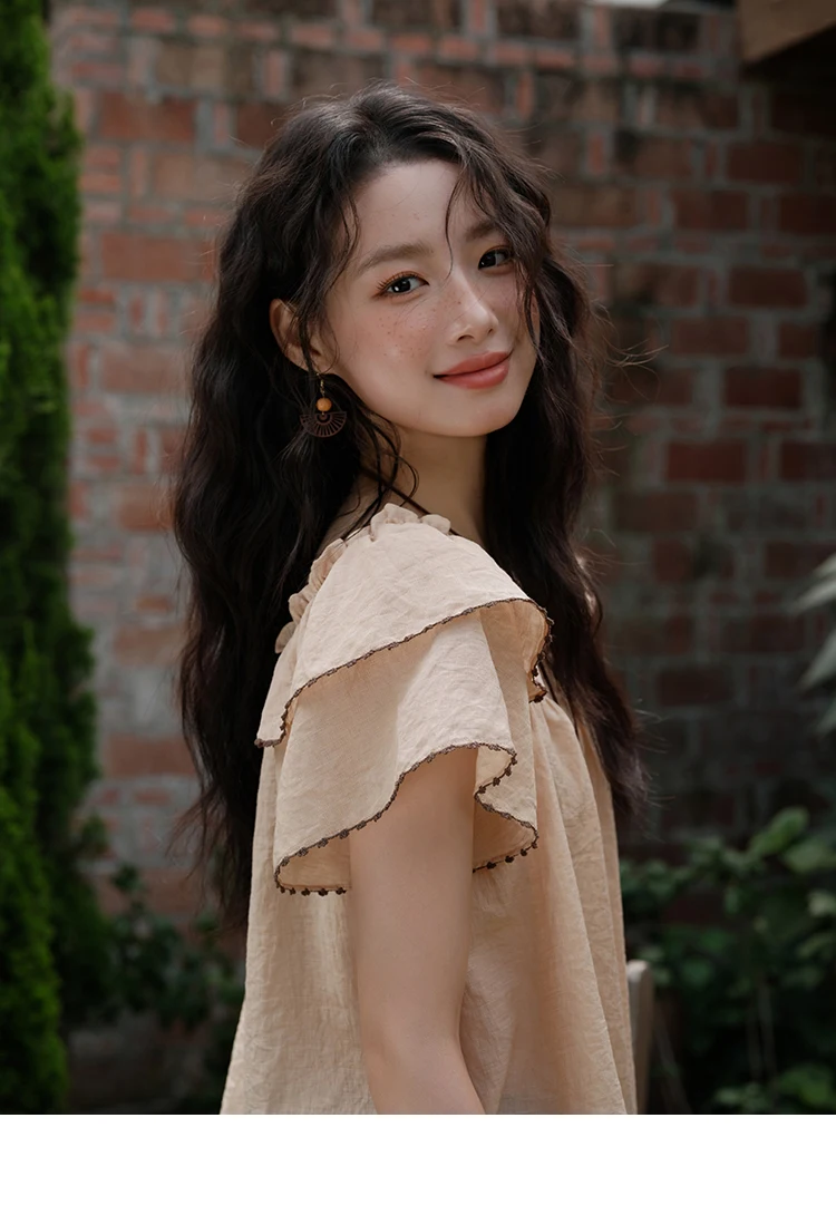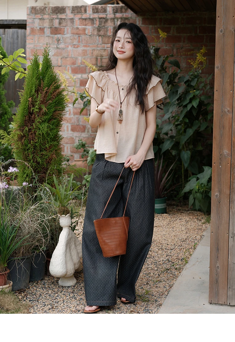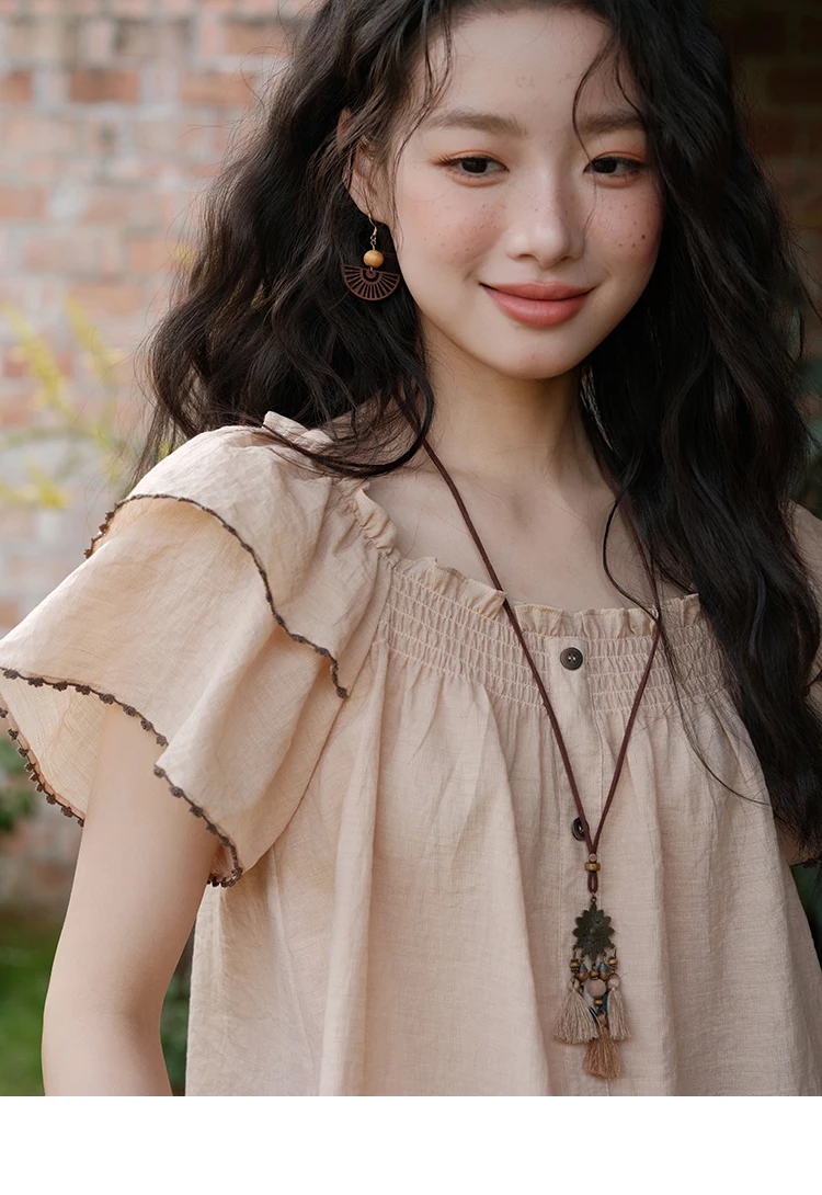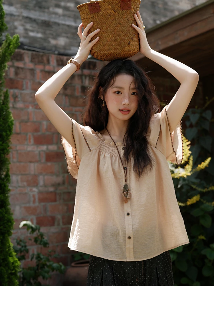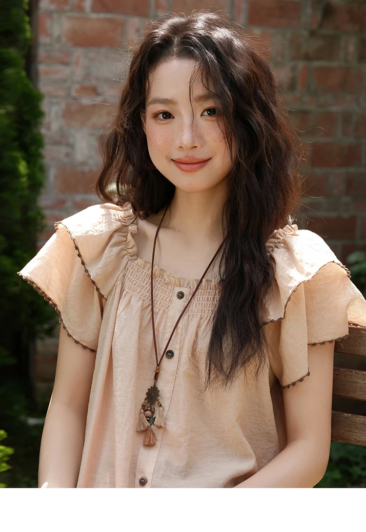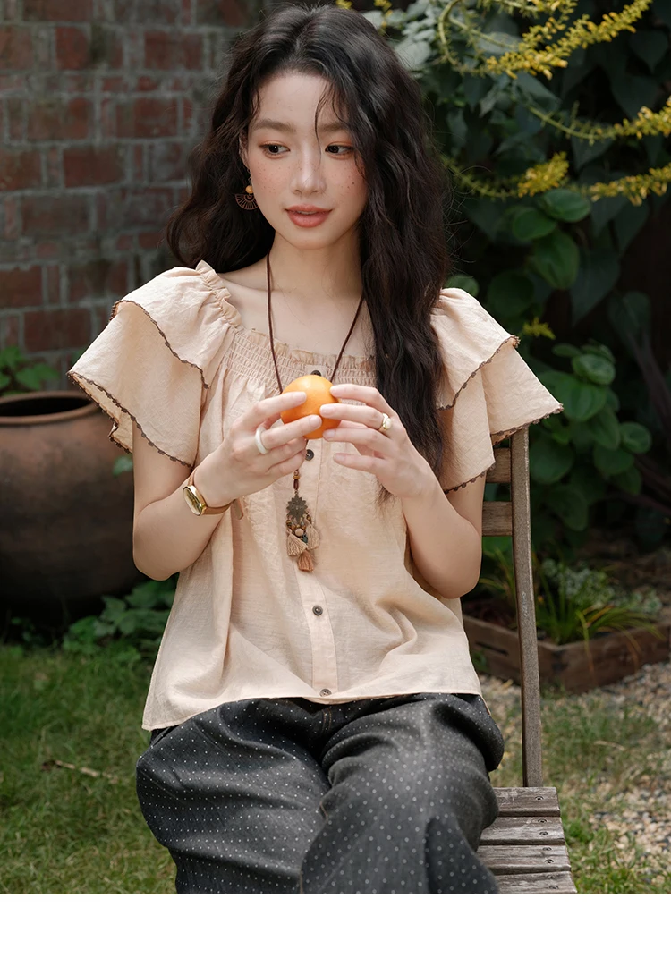 MISHOW Women's Fashion Butterfly Sleeve Blouse Summer 2025 New Loose Casual Square Neck Button Top Women's Clothing MXE37X1854