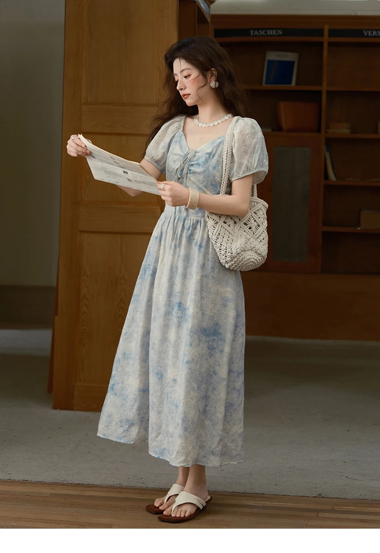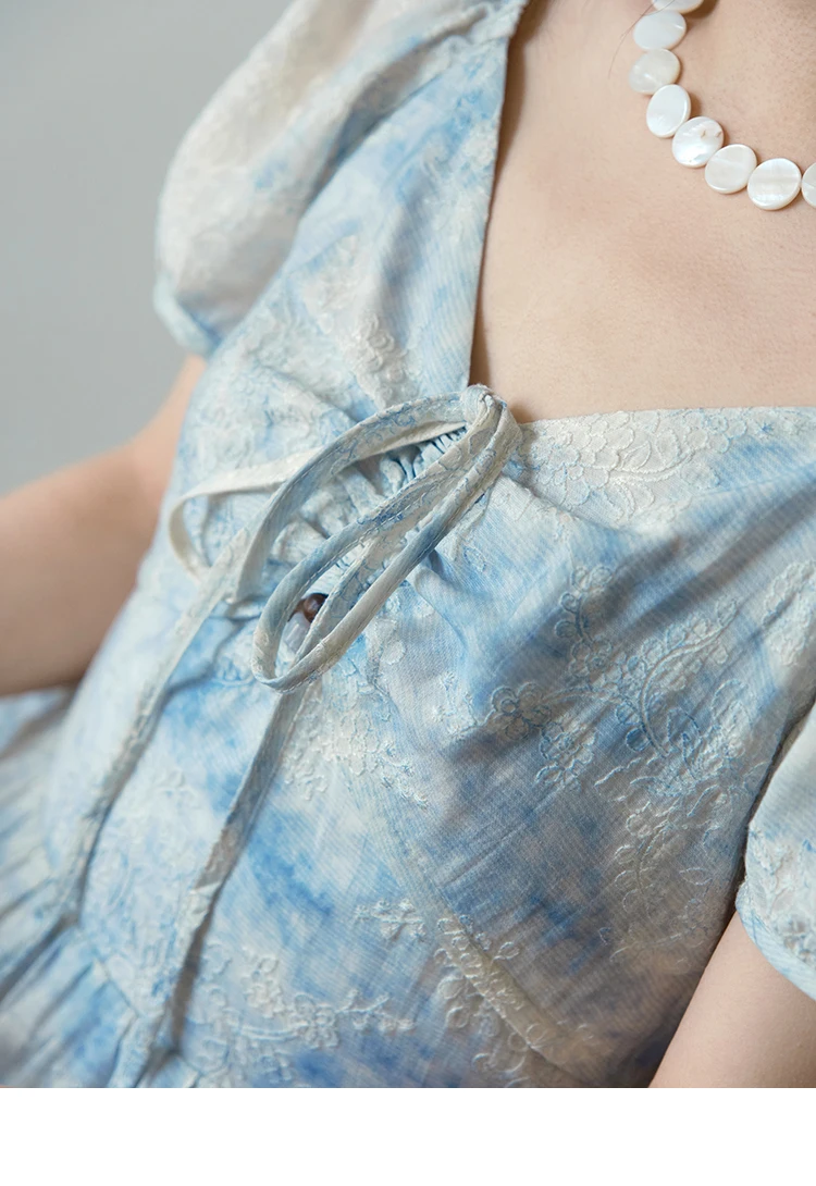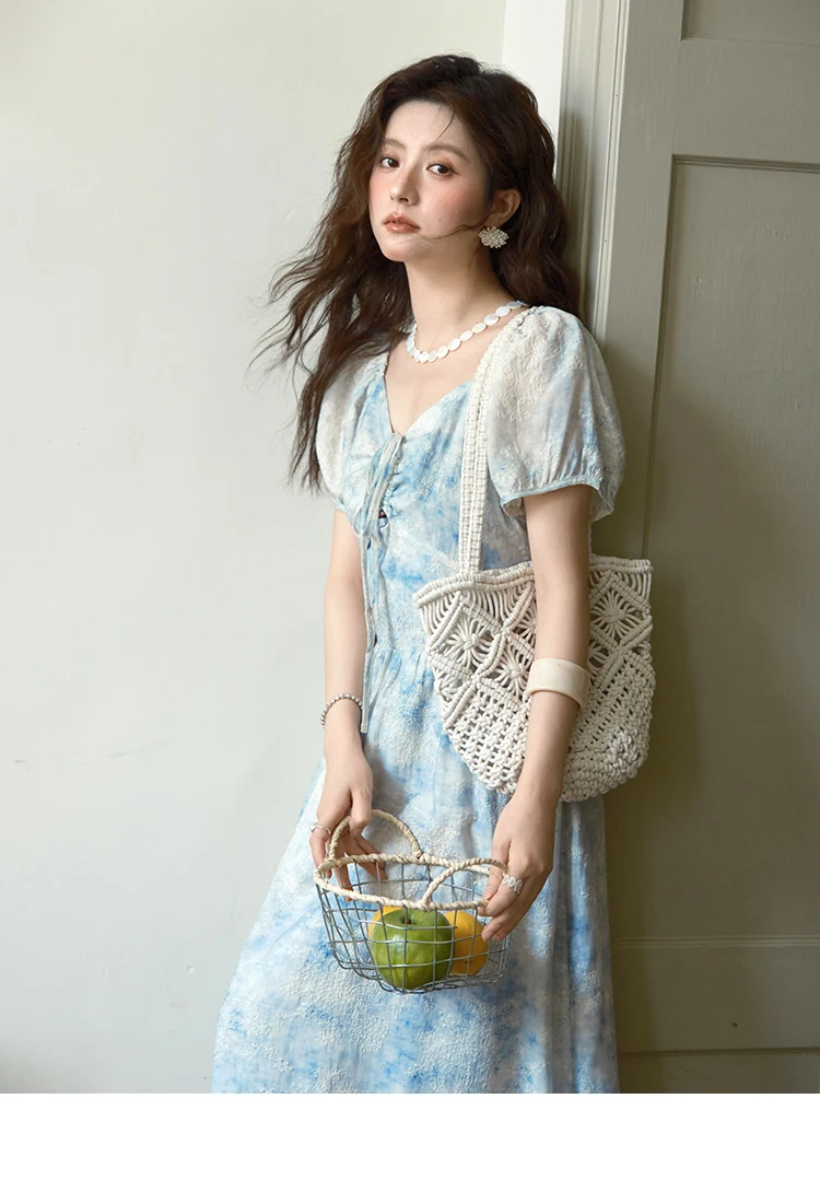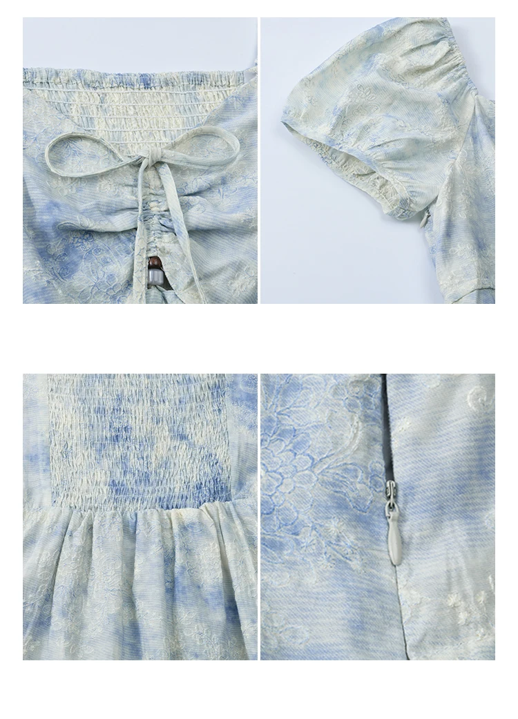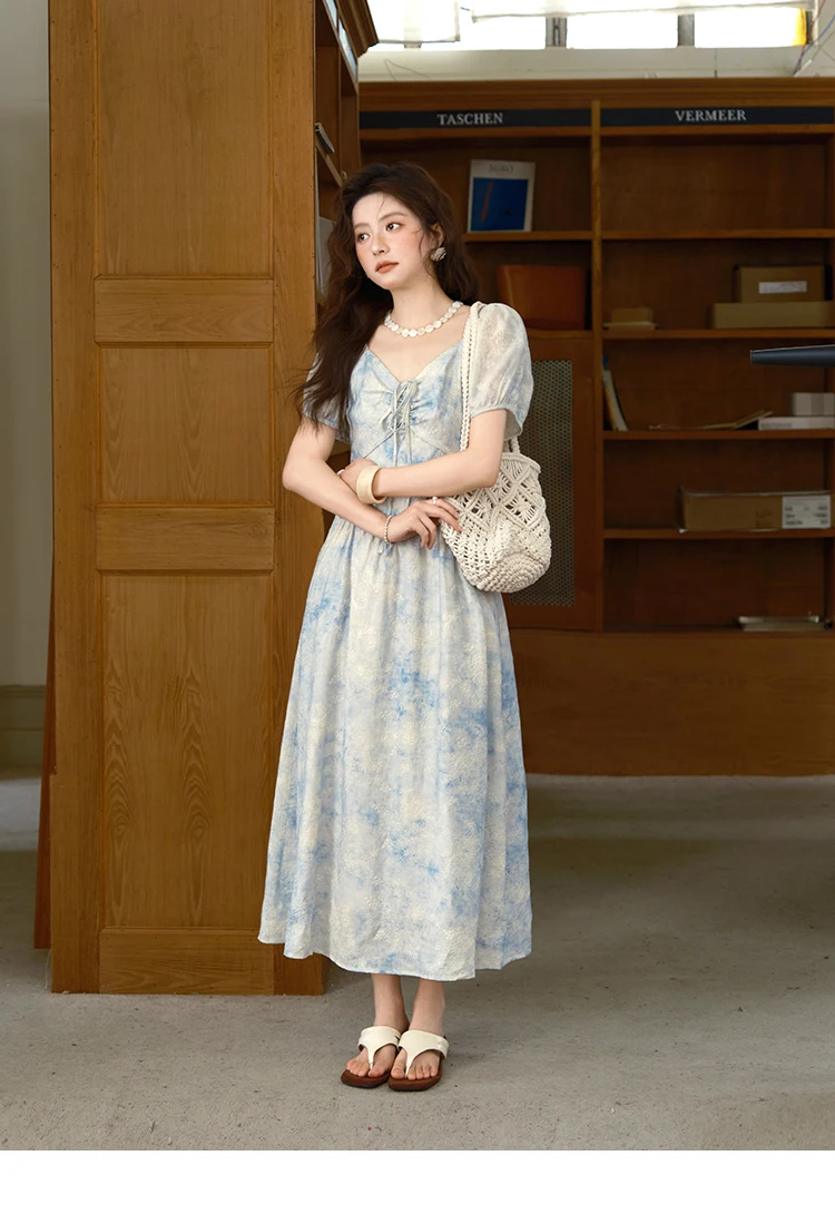 MISHOW Women's Fashion V-neck Lace Up French Dress 2025 Summer Puff Sleeve Embroidery Flower Dress Female Clothing MXE38L2379