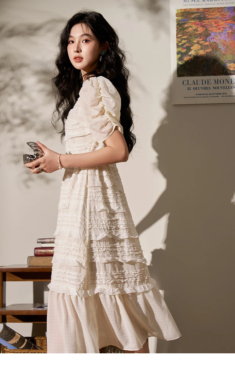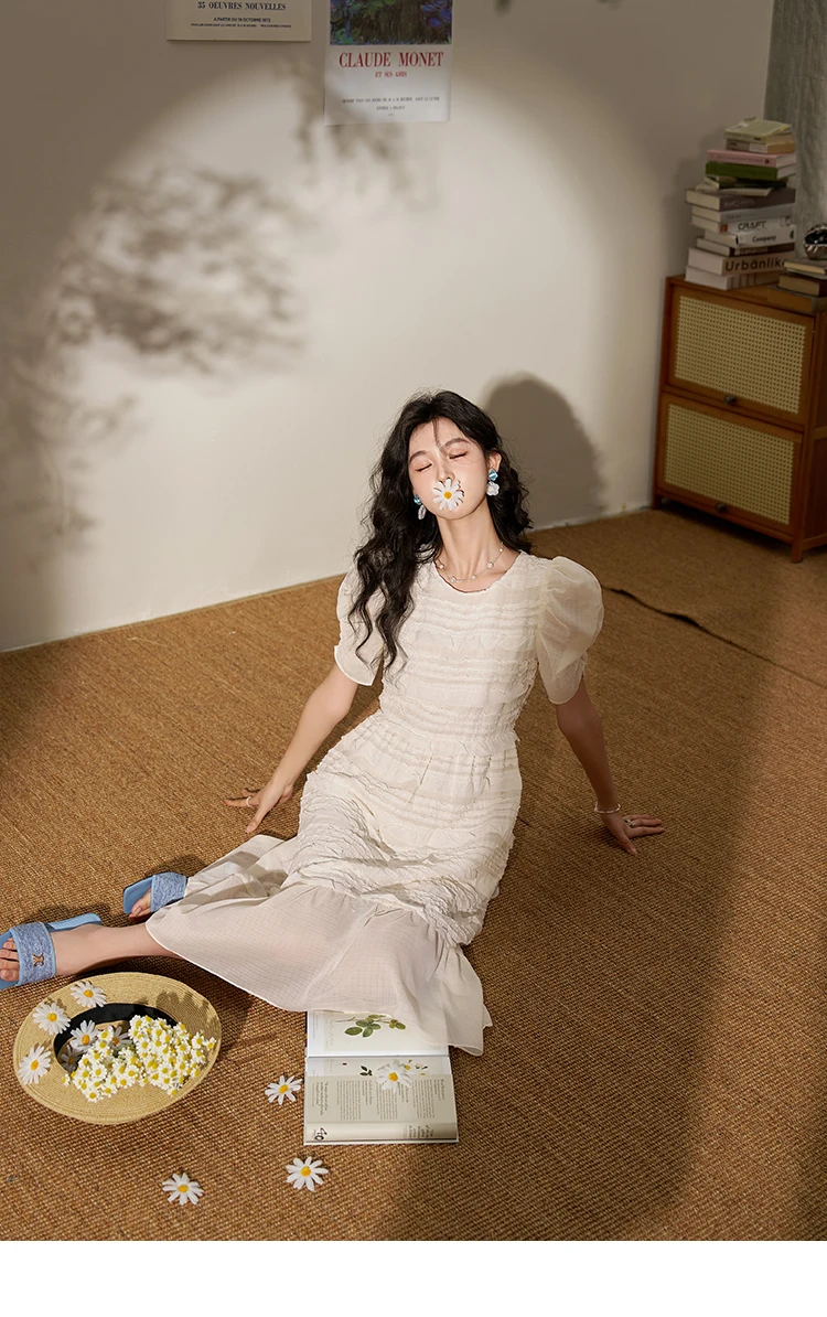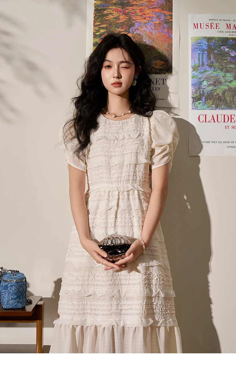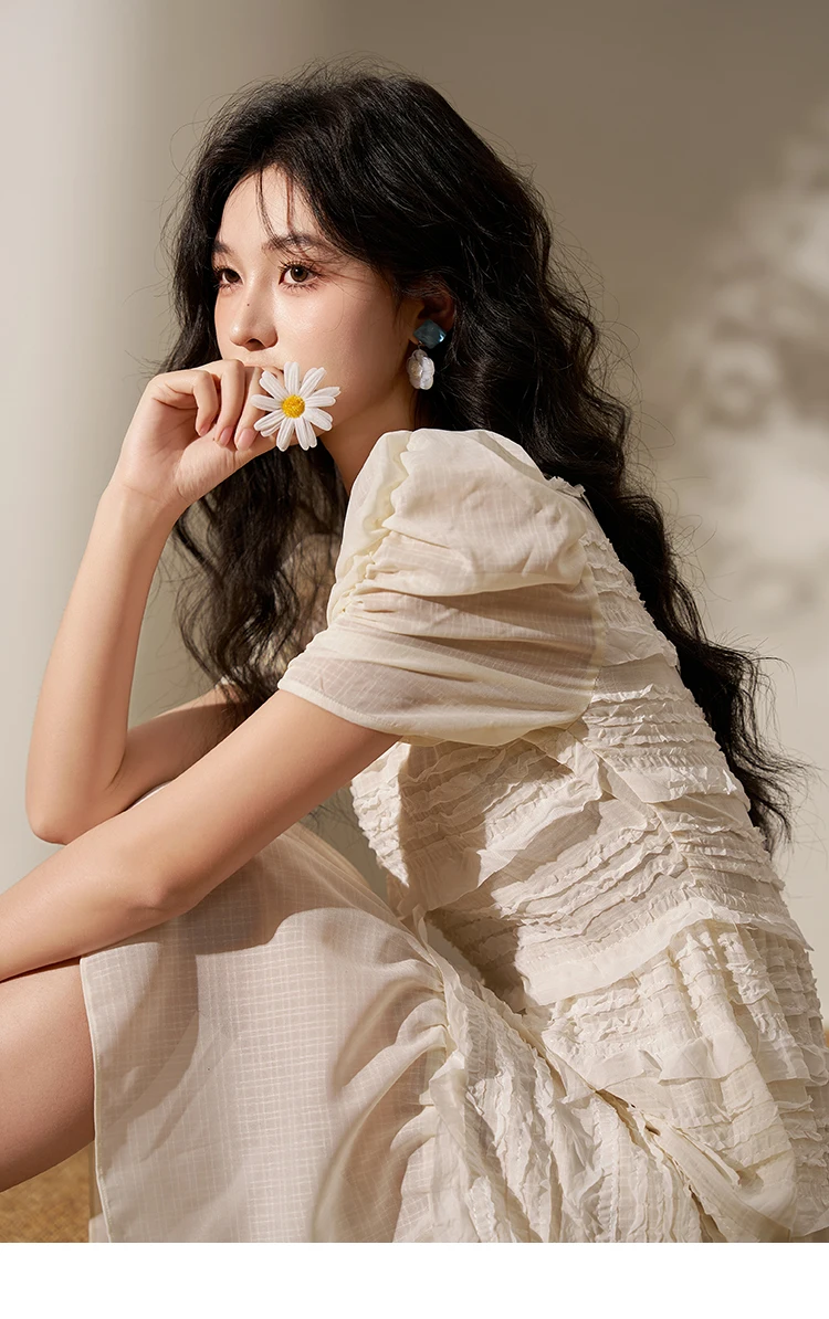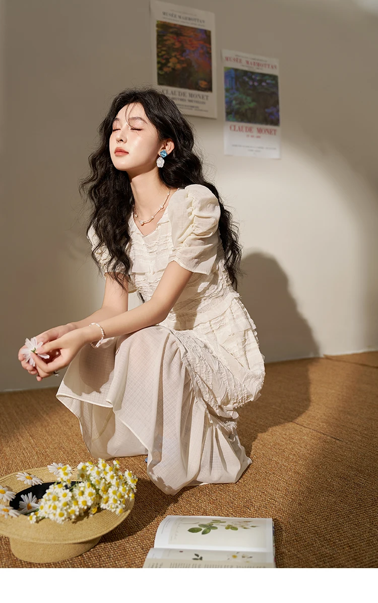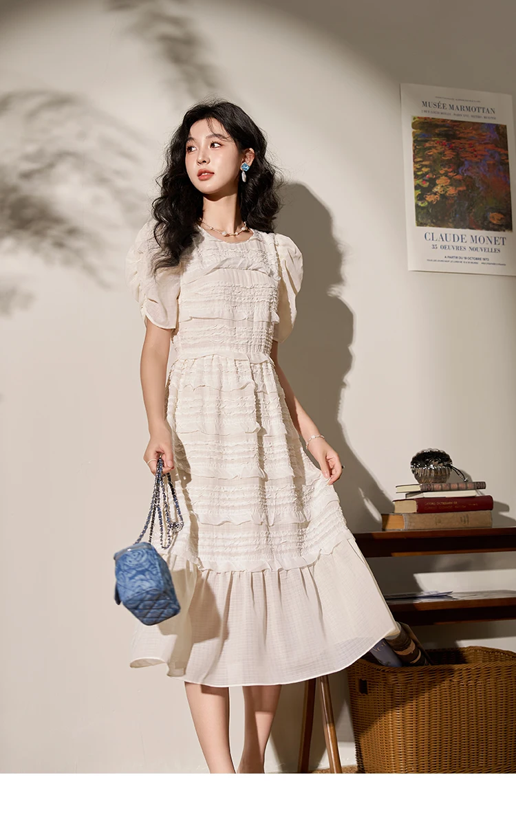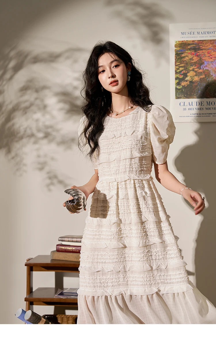 MISHOW Women's French Lace Dress 2024 New Summer New Chiffon Midi Temperament Short Sleeve Woman Dresses Clothing MXD21L1756