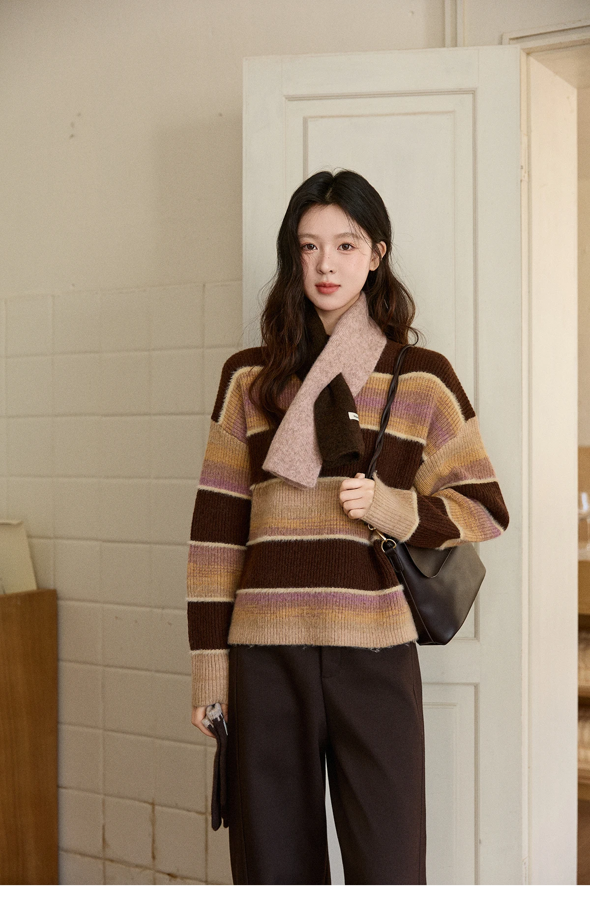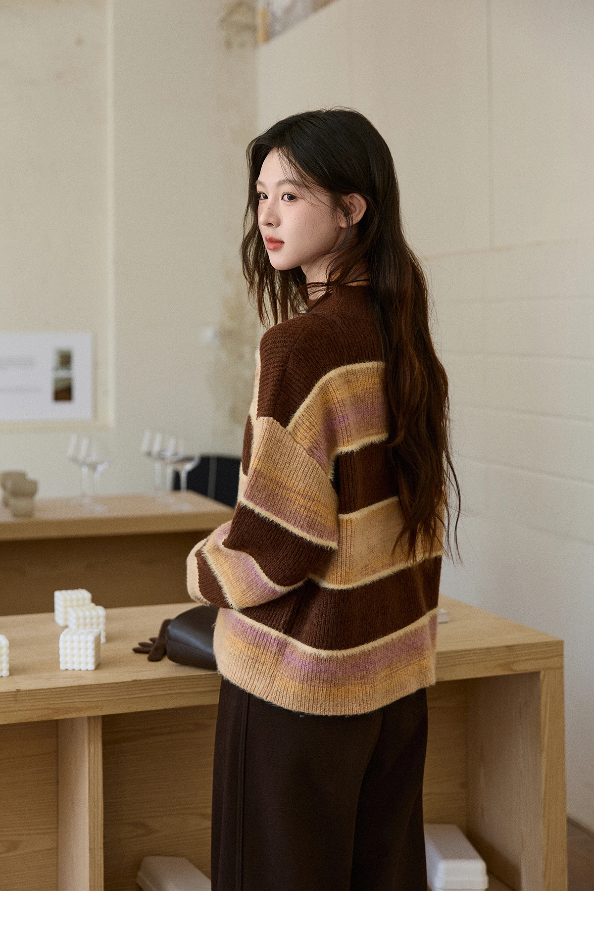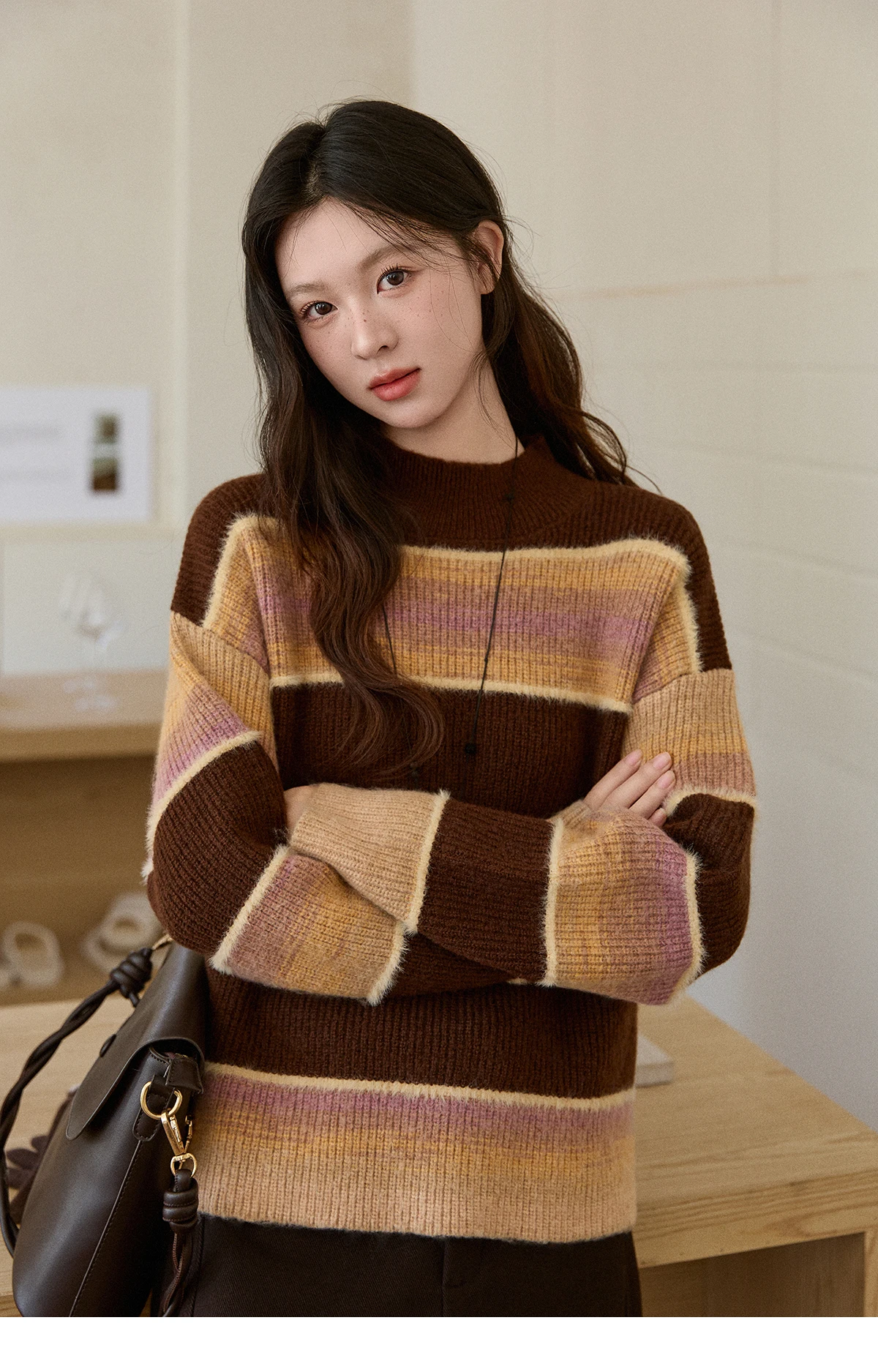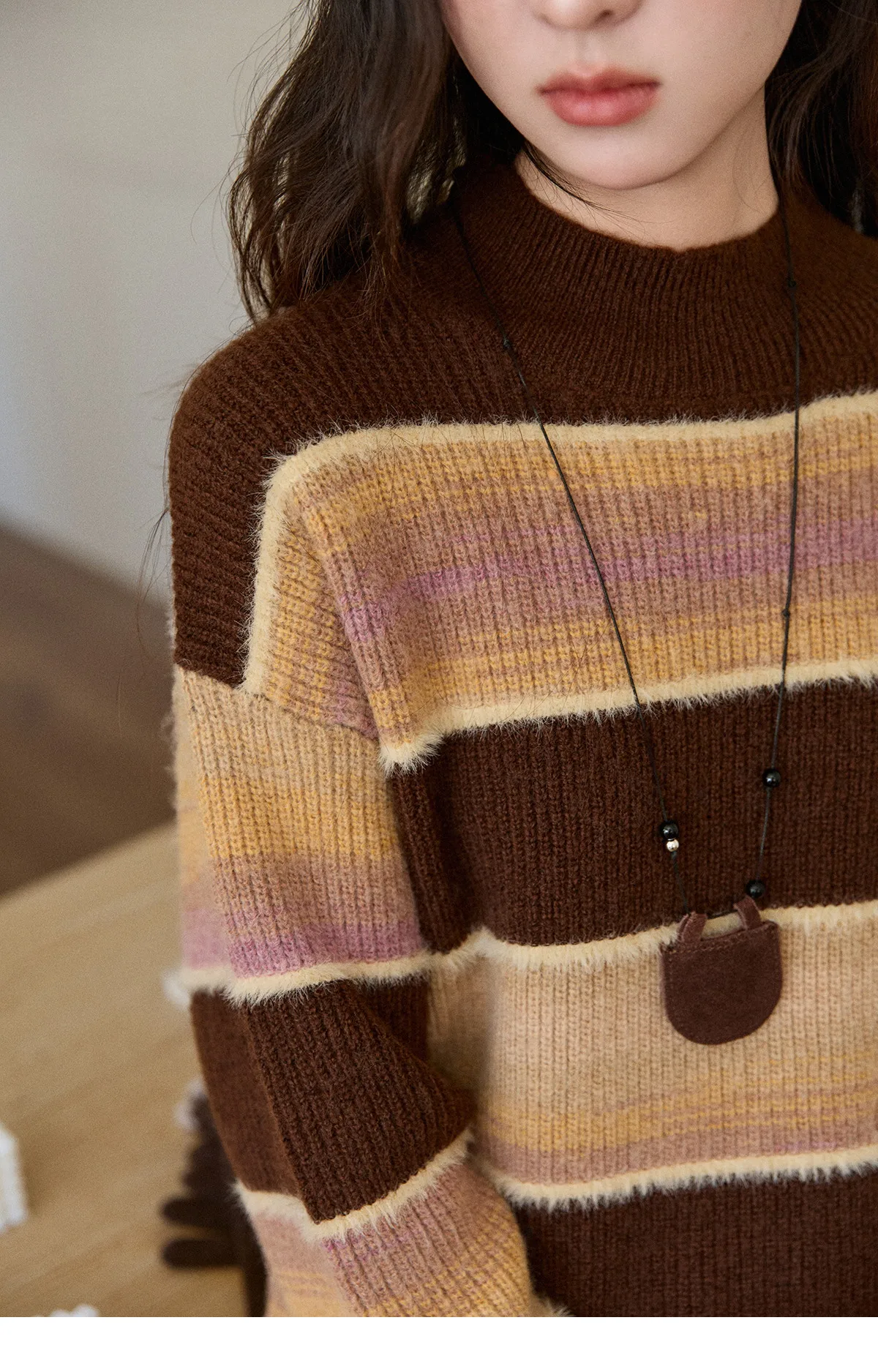 MISHOW Women's French Striped Gradient Sweater 2025 Winter Faux Mink Fleece Sweater Thick Casual Warm Knitted Top MXE94Z2891