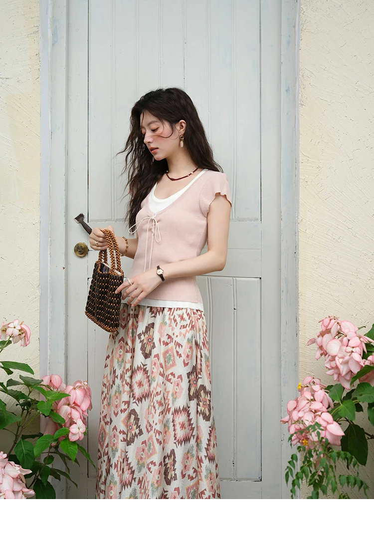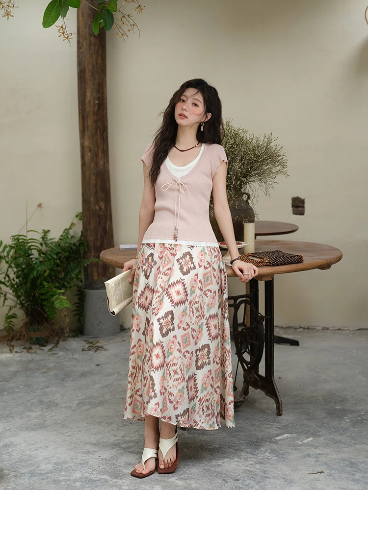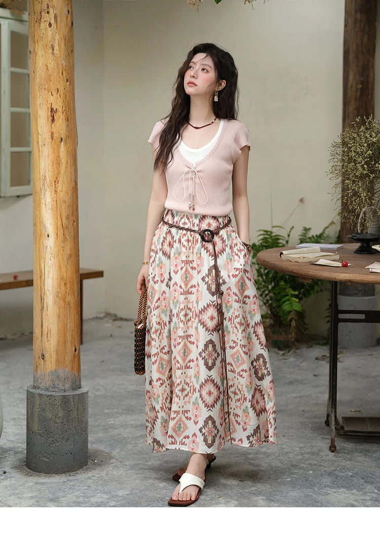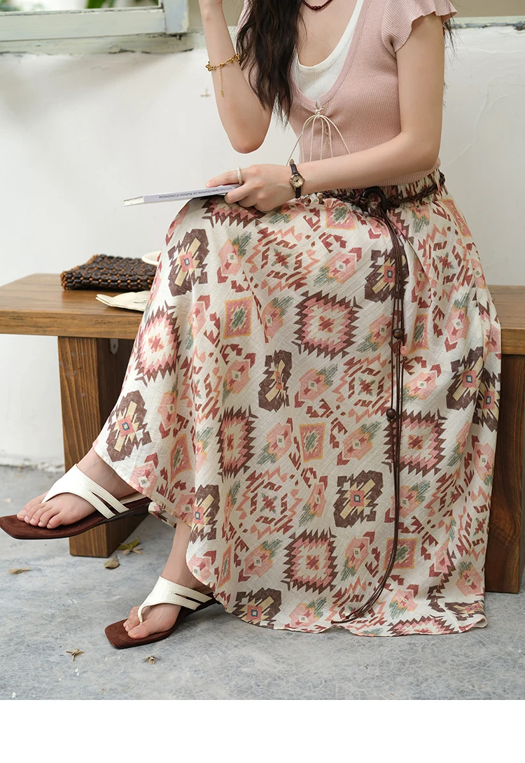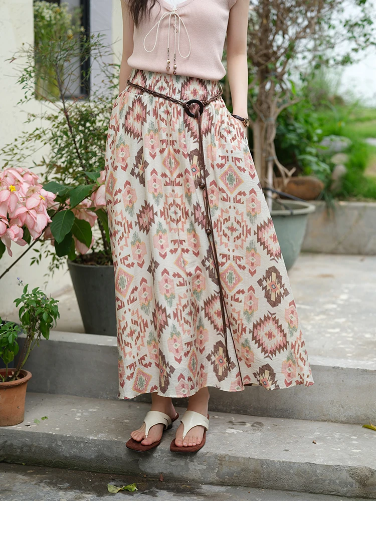 MISHOW Women's Geometric Print Half Skirt 2025 Summer Retro Prairie Chic Pocket Vacation A-line Skirt Female Clothing MXE37B0760